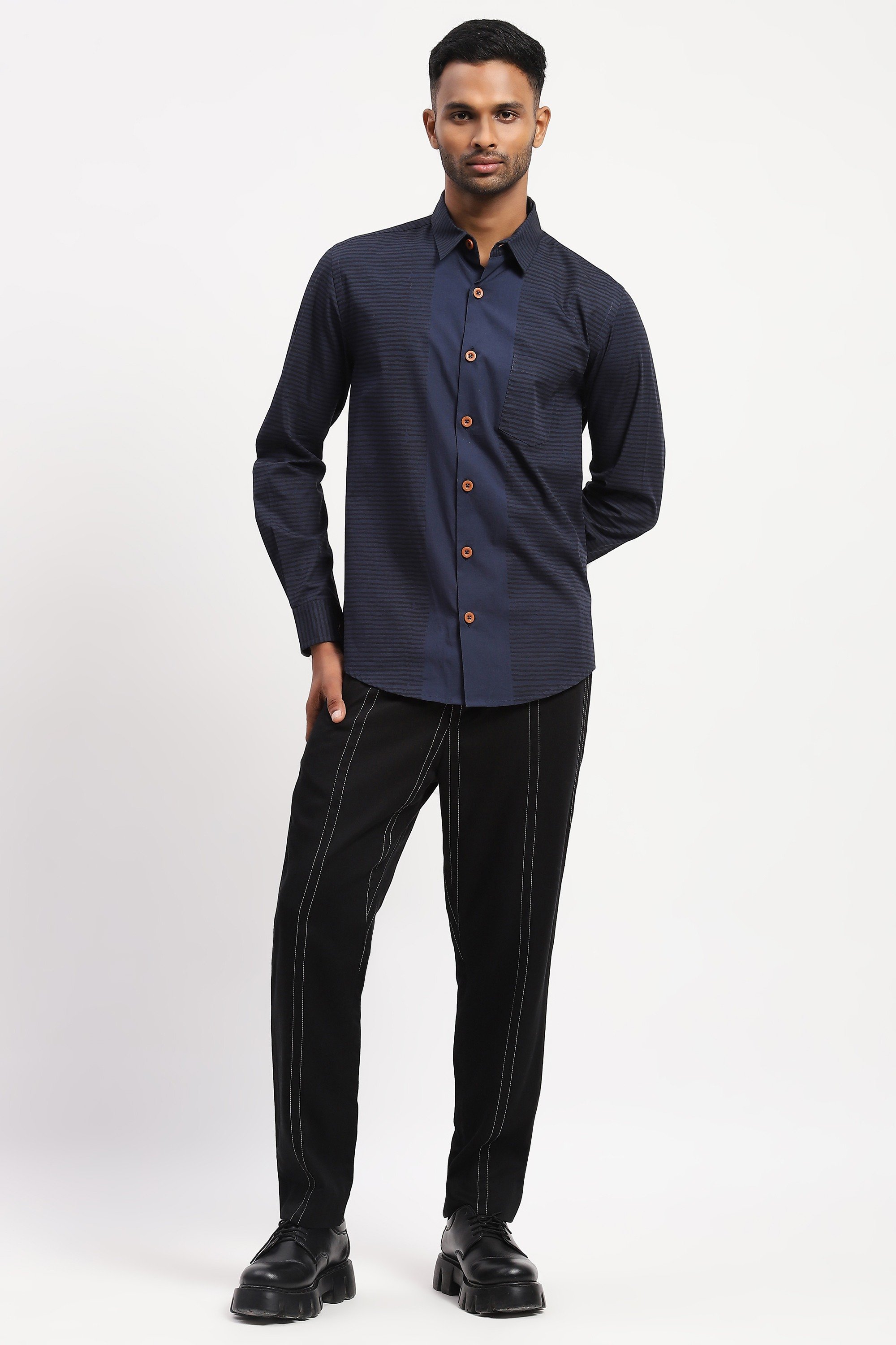 CENTER STRIPE BLOCK PRINT SHIRT