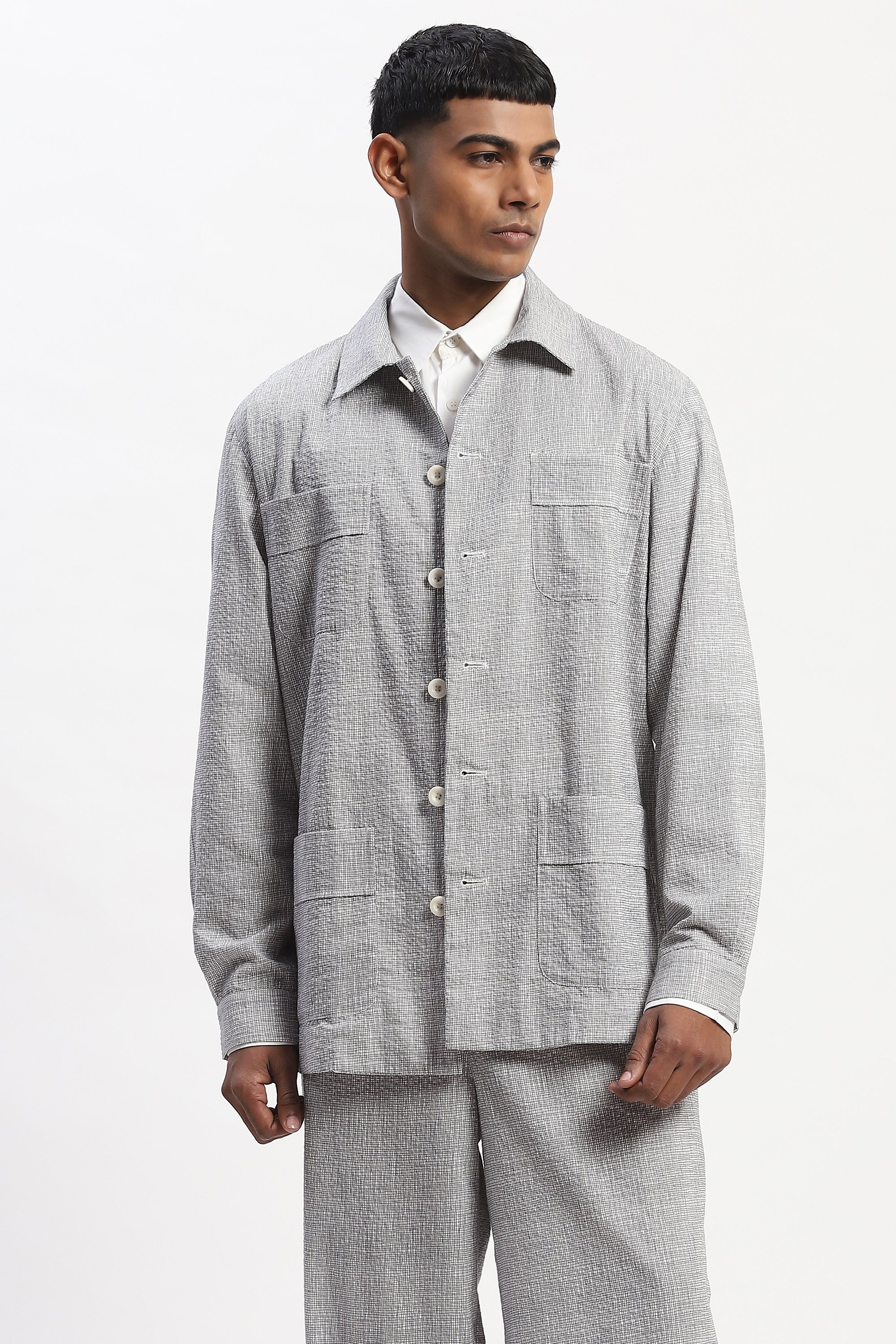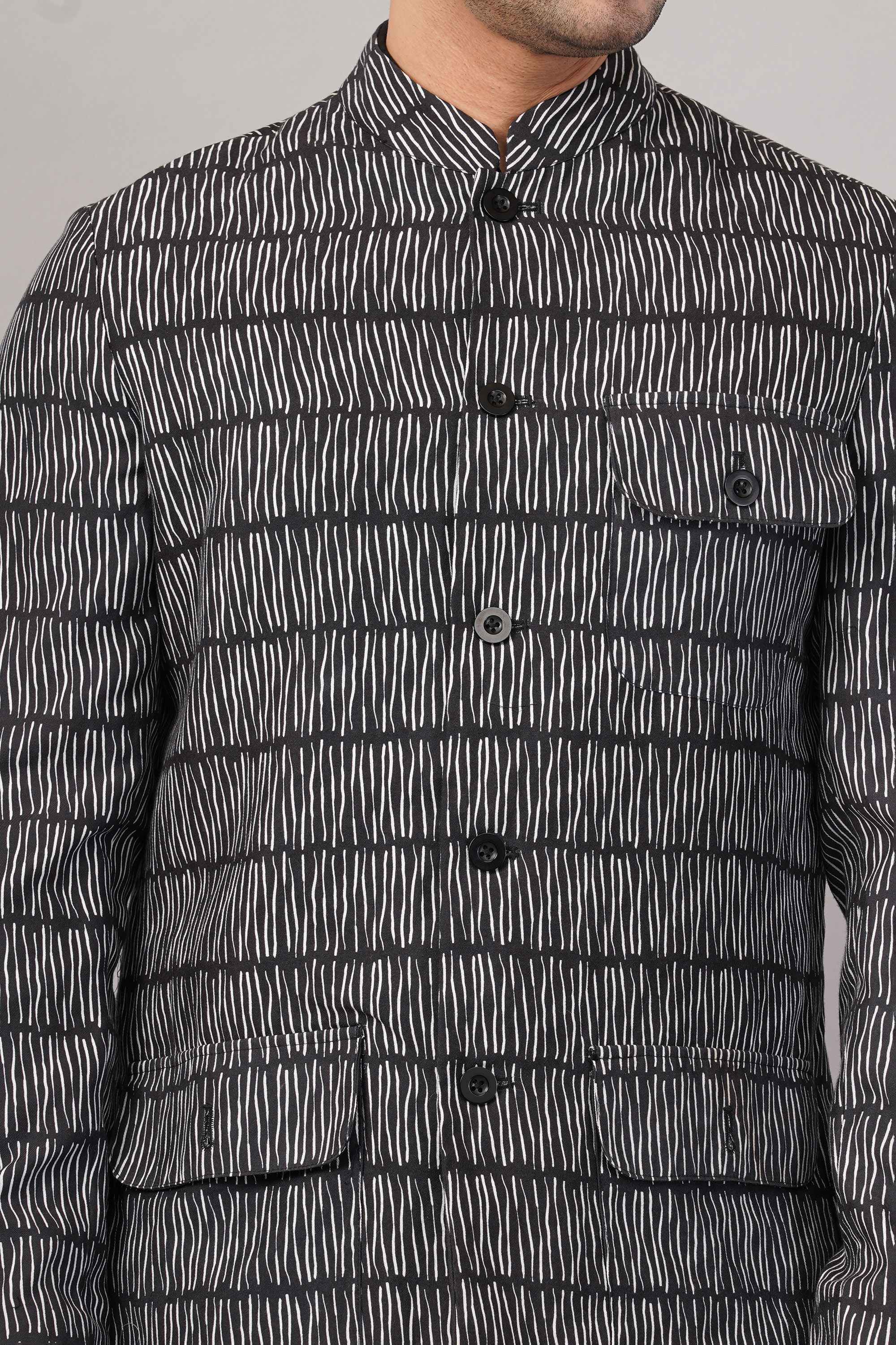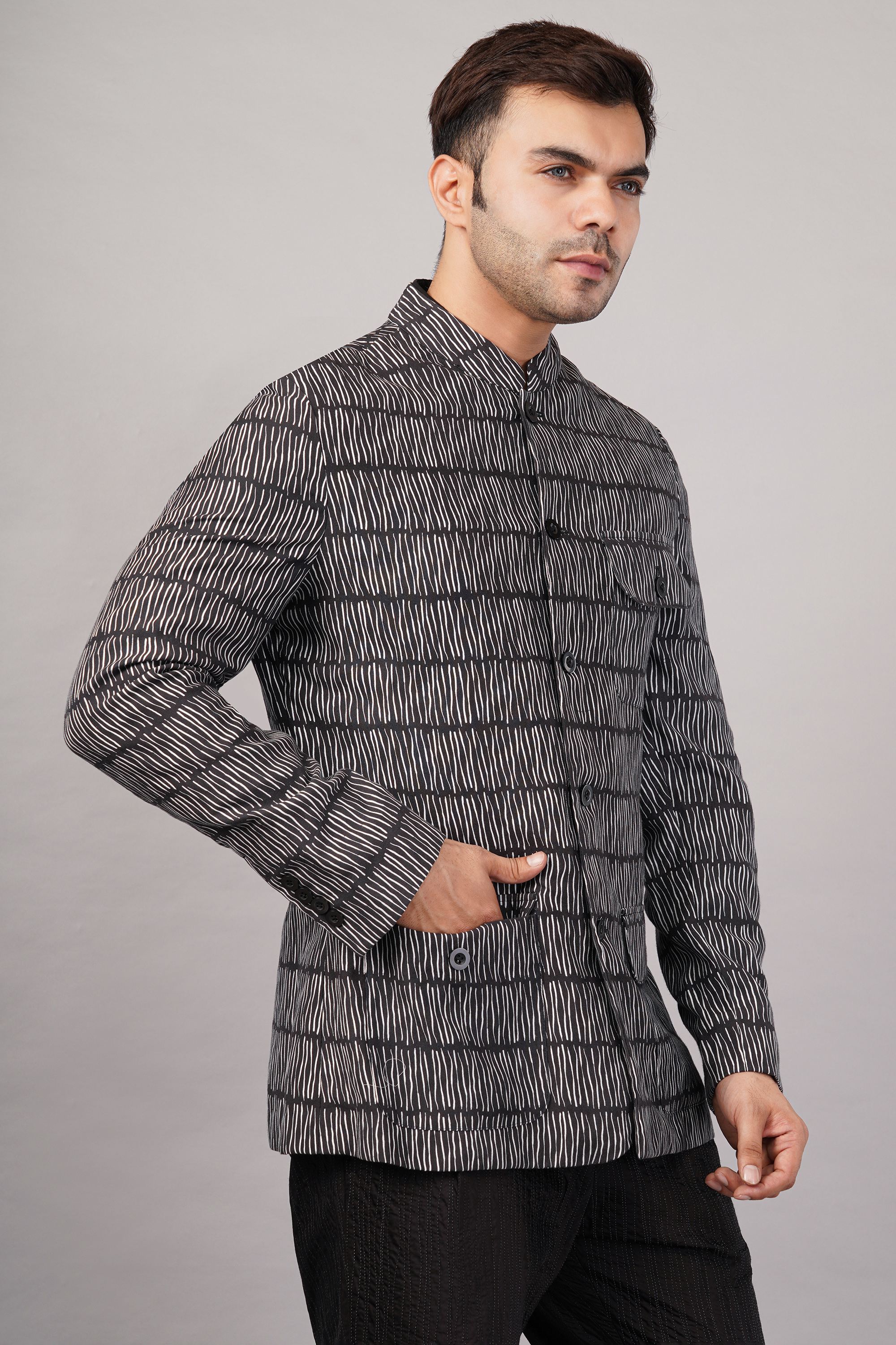 Hand Block Printed Grid Jacket