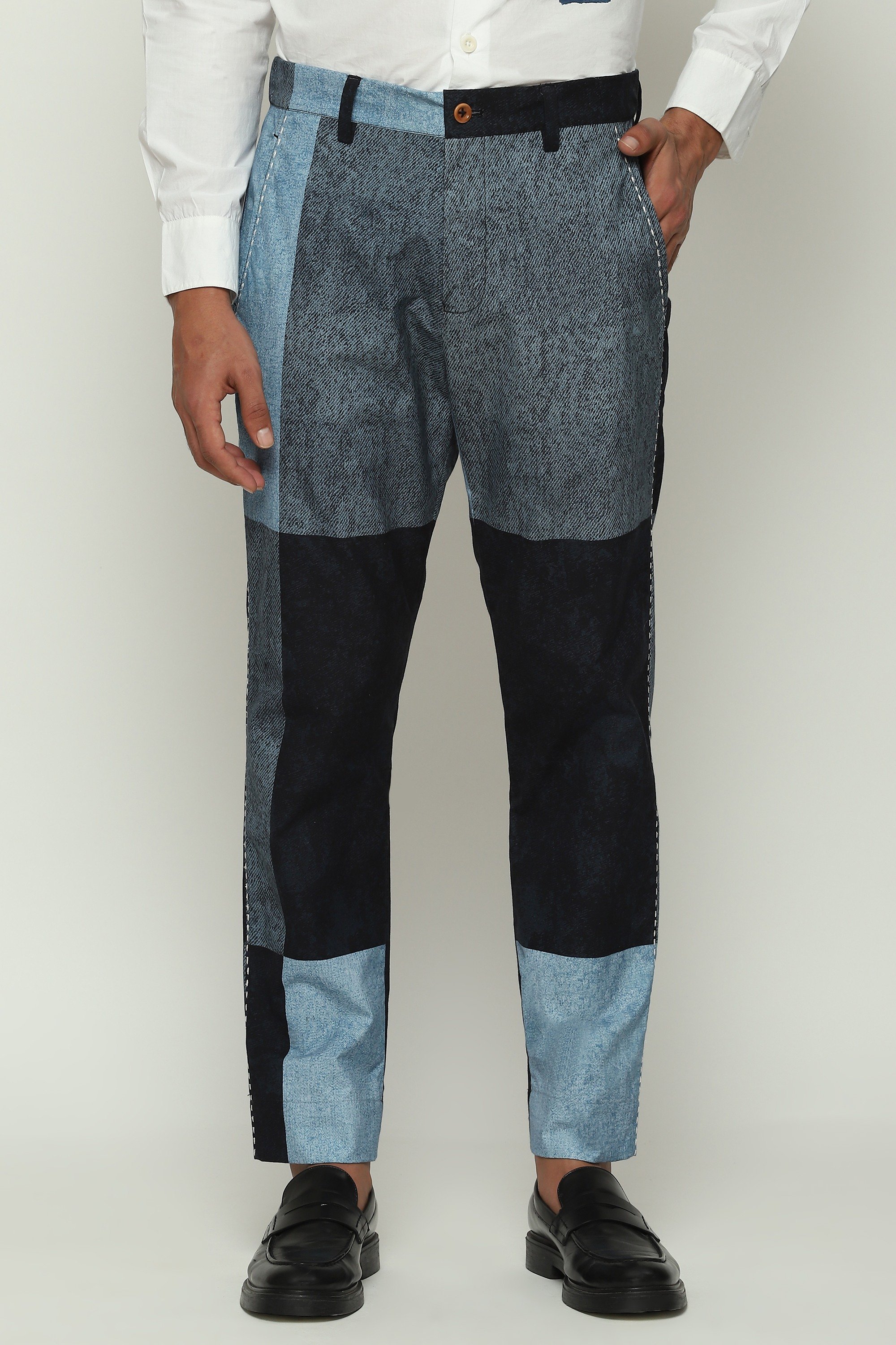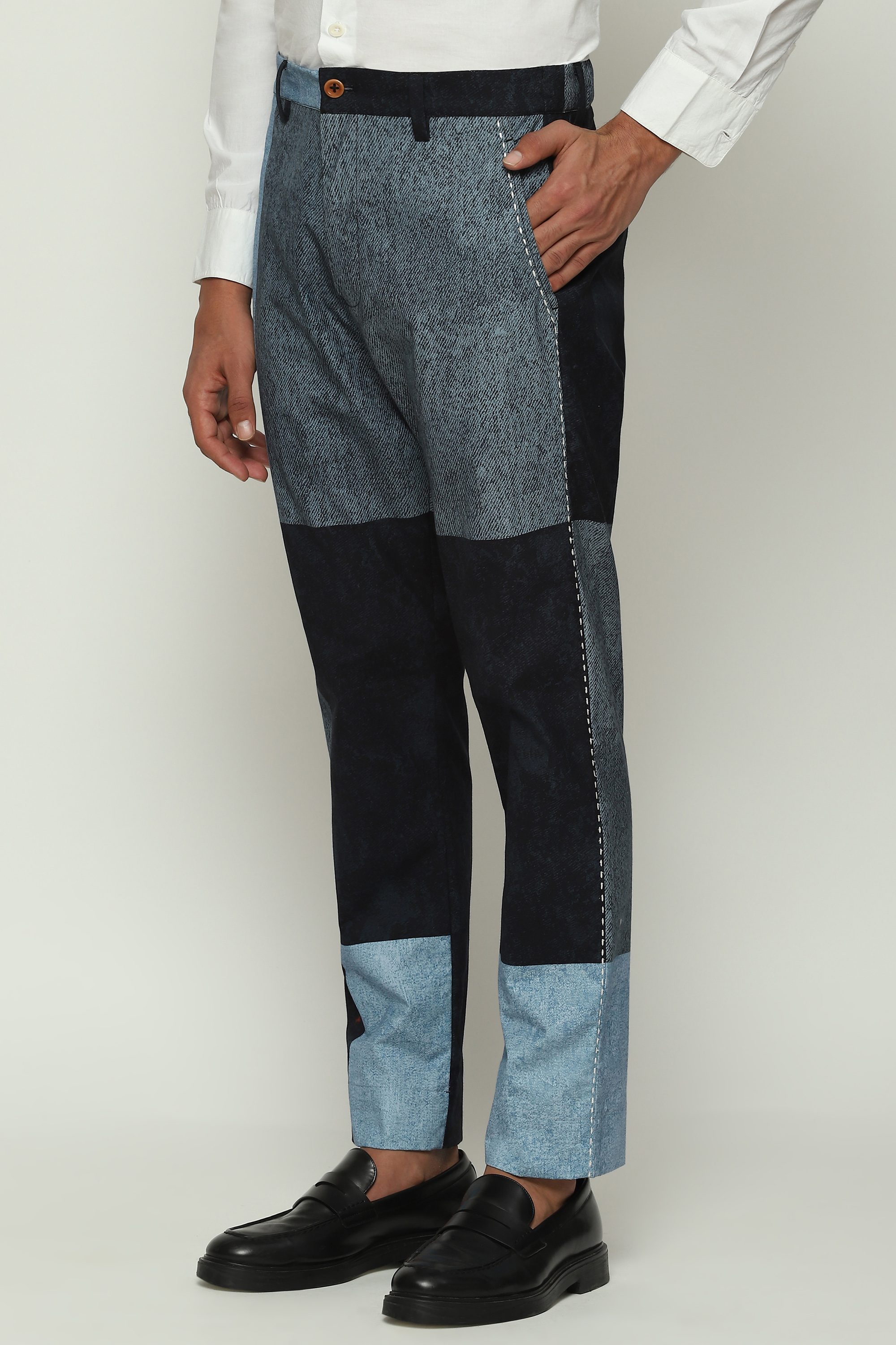 DENIM PRINTED PATCHWORK TROUSER
