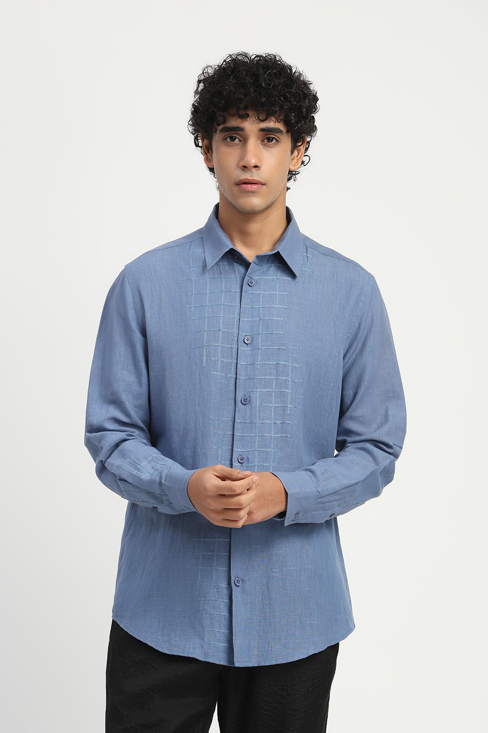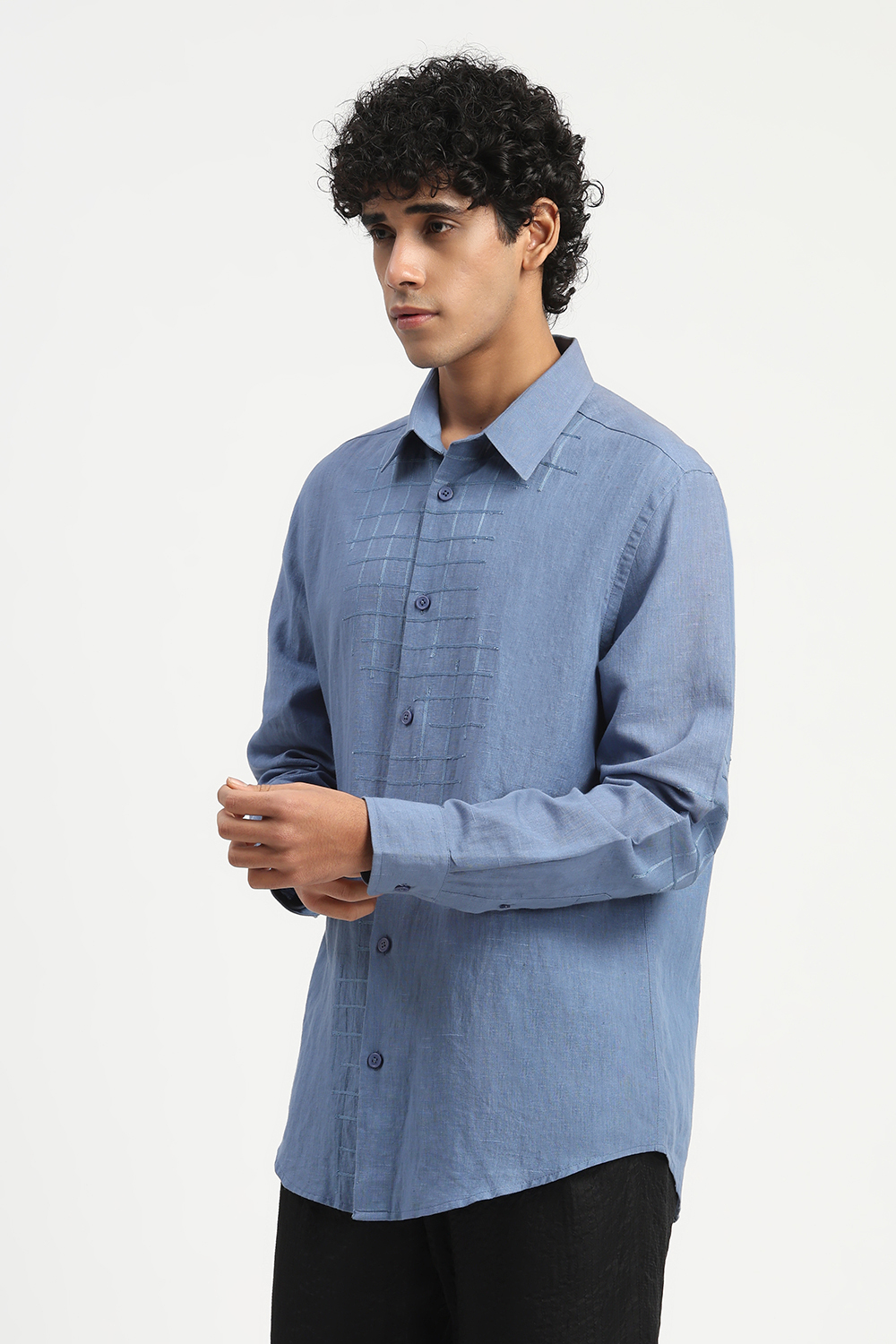 Studs Placket Shirt Indigo