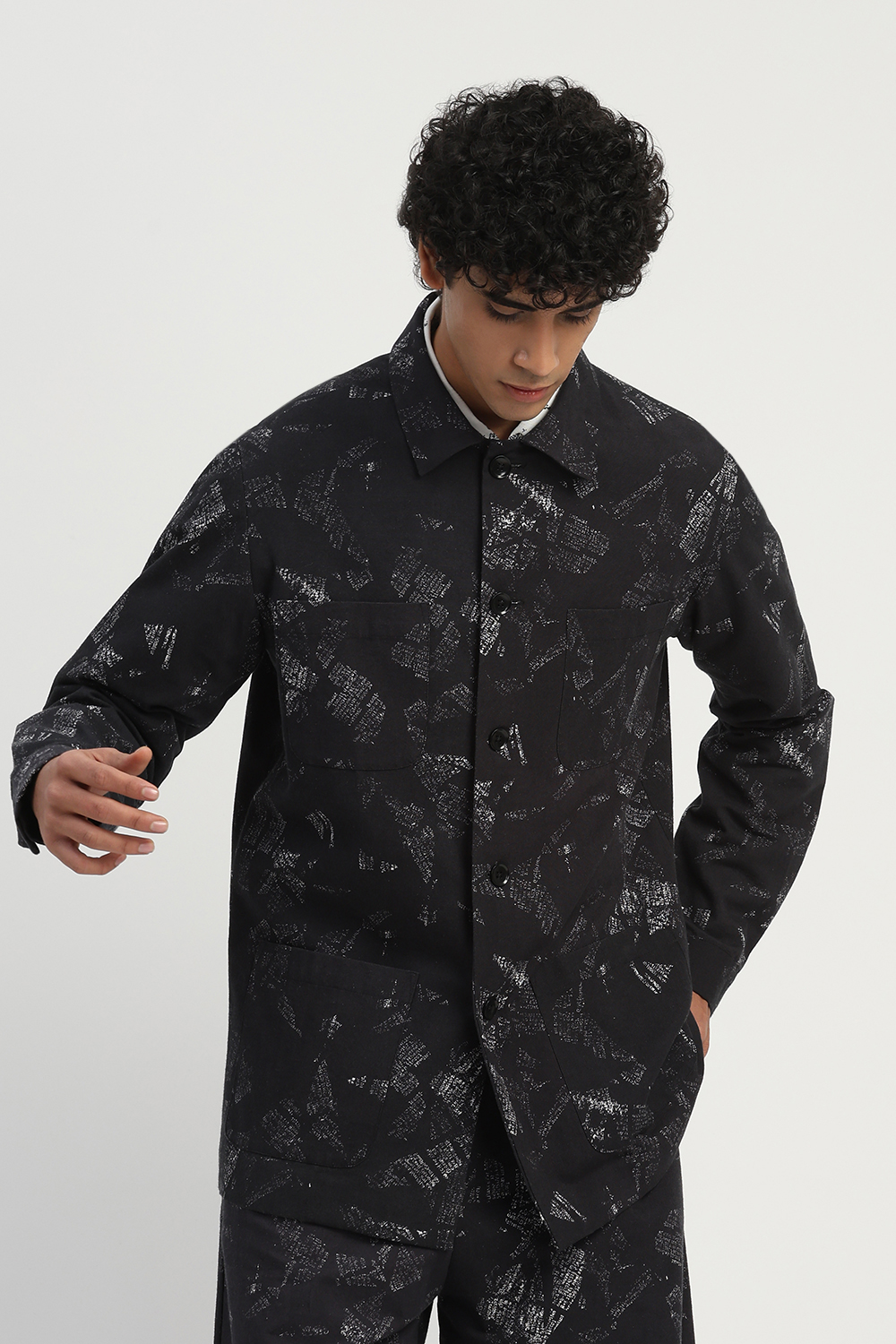 News Print Shirt Jacket Black