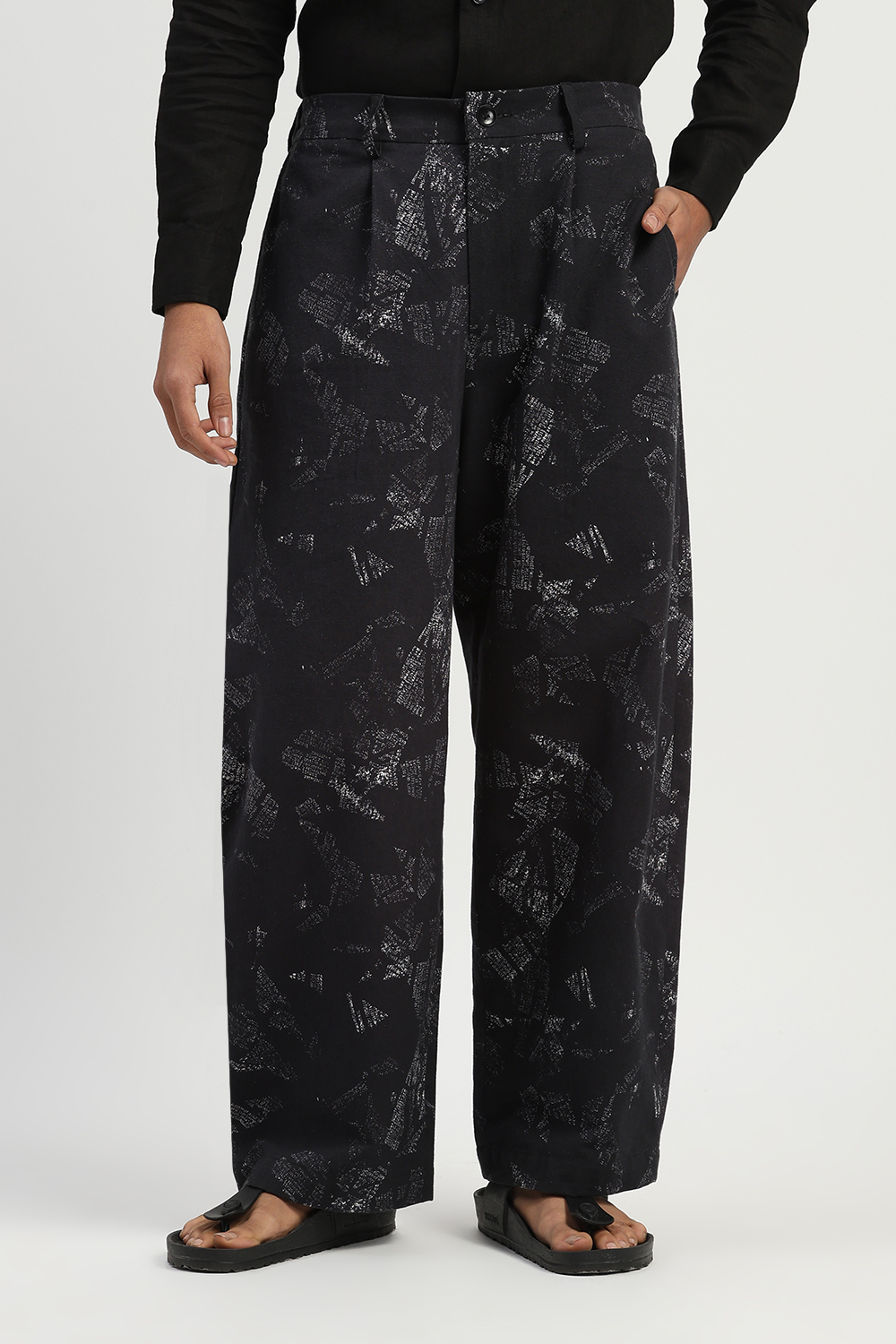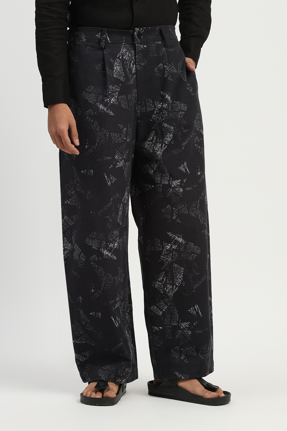 News Print Trouser Black