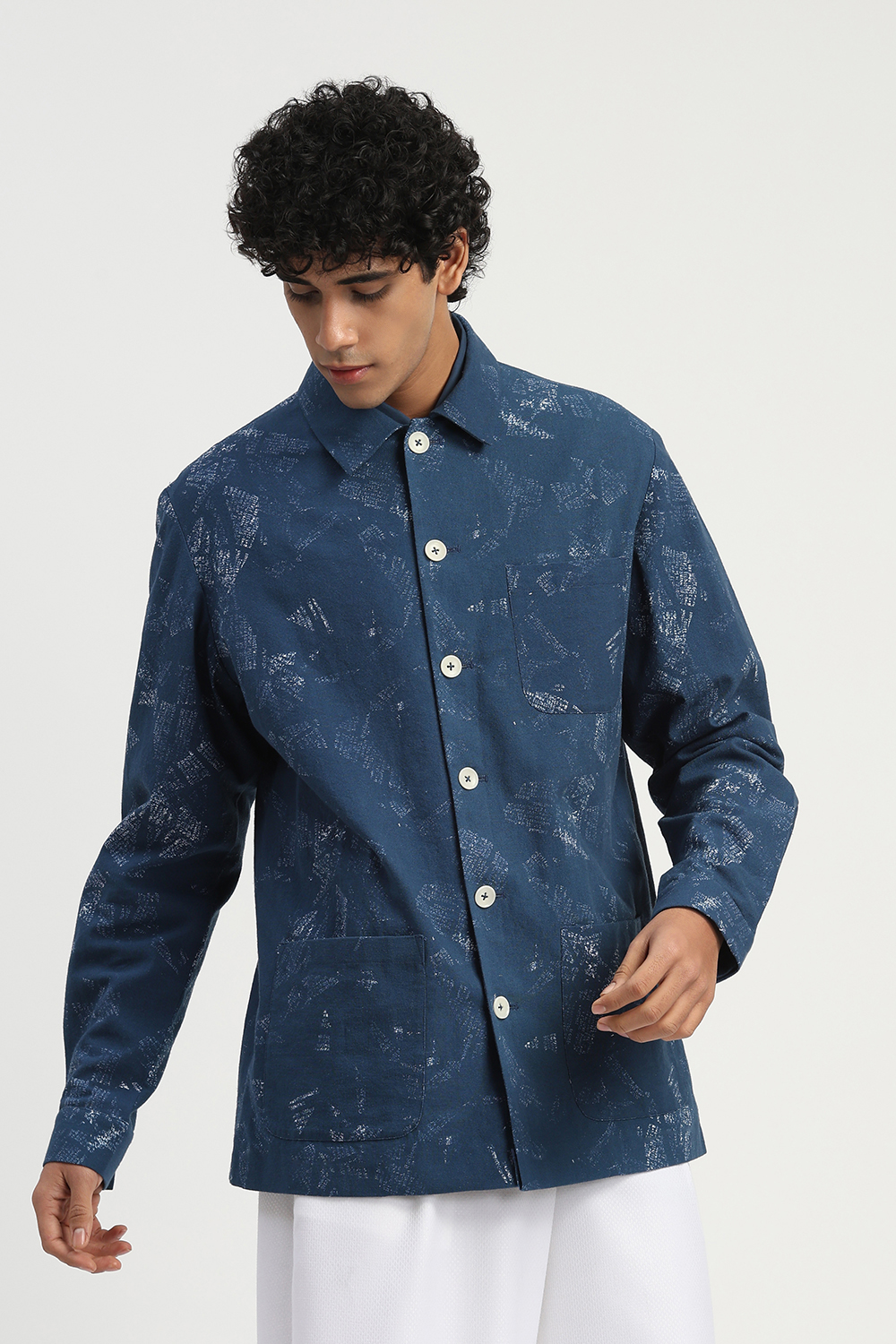 News Print Shirt Jacket Blue