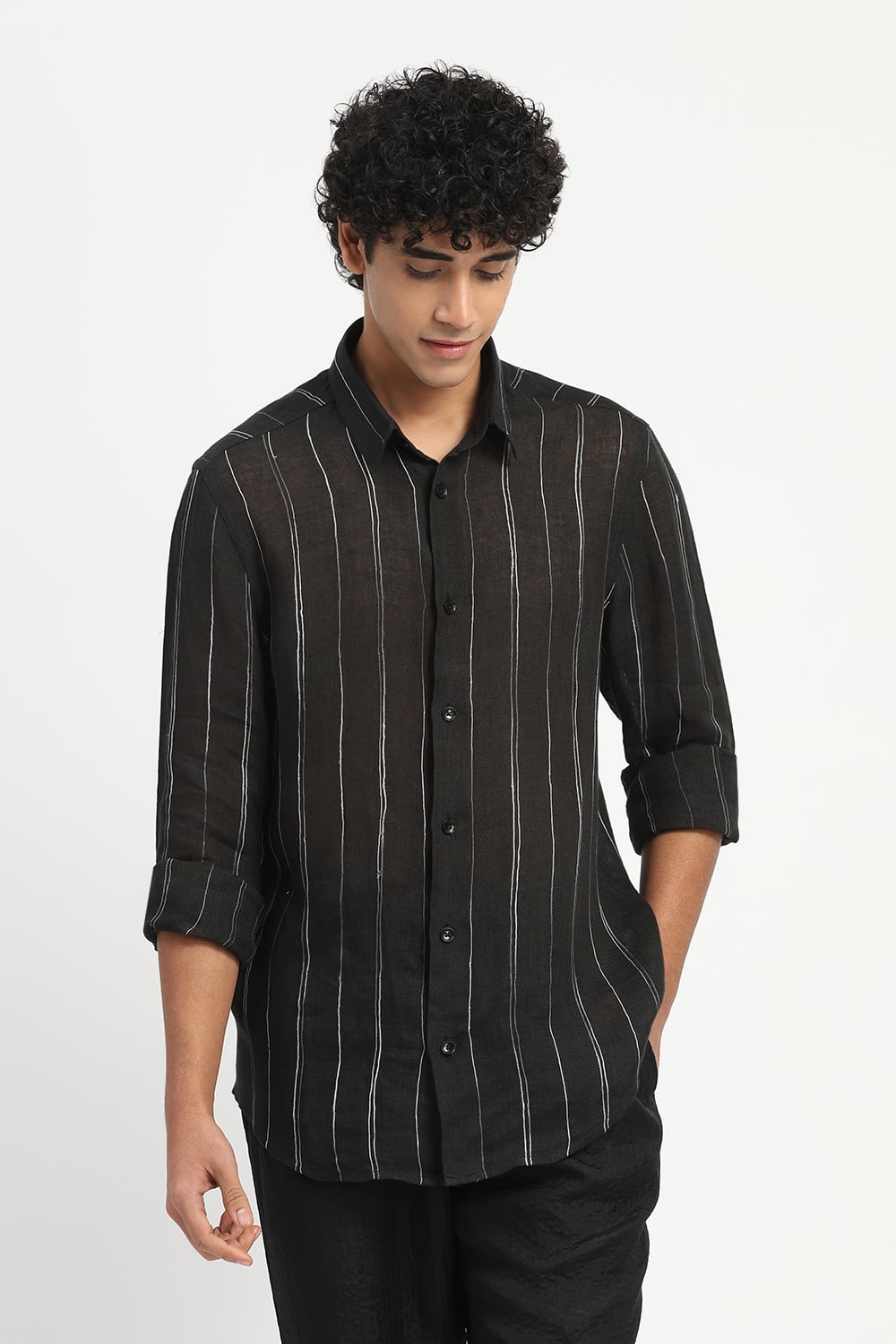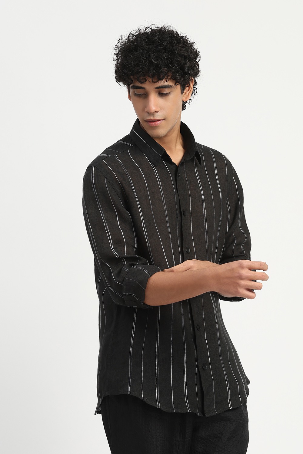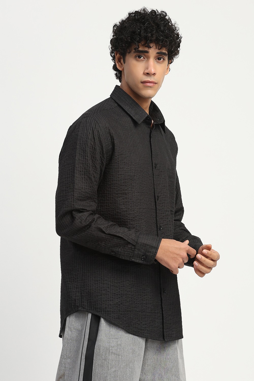 Shaded Aari Stripes Shirt Black
