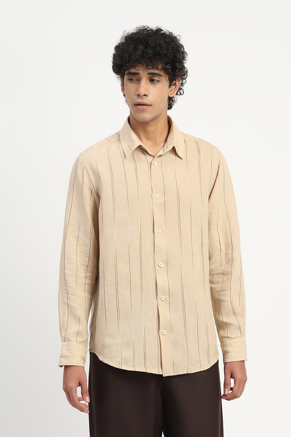 Shaded Aari Stripes Shirt Beige