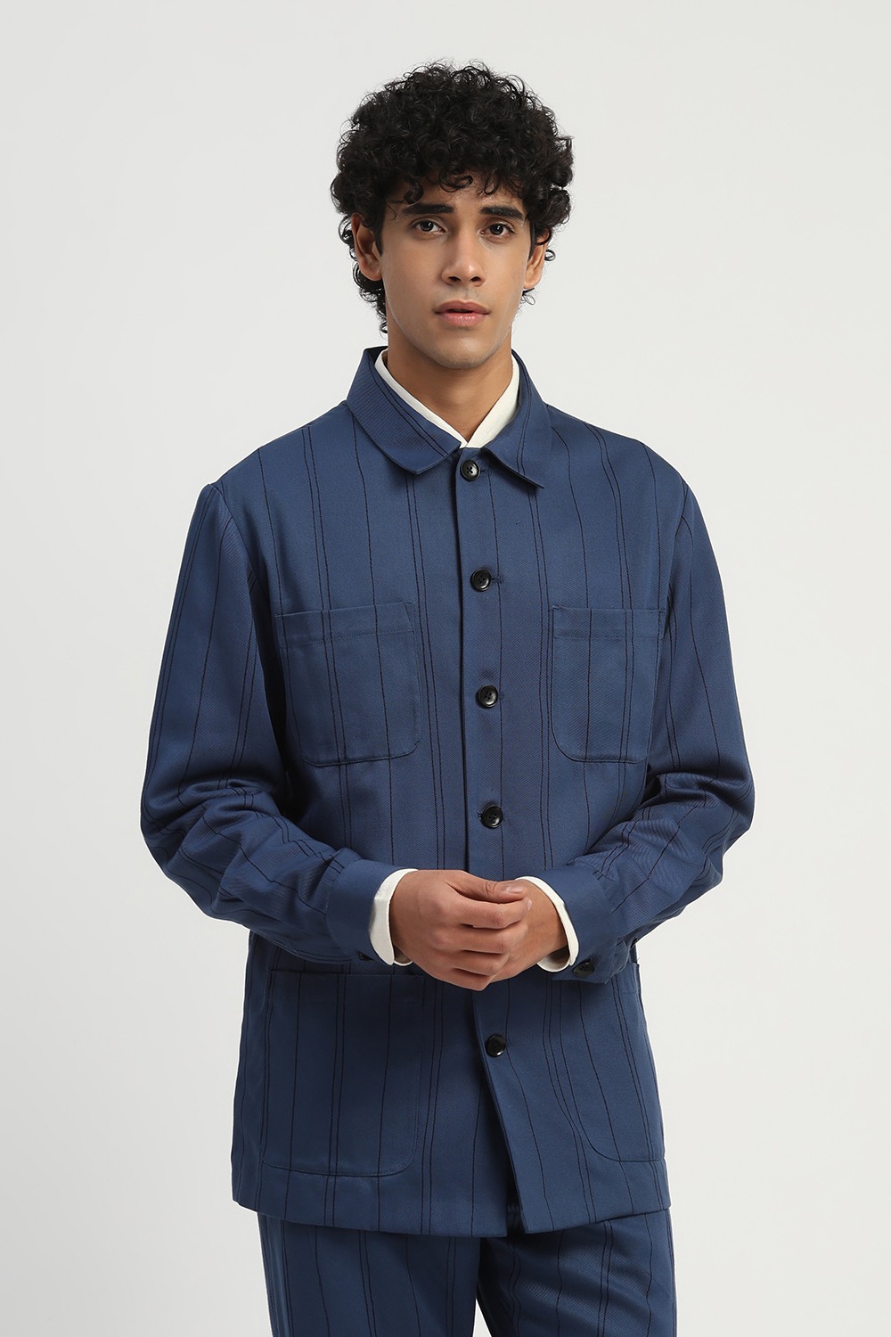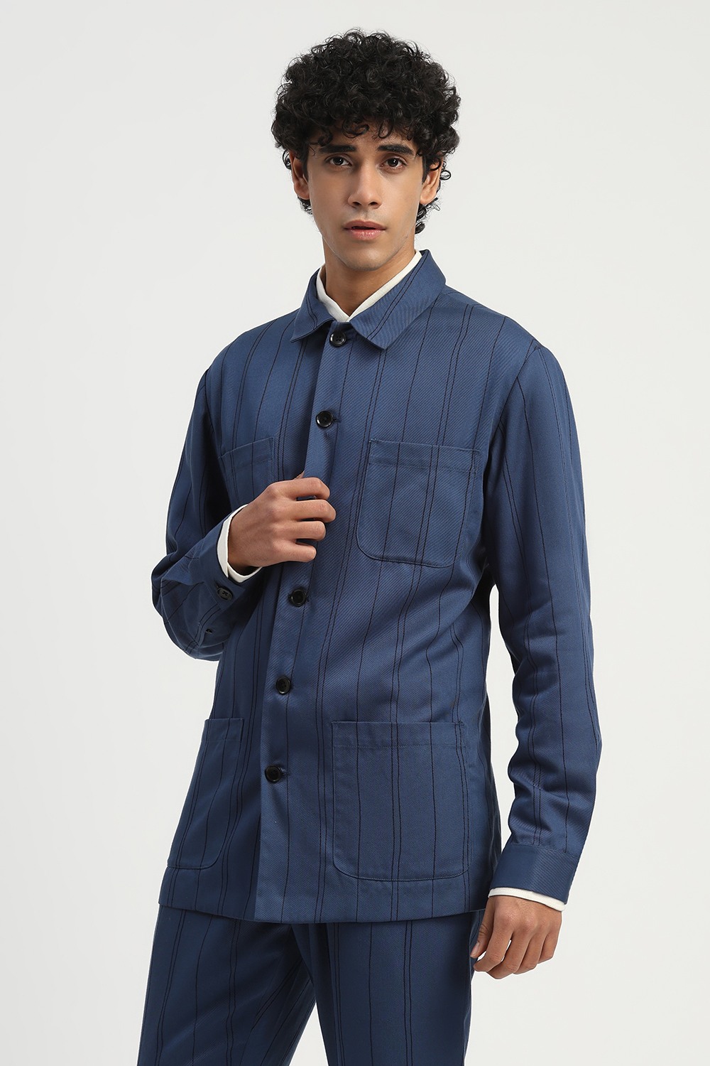 Shaded Aari Stripes Shirt Jacket Indigo