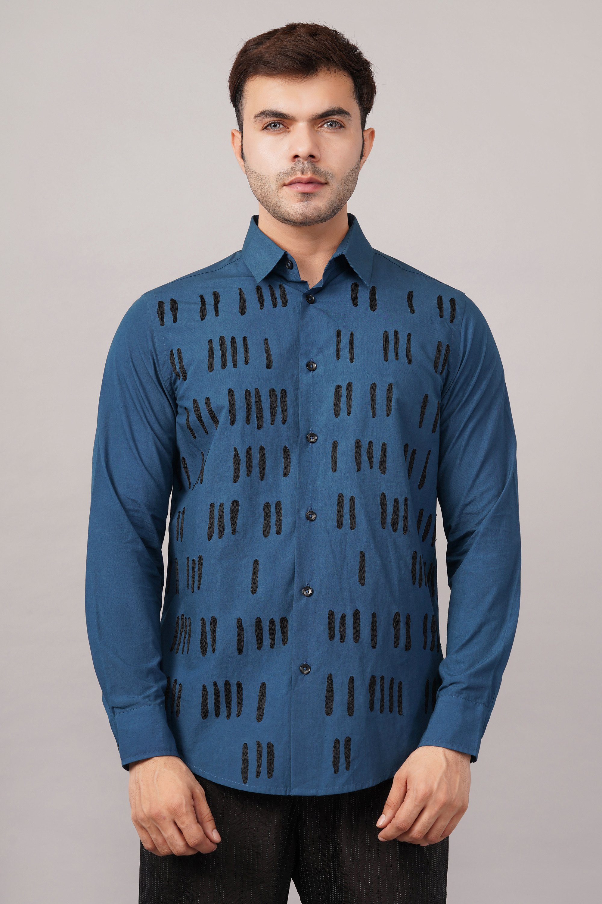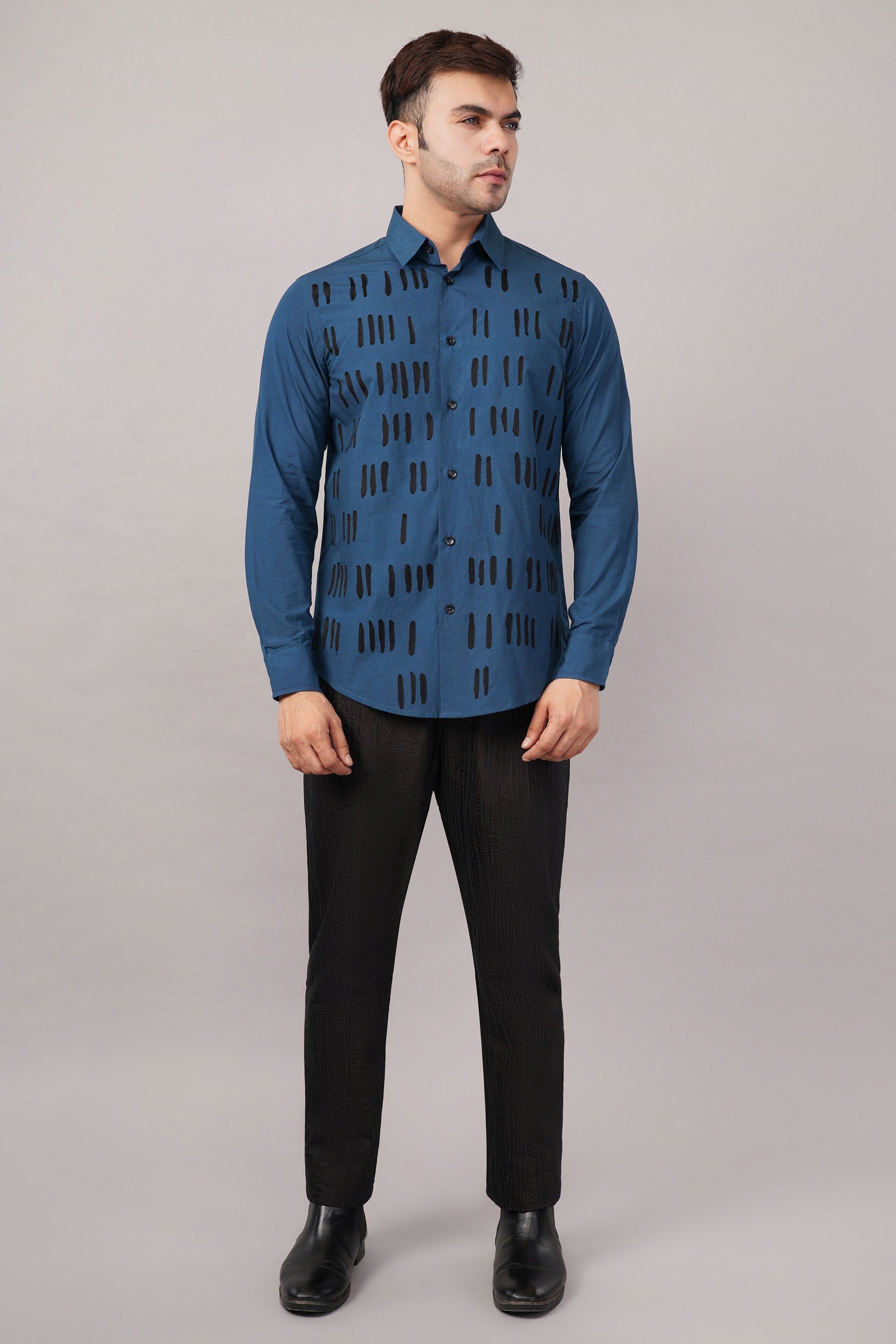 Crewel Embroidered Blocks Shirt