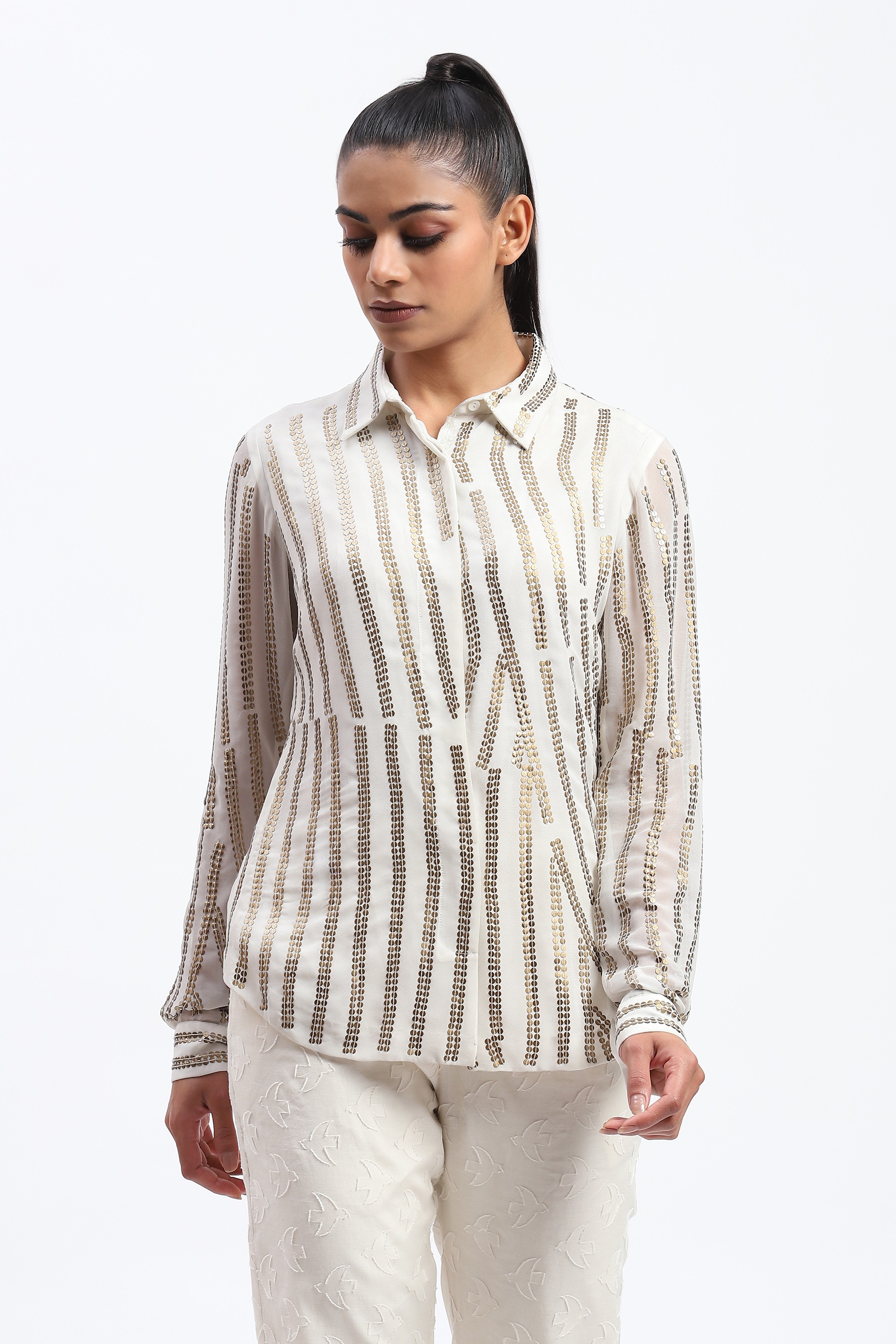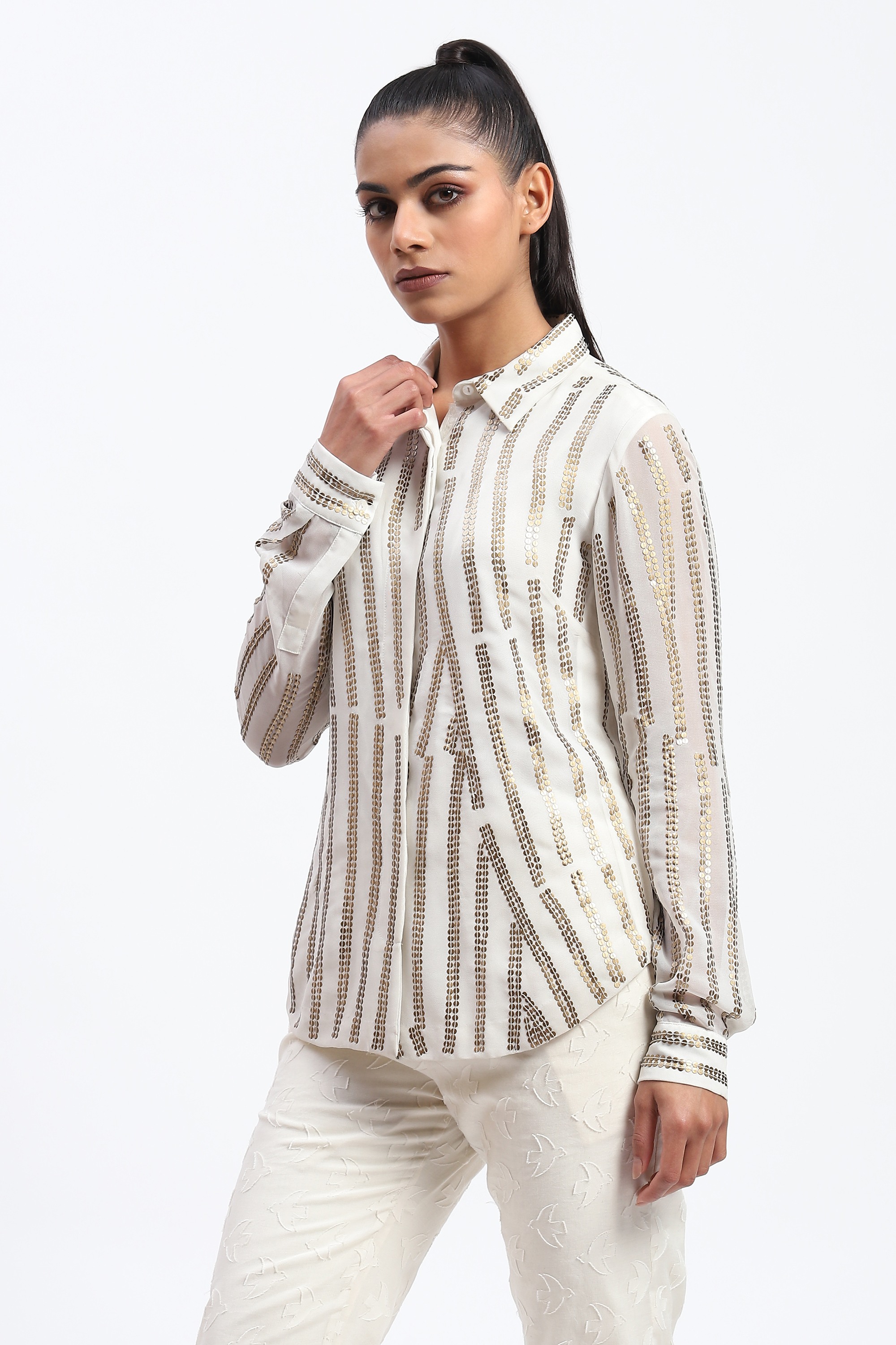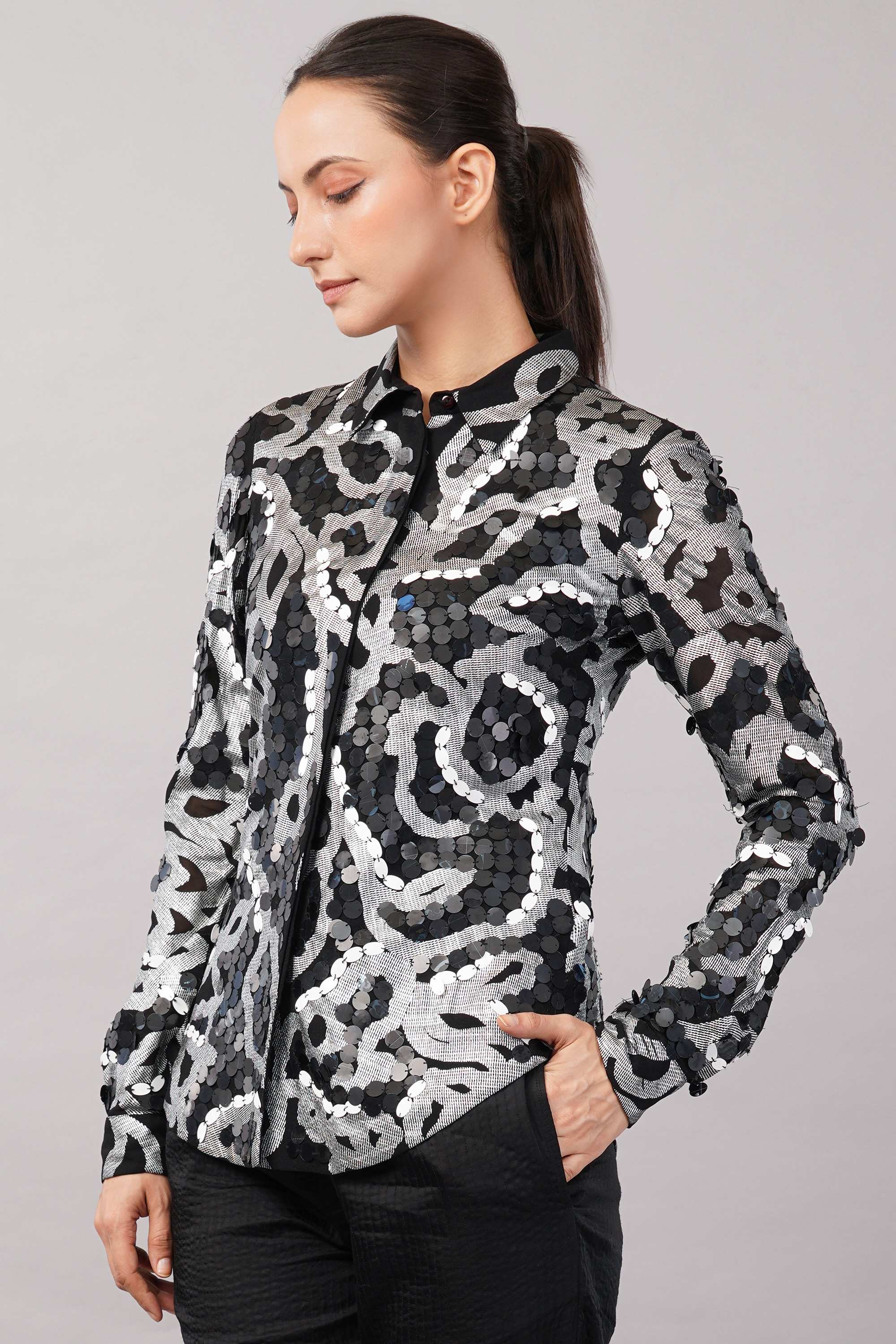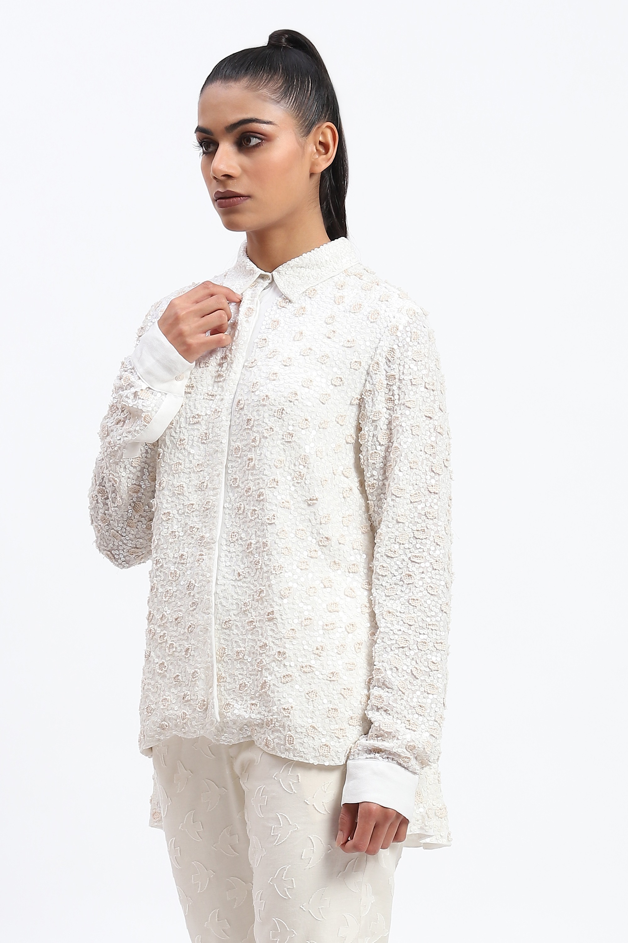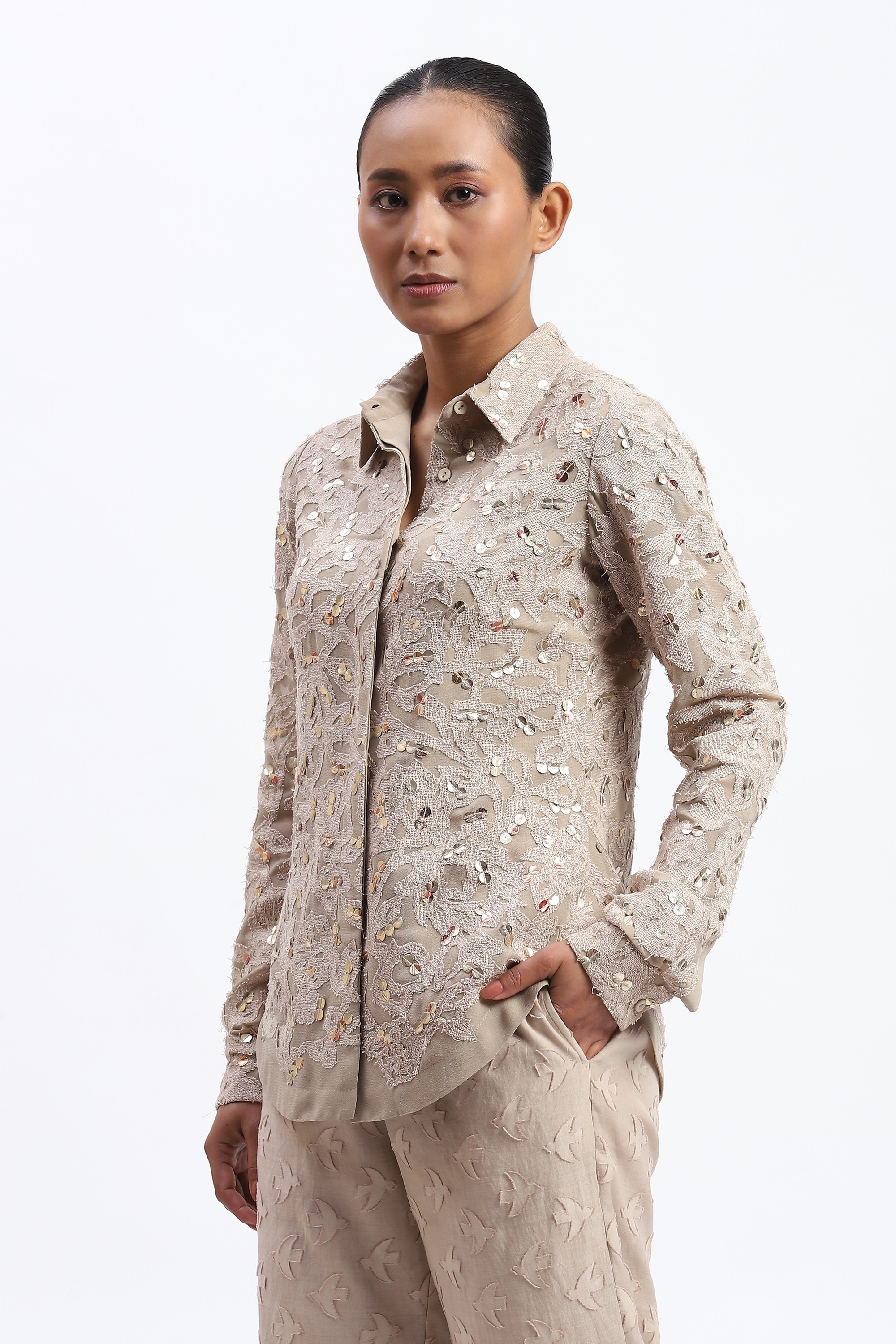 Cutwork Floral With Recycled Sequins Shirt
