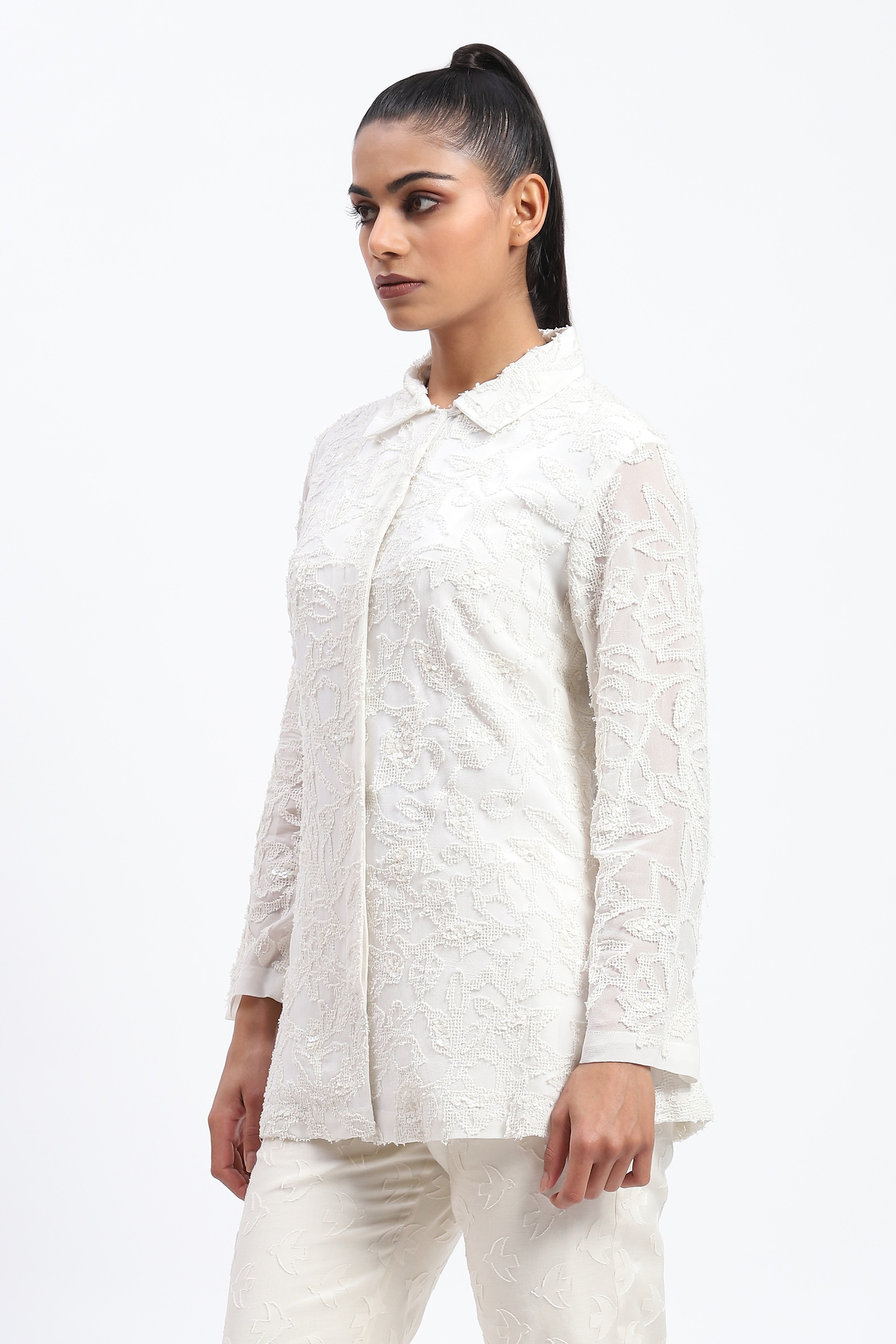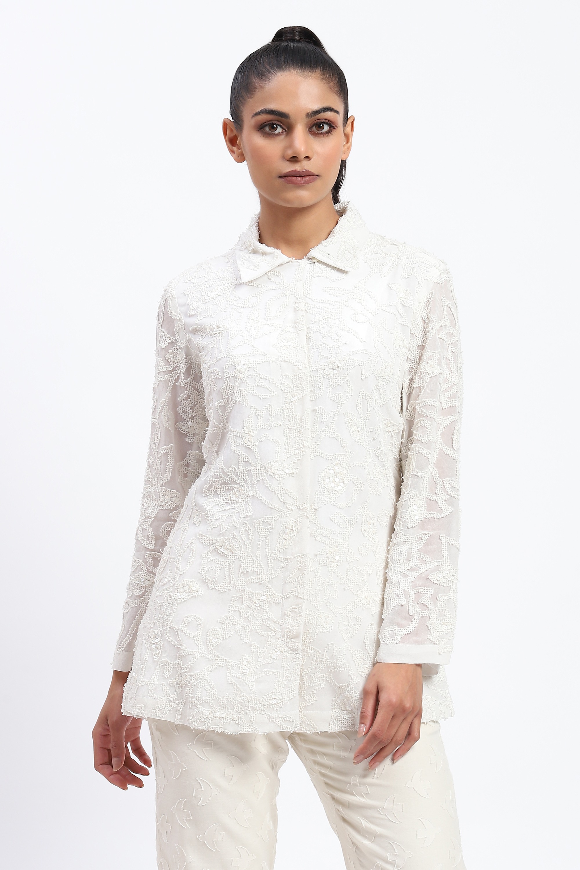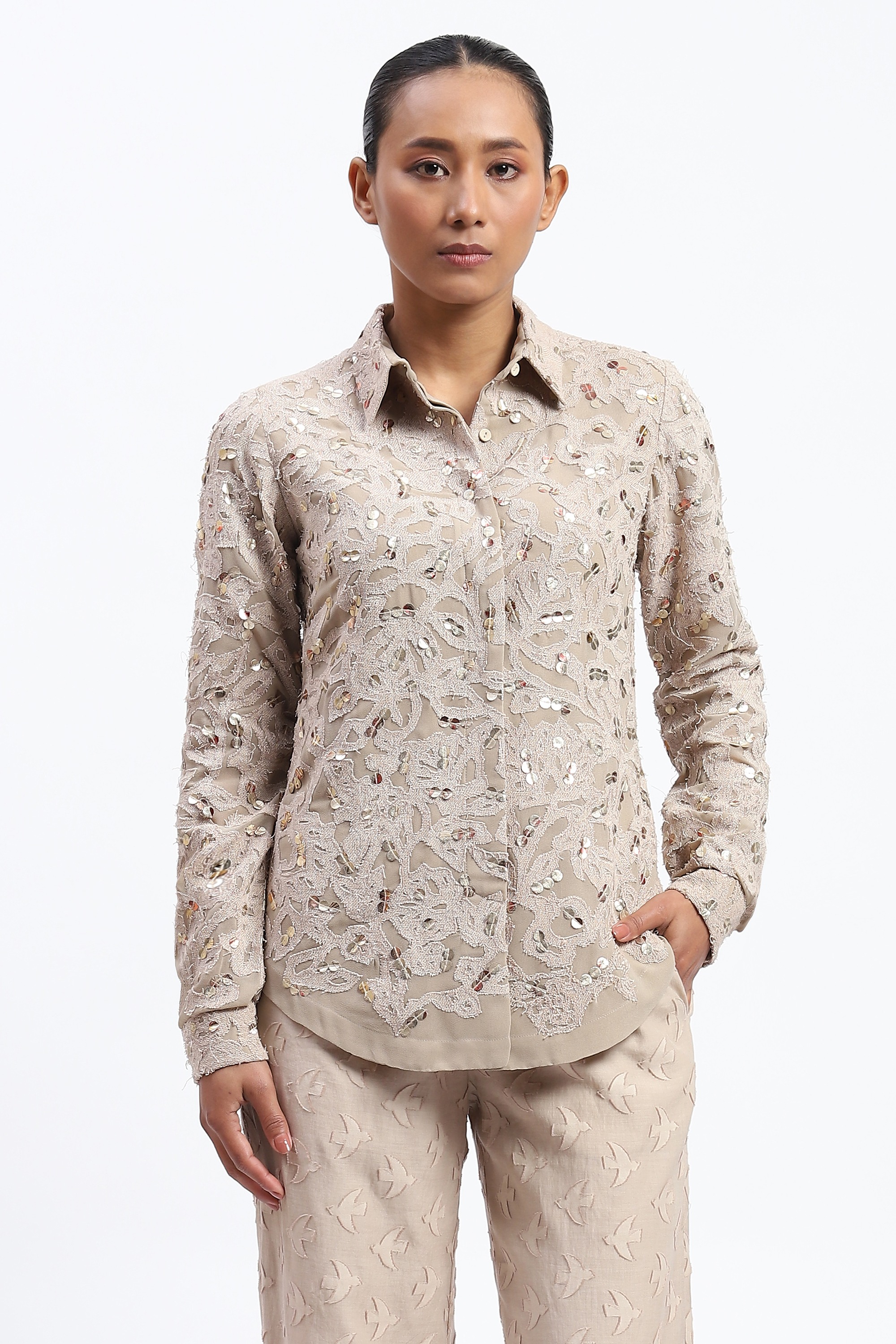 Cutwork Floral With Sequins Shirt