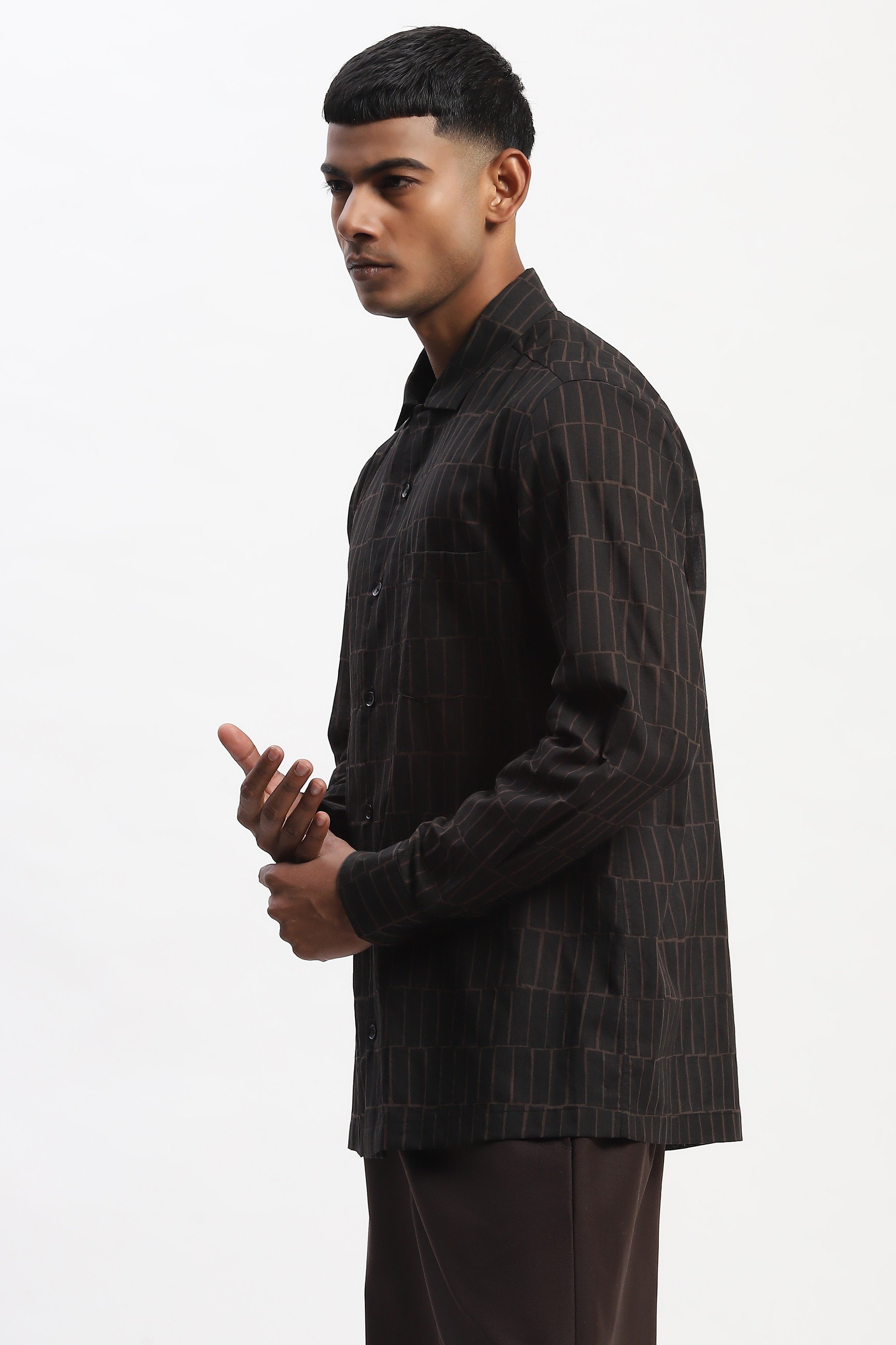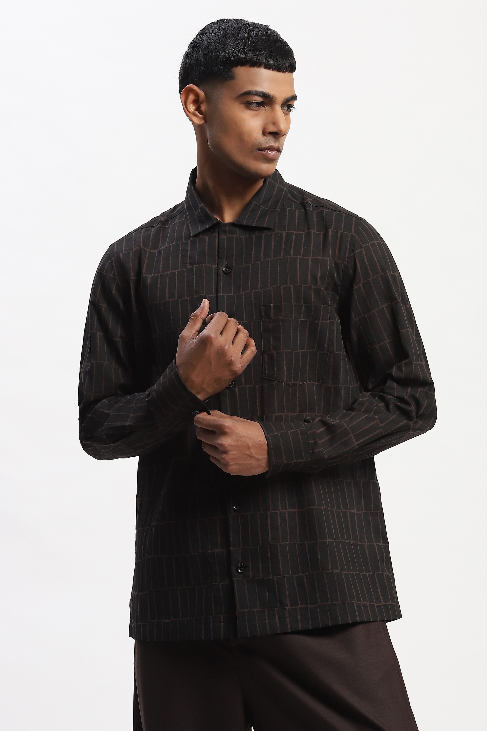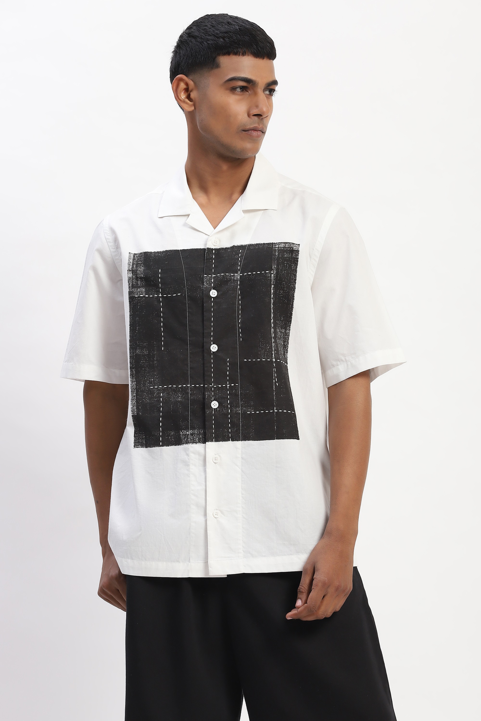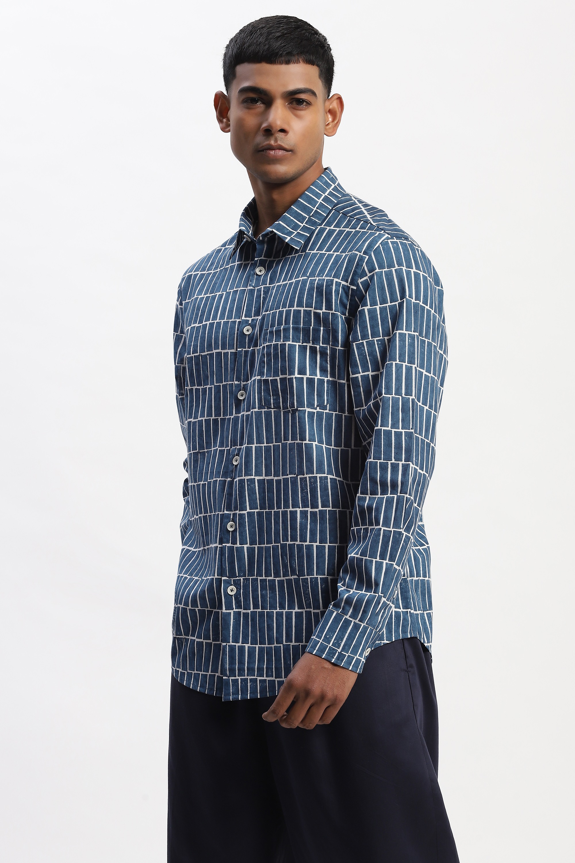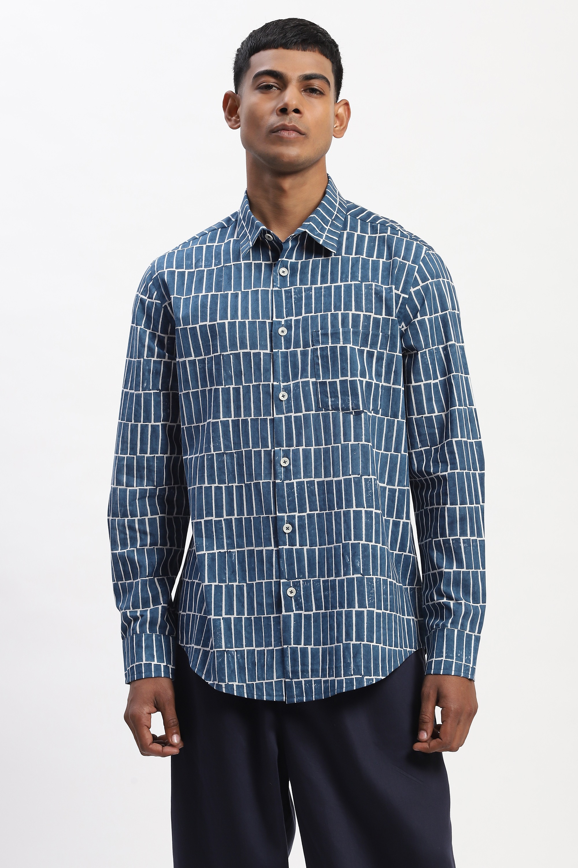 Hand Block Printed Grid Shirt