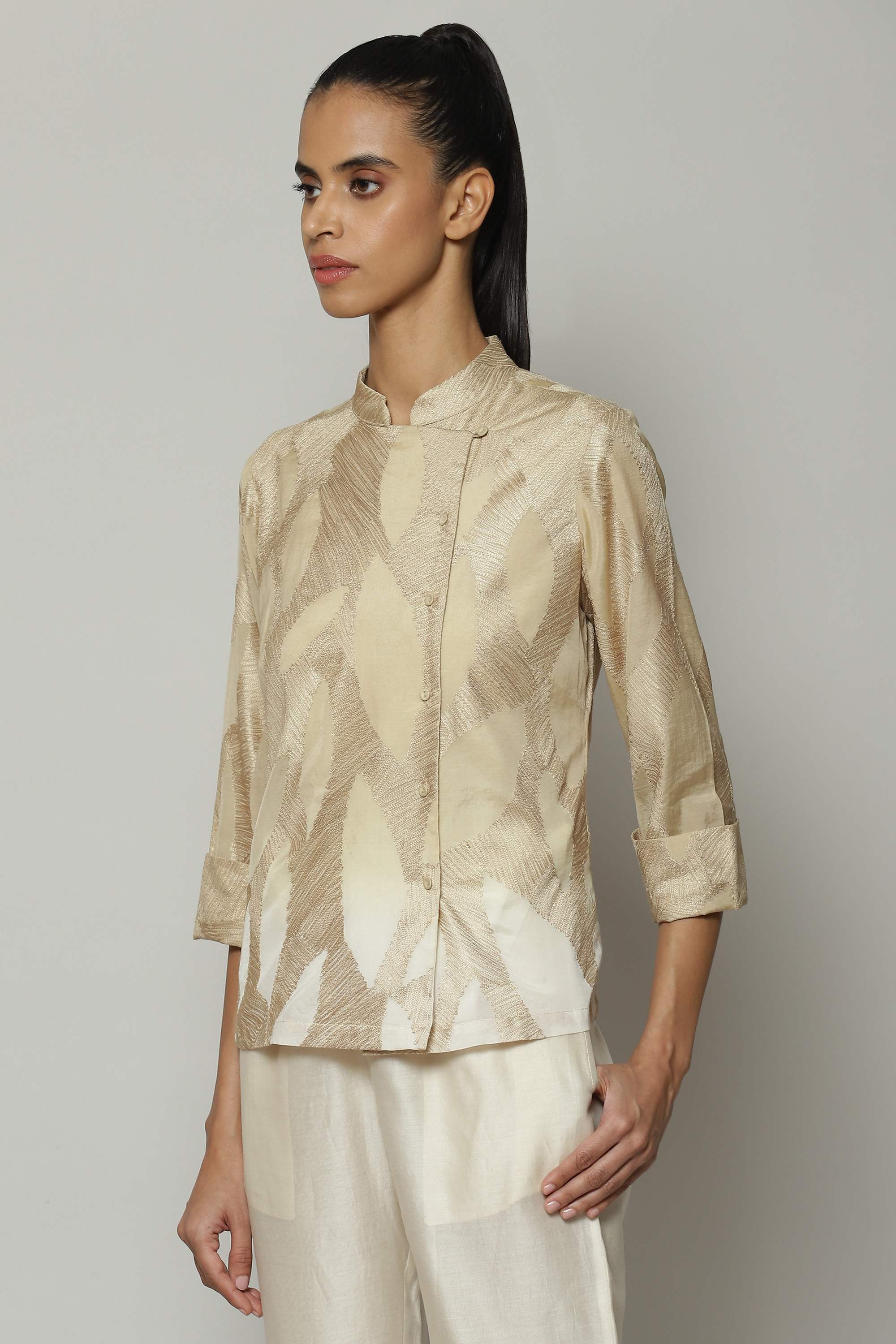 Ombre Crewel Embroidered Voile Shirt Parchment