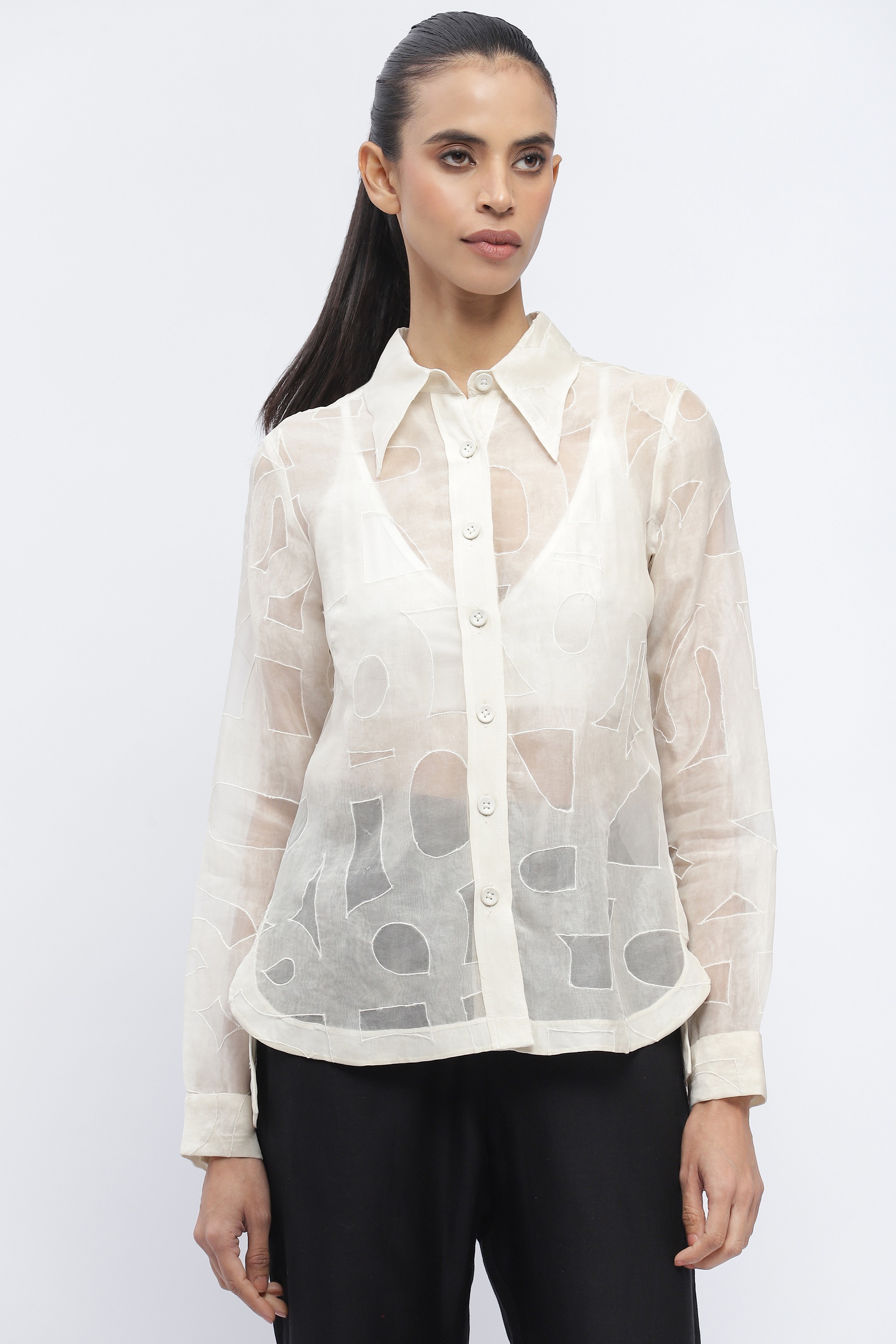 SILK APPLIQUE WHITE SHIRT