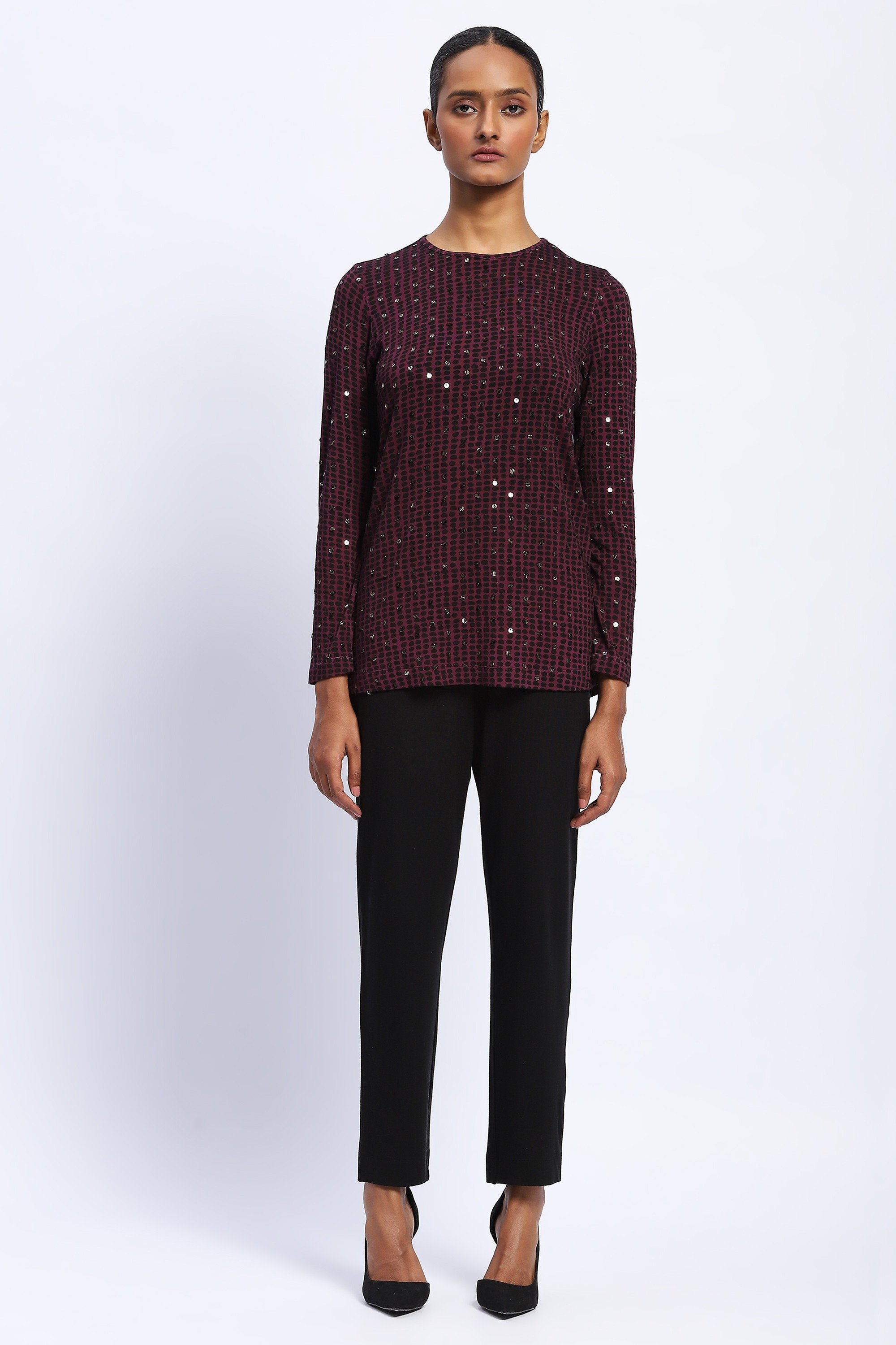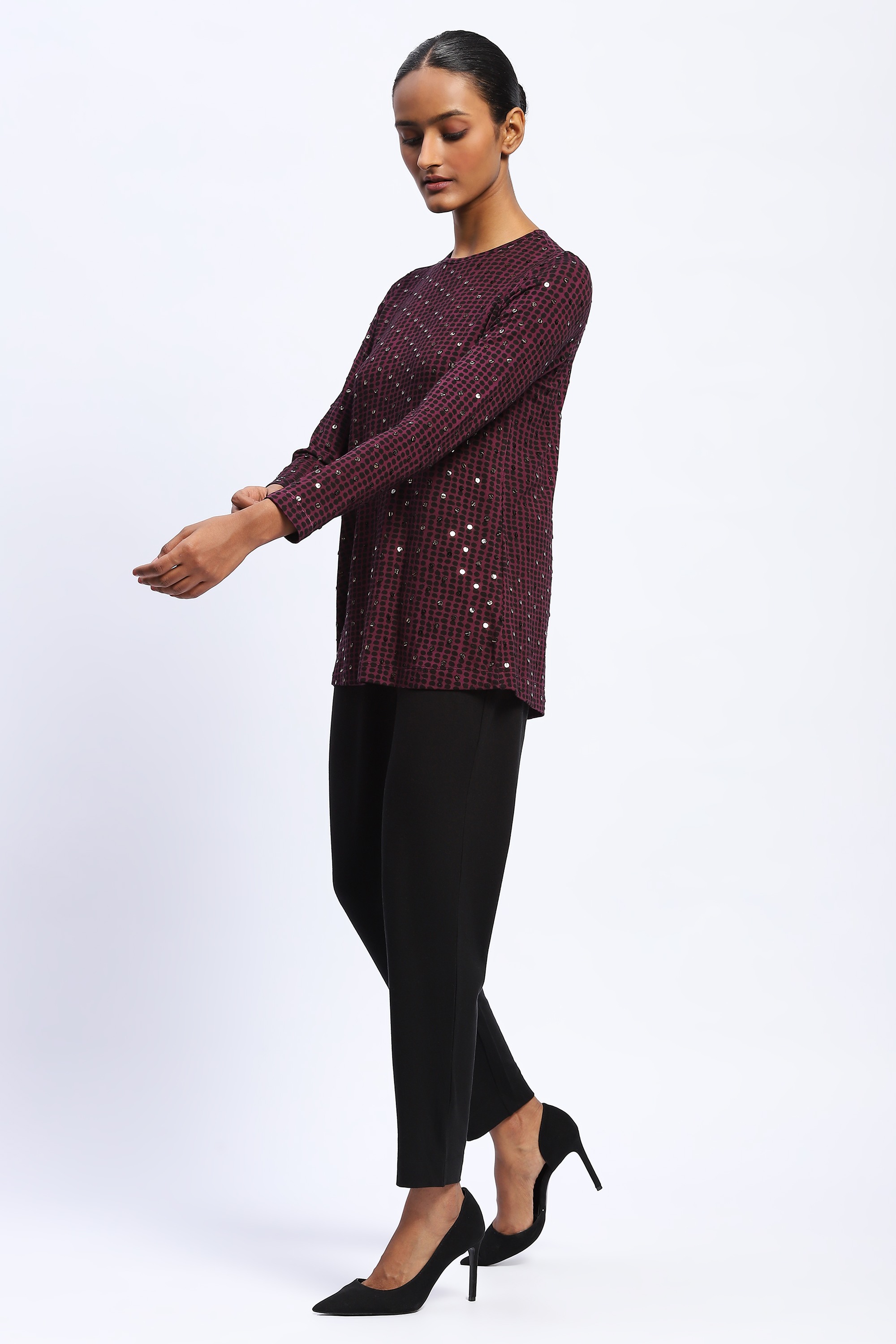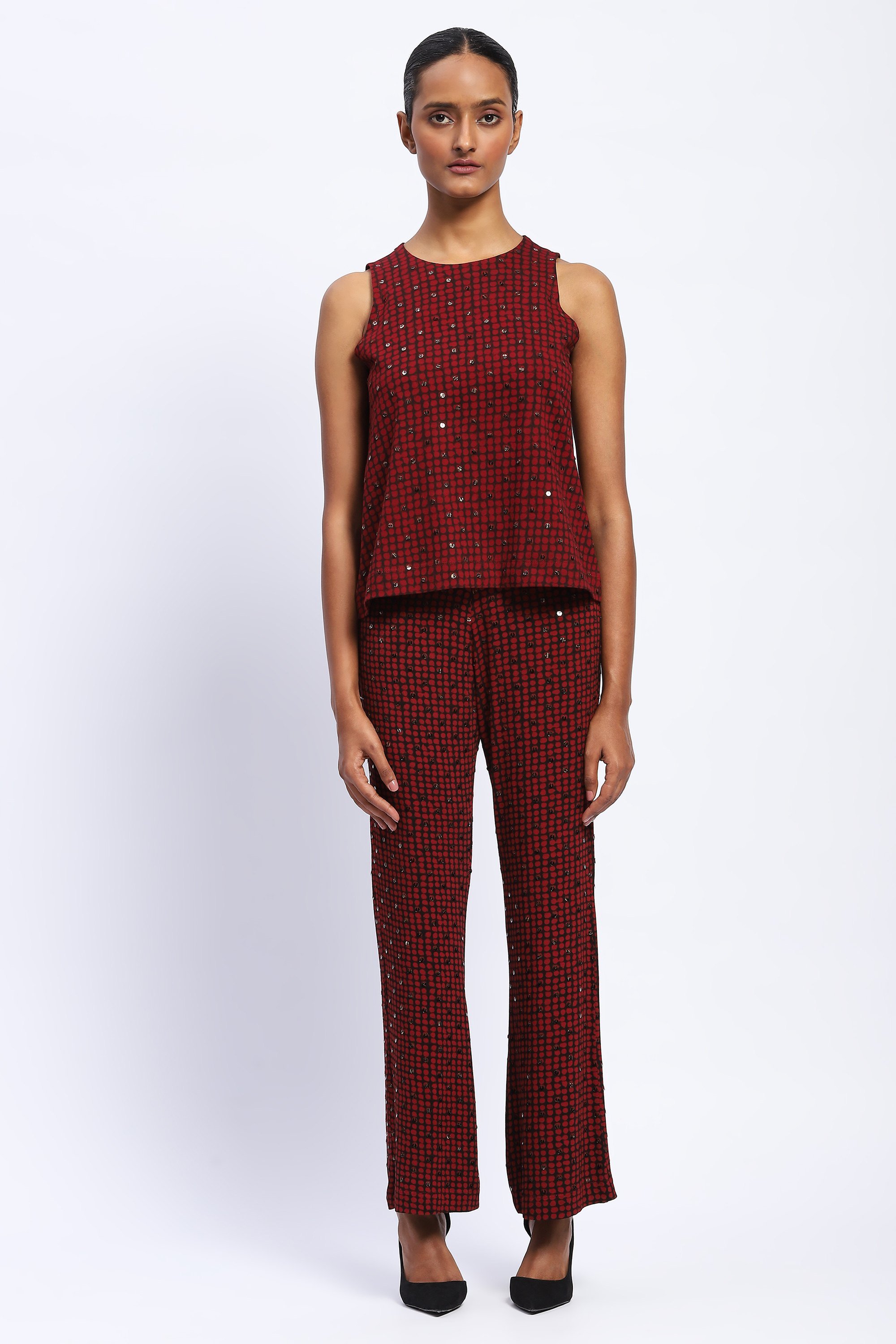 Embellished Dot Print Top