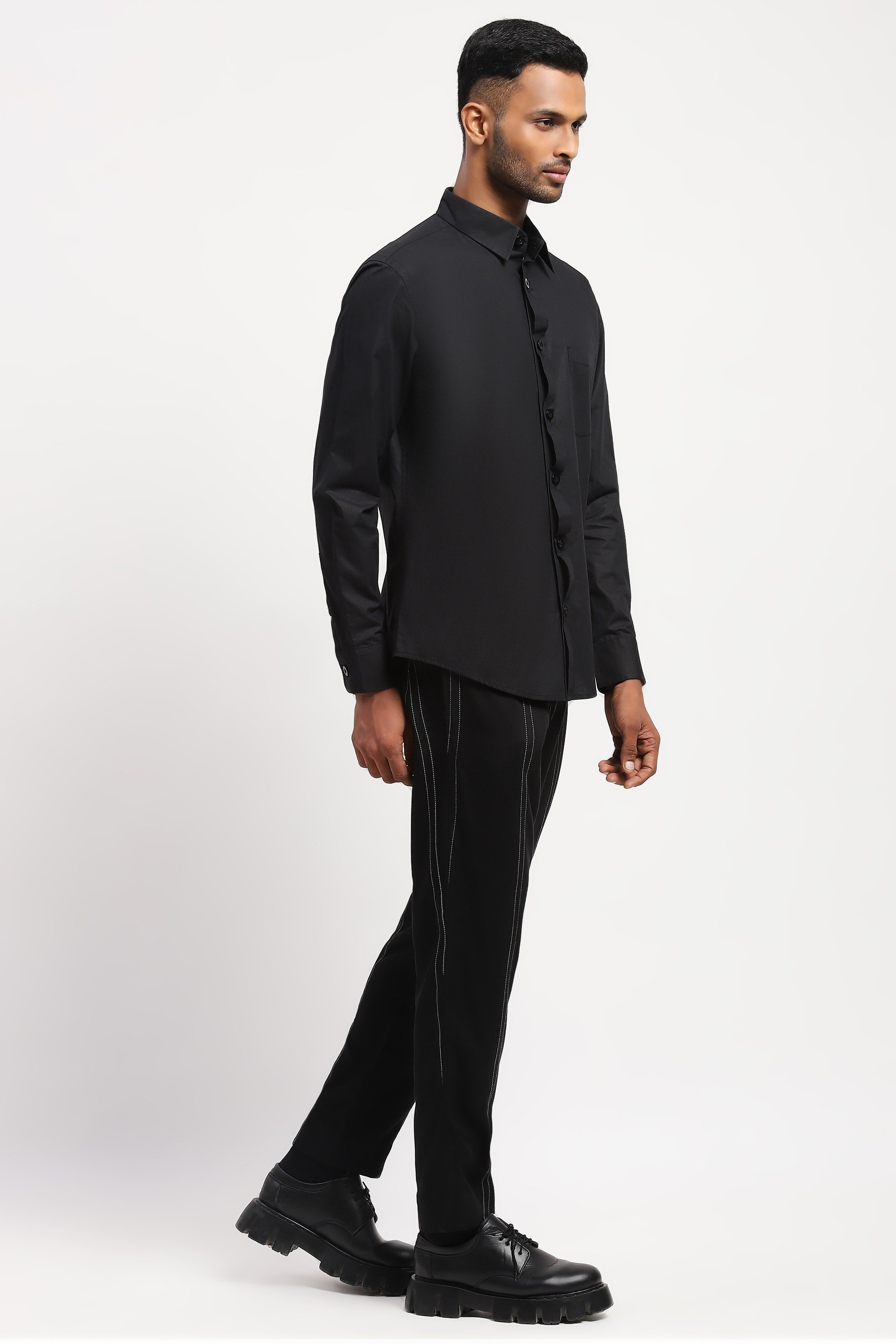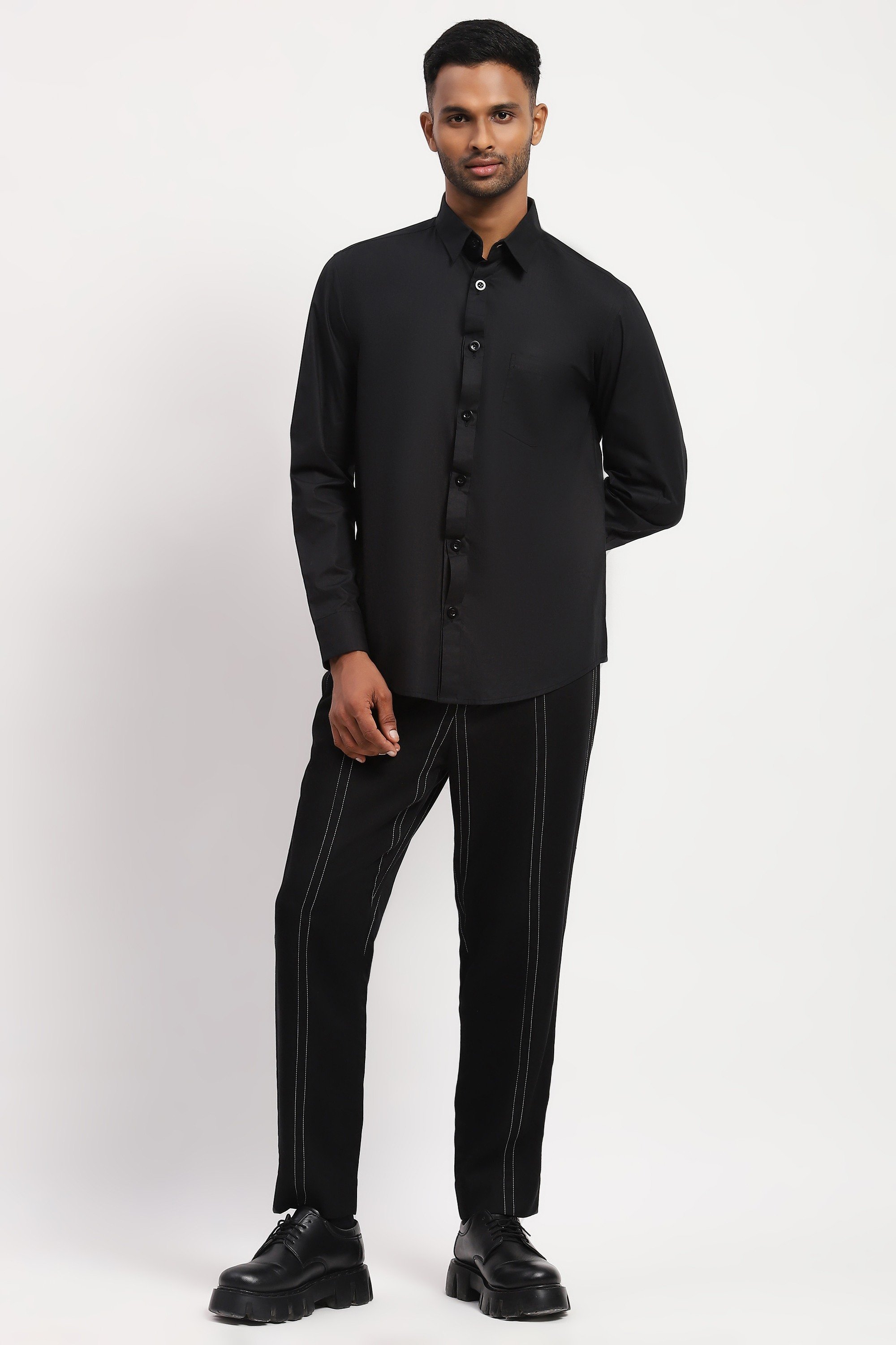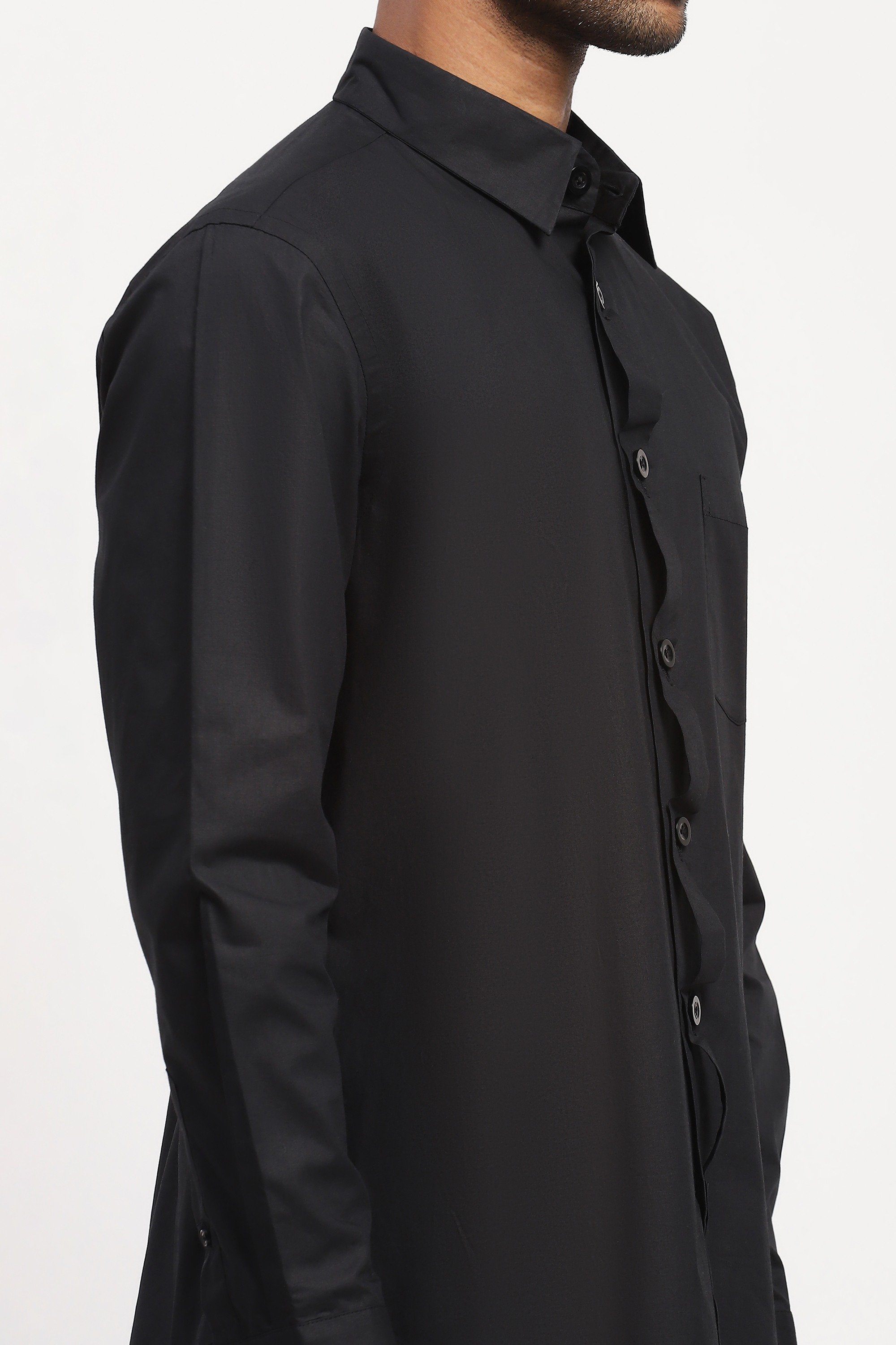 Ideal for navigating unknown terrain, this black shirt is crafted in breathable cotton poplin. Buttons made from Corozo, a tree in South America, brighten up this creation.