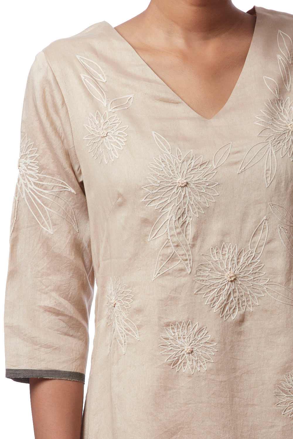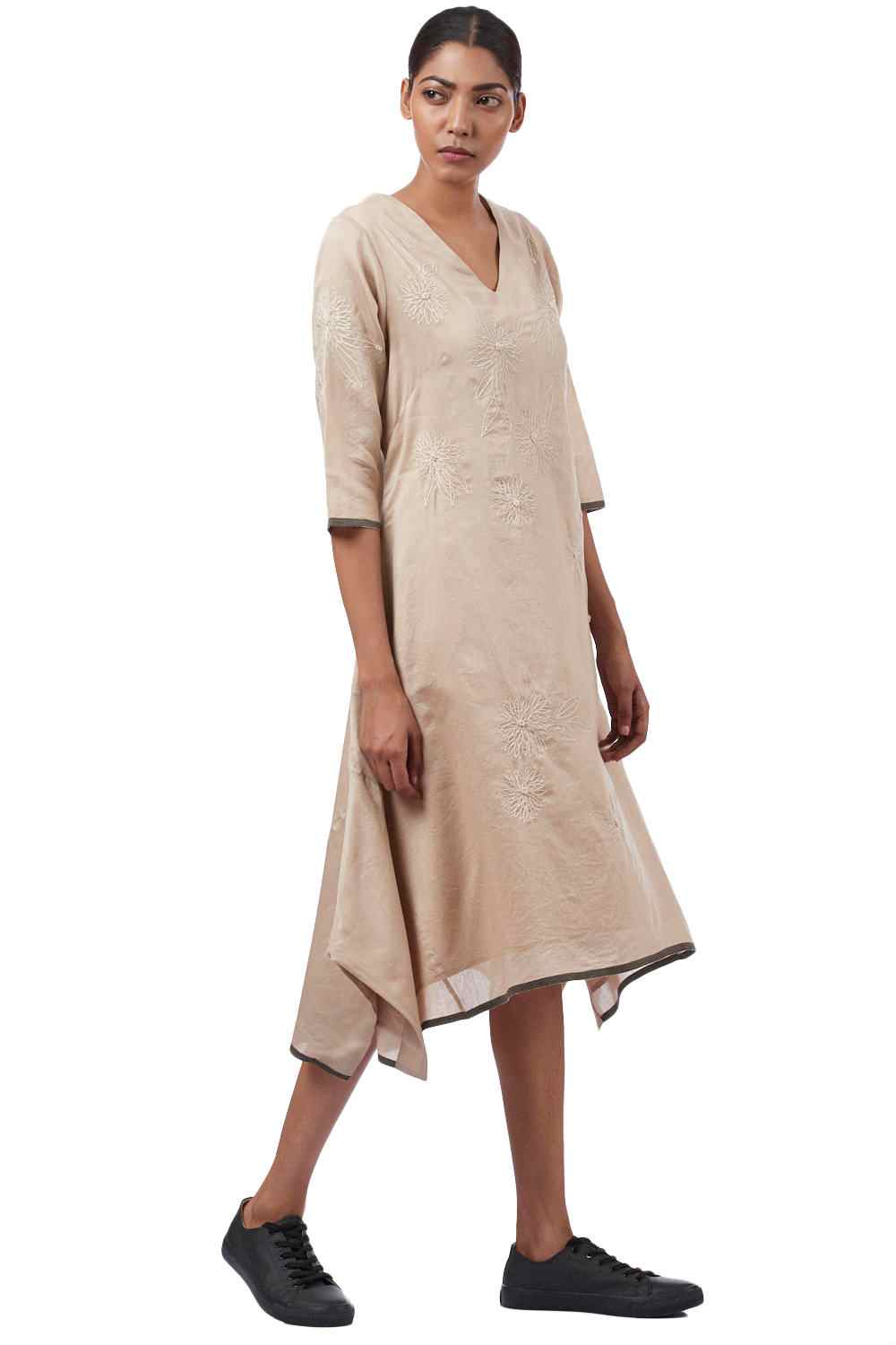 Regular Fit Kite Dress. Features All Over Aari Embroidered Floral Motifs, With Woven Border. Garments Are Made From Fabric That Is Washed And Pre-Shrunk To Give A Superior Hand.