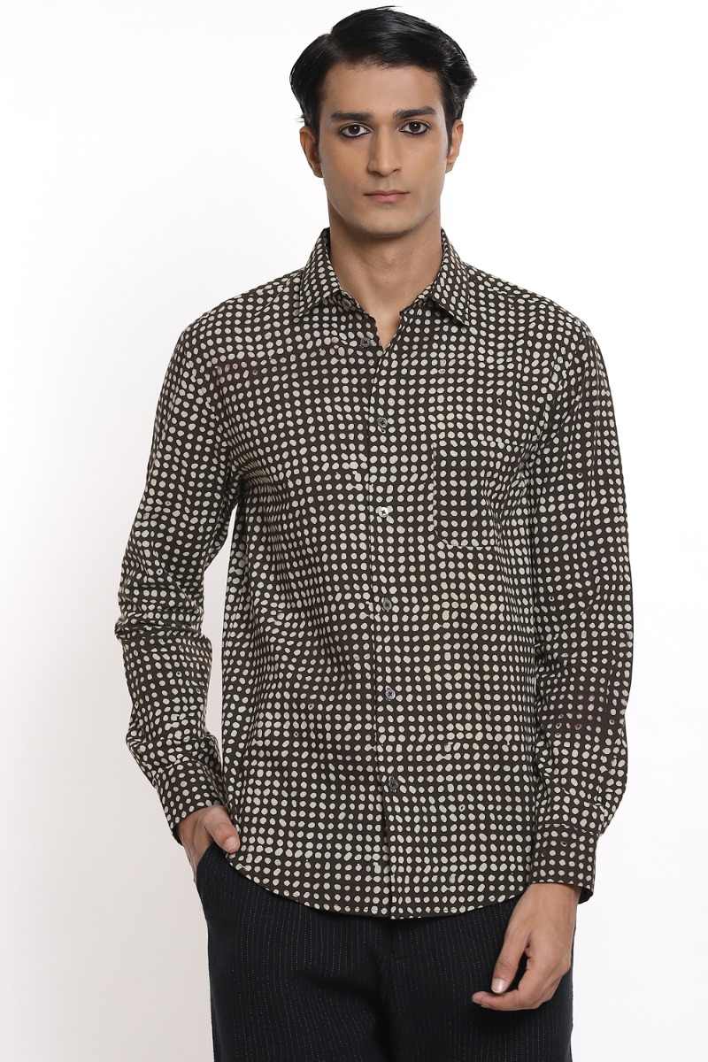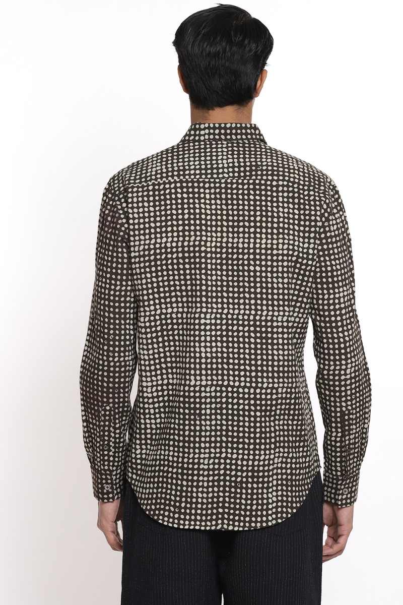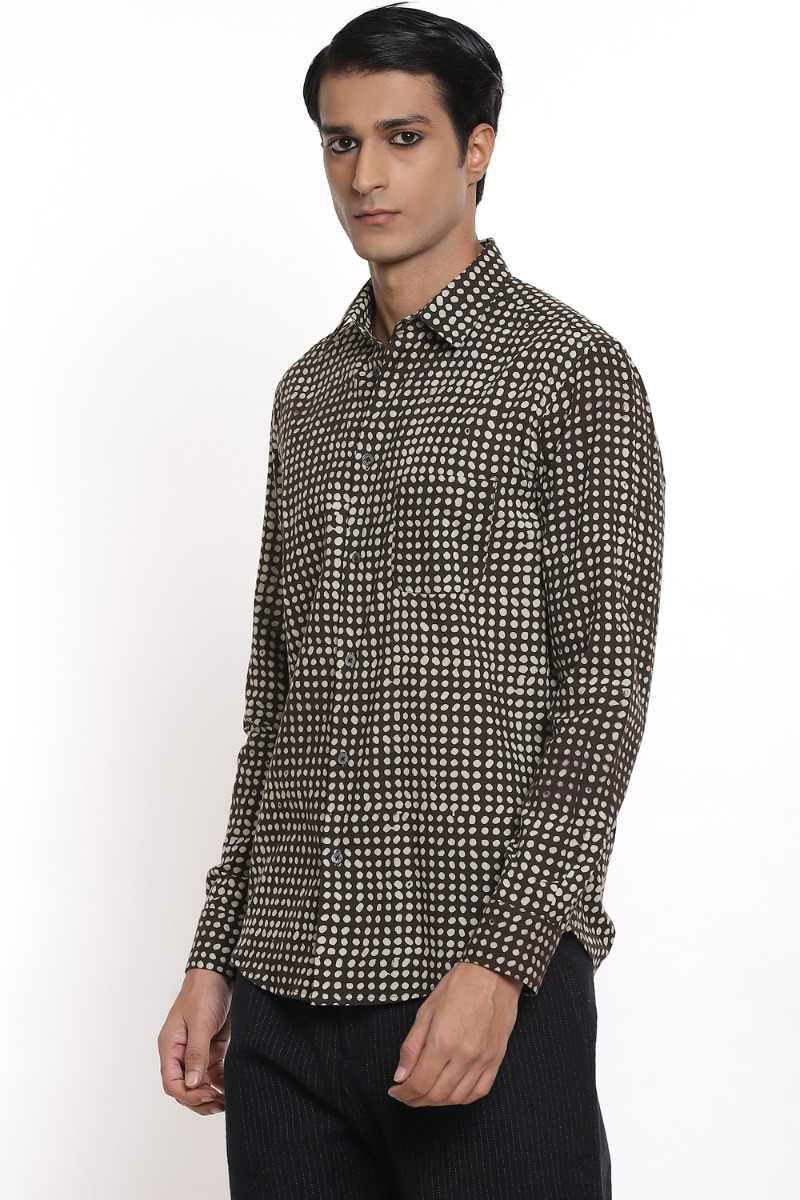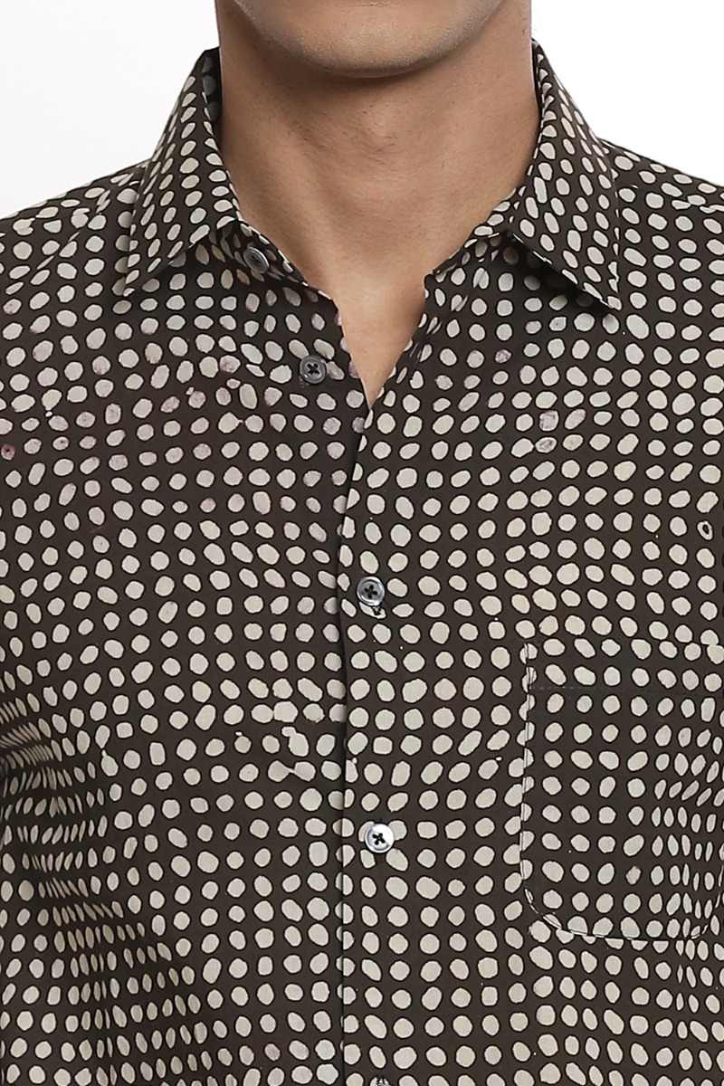 Coffee With All Over Ecru Dot Print. Abraham And Thakore Shirts For Men Have Been Crafted In Lightweight Natural Textiles In Regular And Slim Fits, Employing Various Traditional Textiles Techniques.