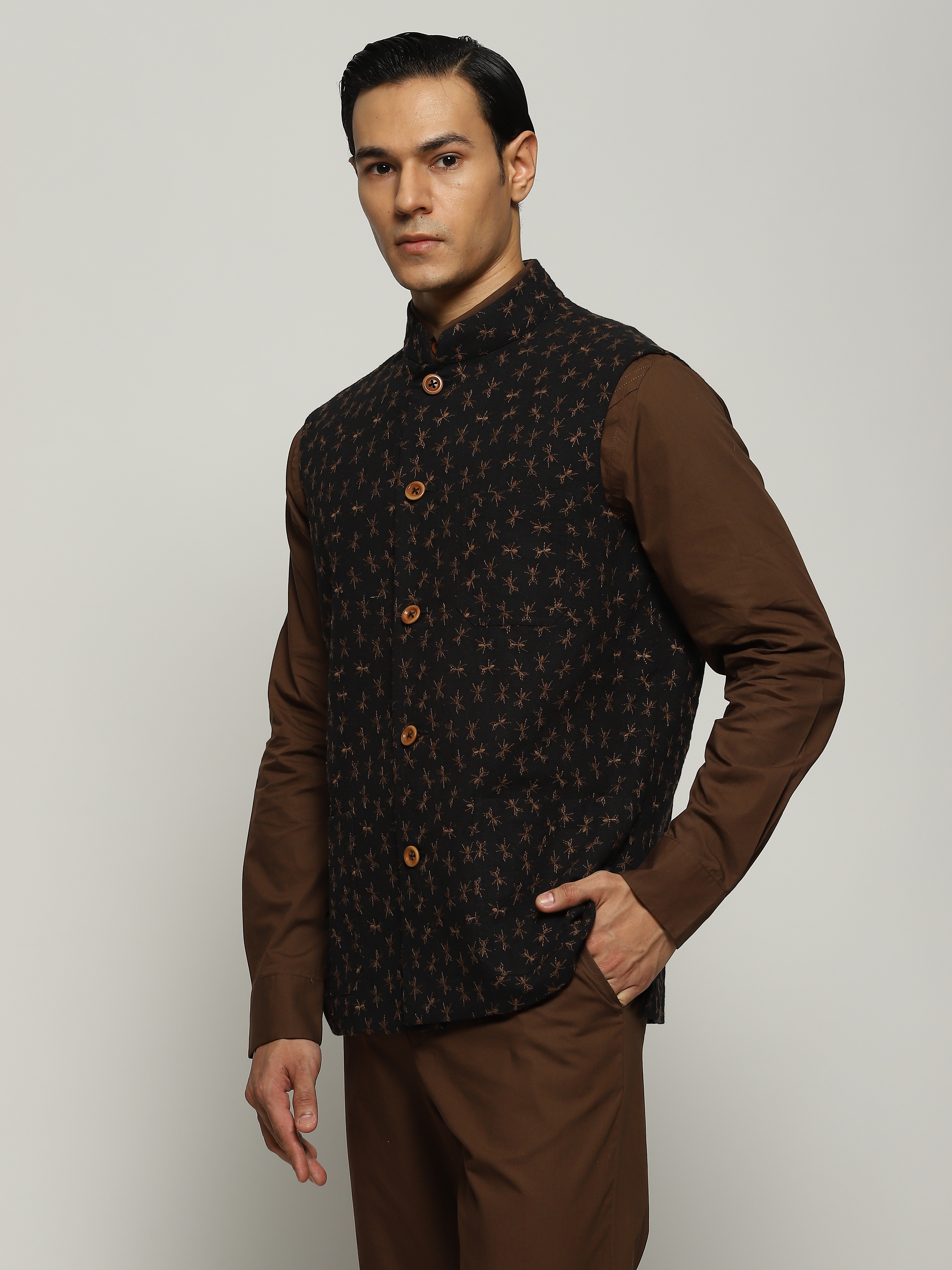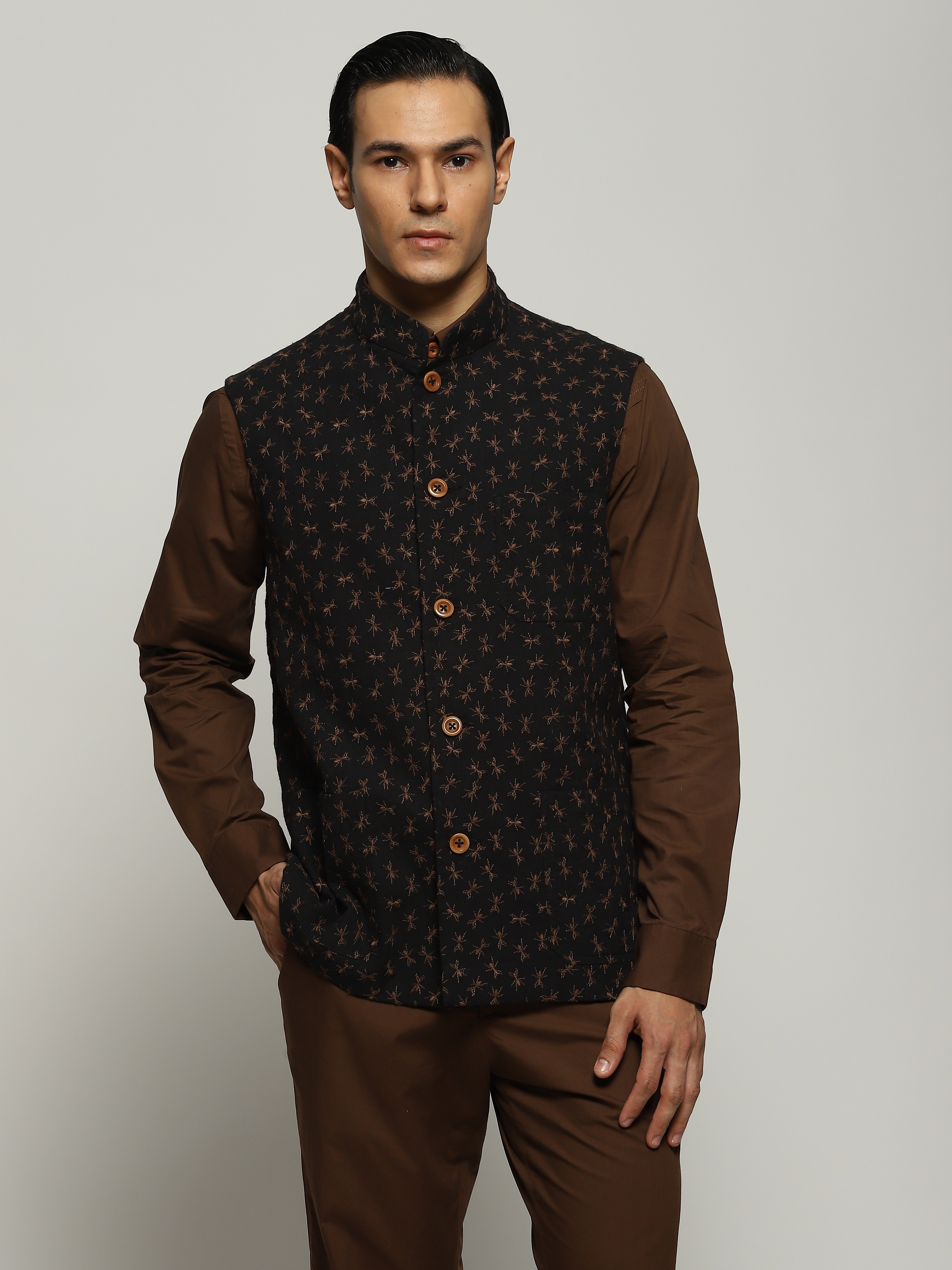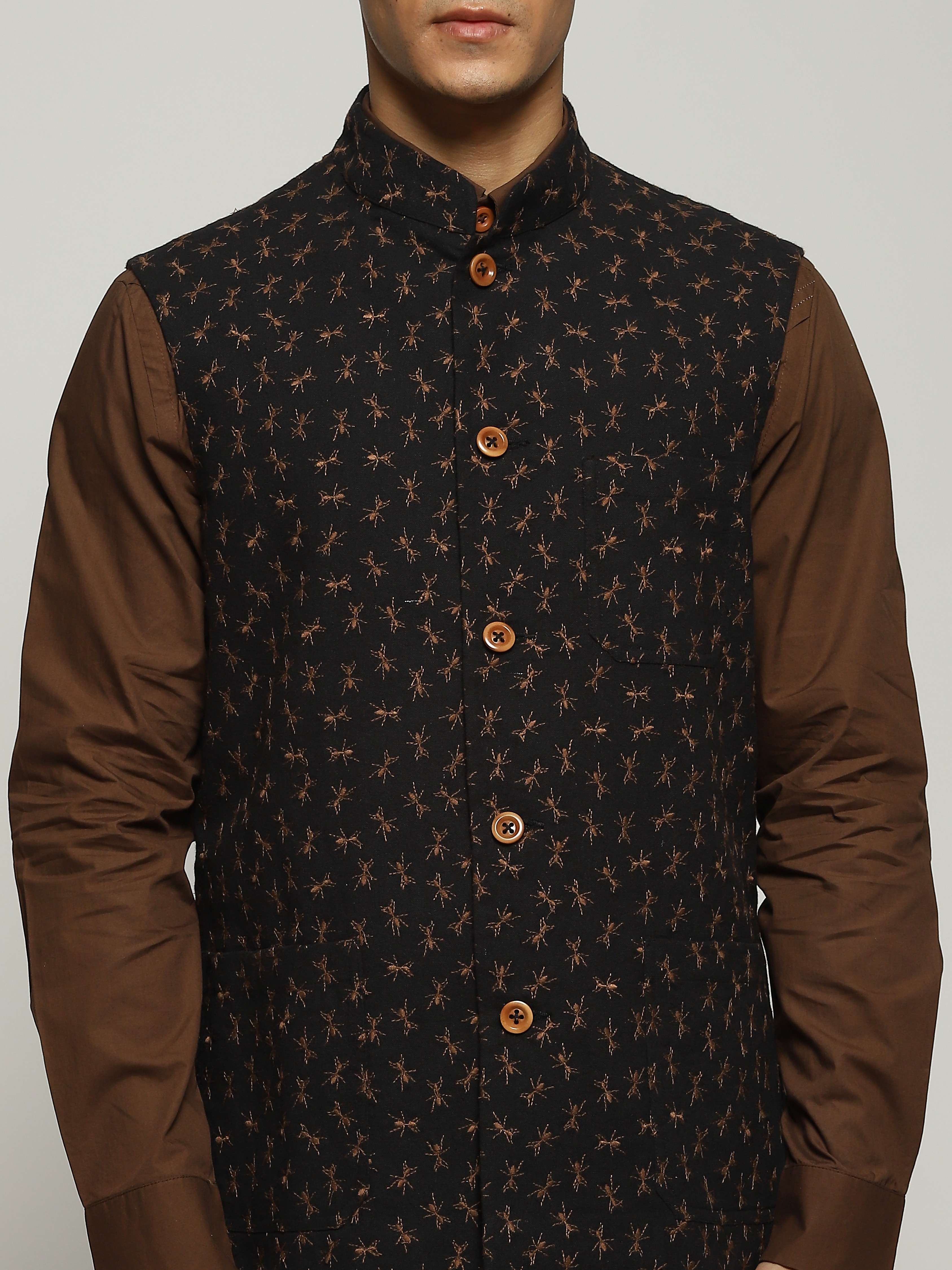 Crafted from durable organic cotton, the ant motifs on this jacket are embroidered with yarn.