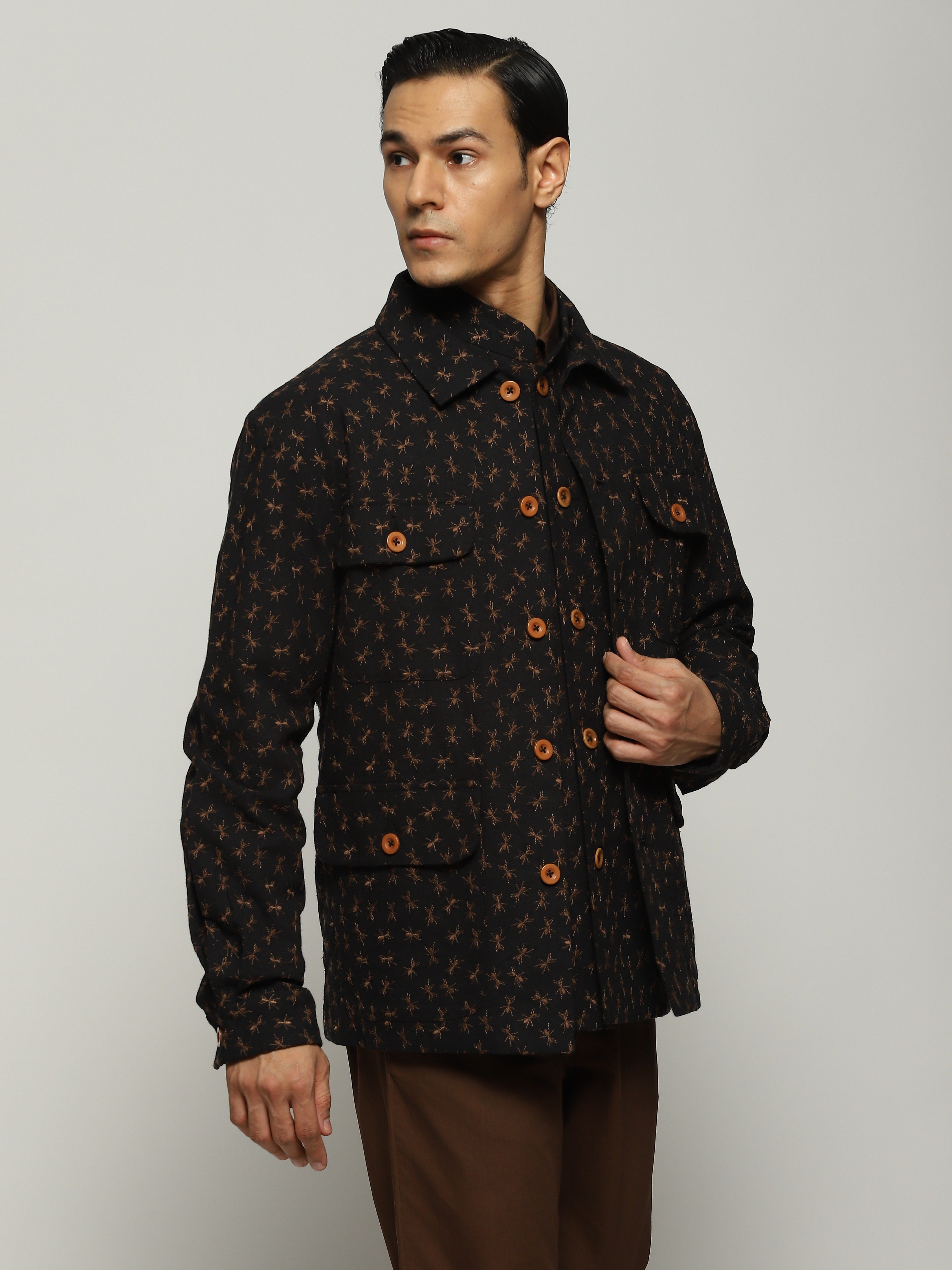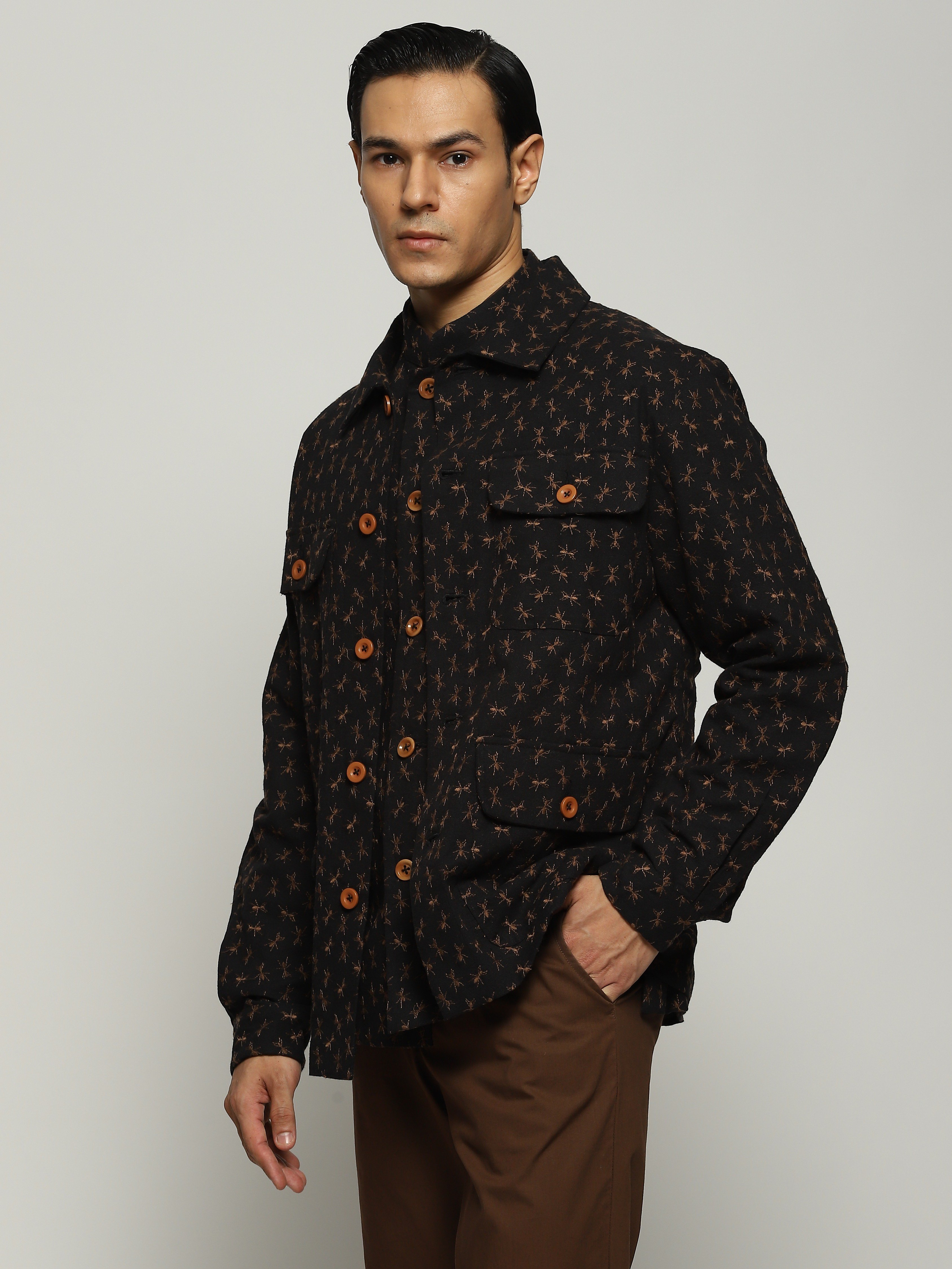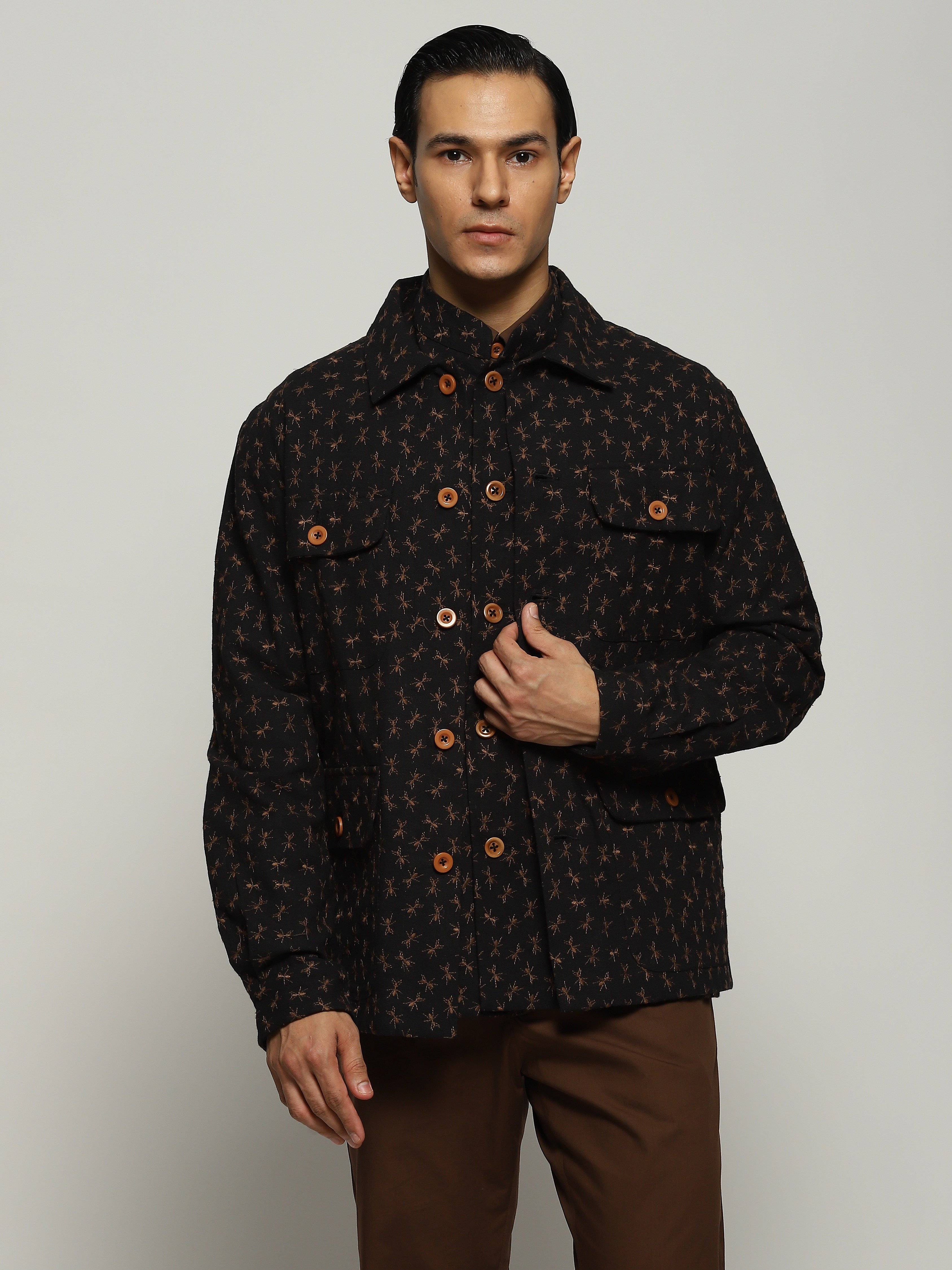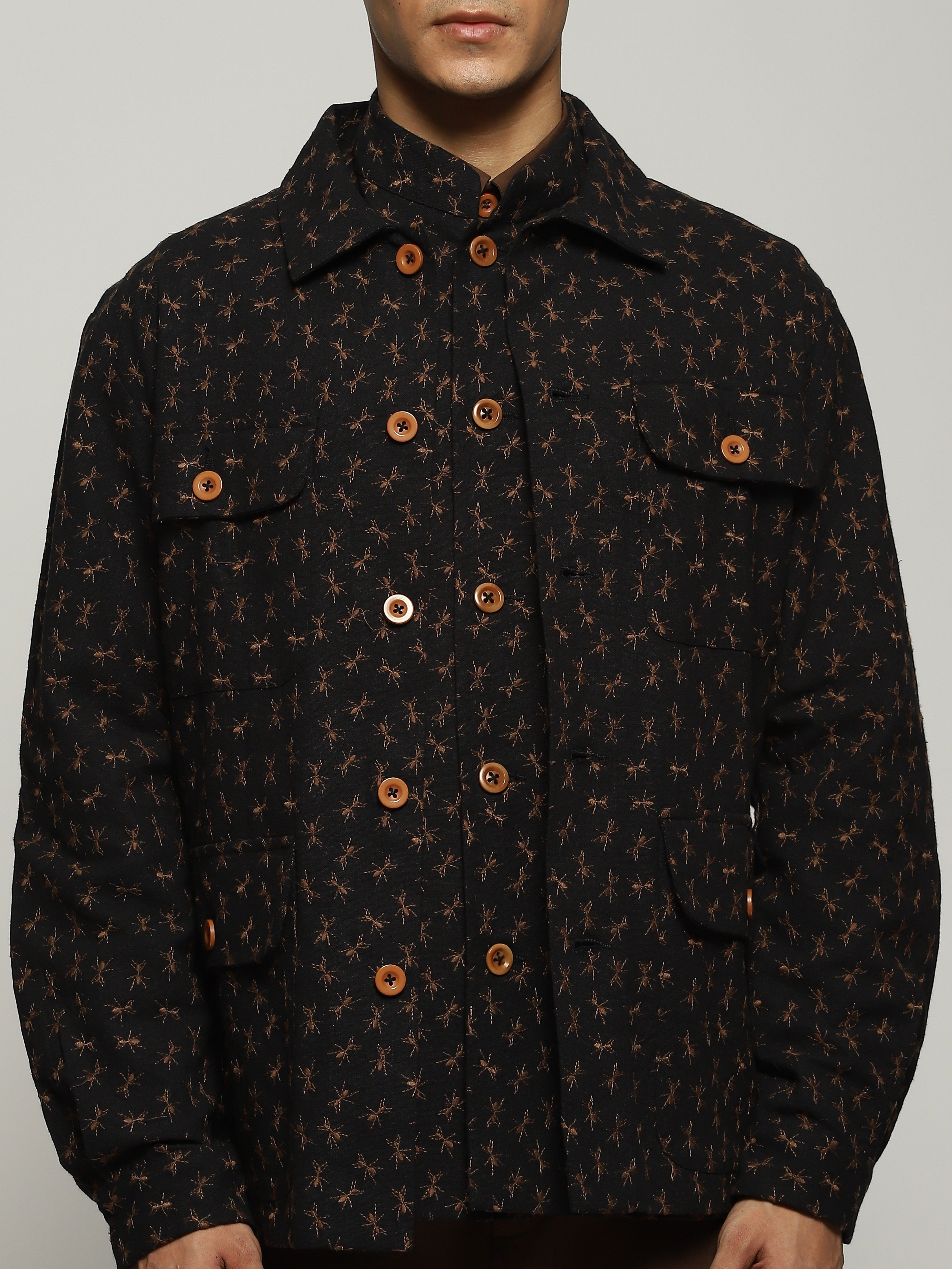 Crafted from durable organic cotton, the ant motifs on this jacket are embroidered with yarn.