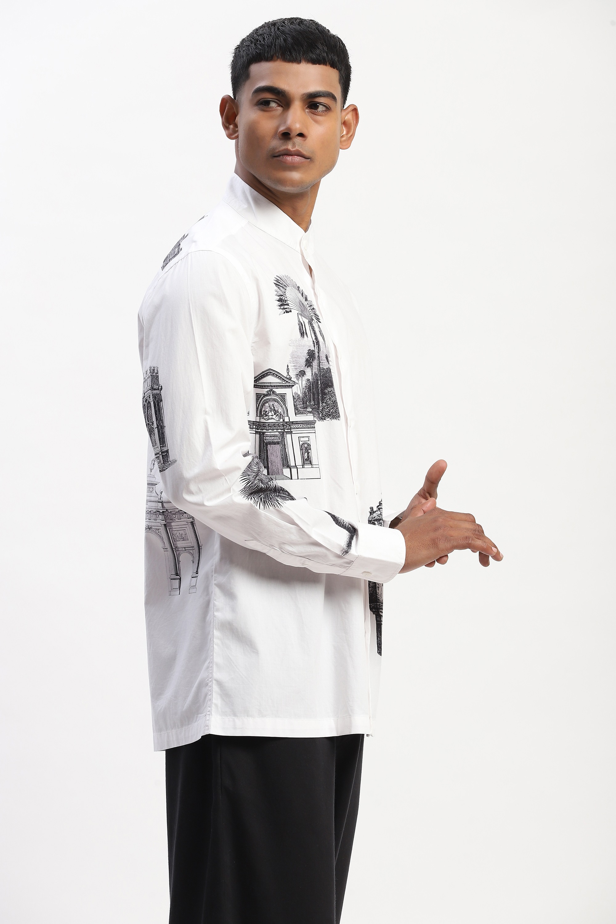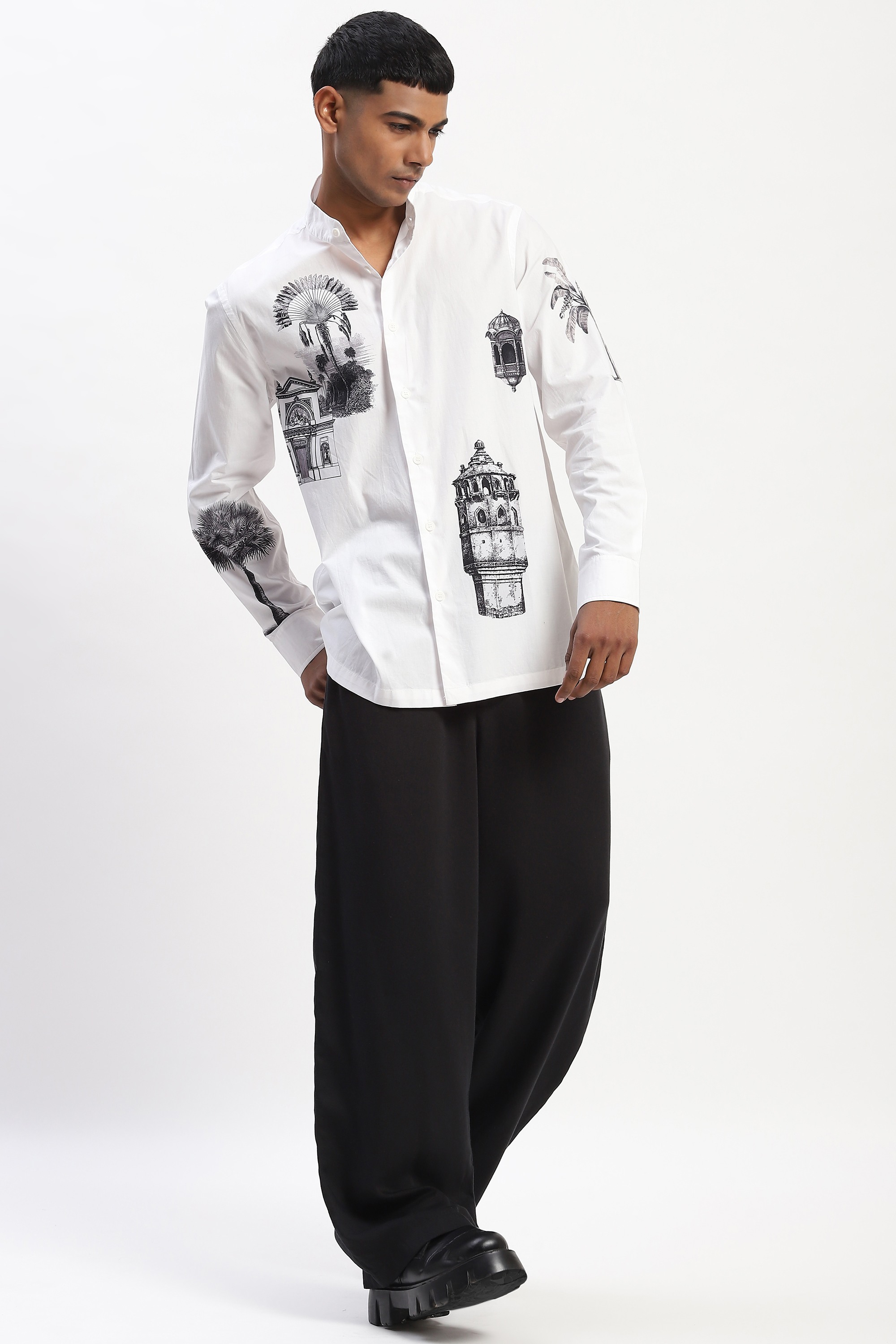 This limited edition piece has been made using fine cotton that has been printed with architectural and foliage motifs inspired from Indian miniature paintings to give it a touch of whimsy.