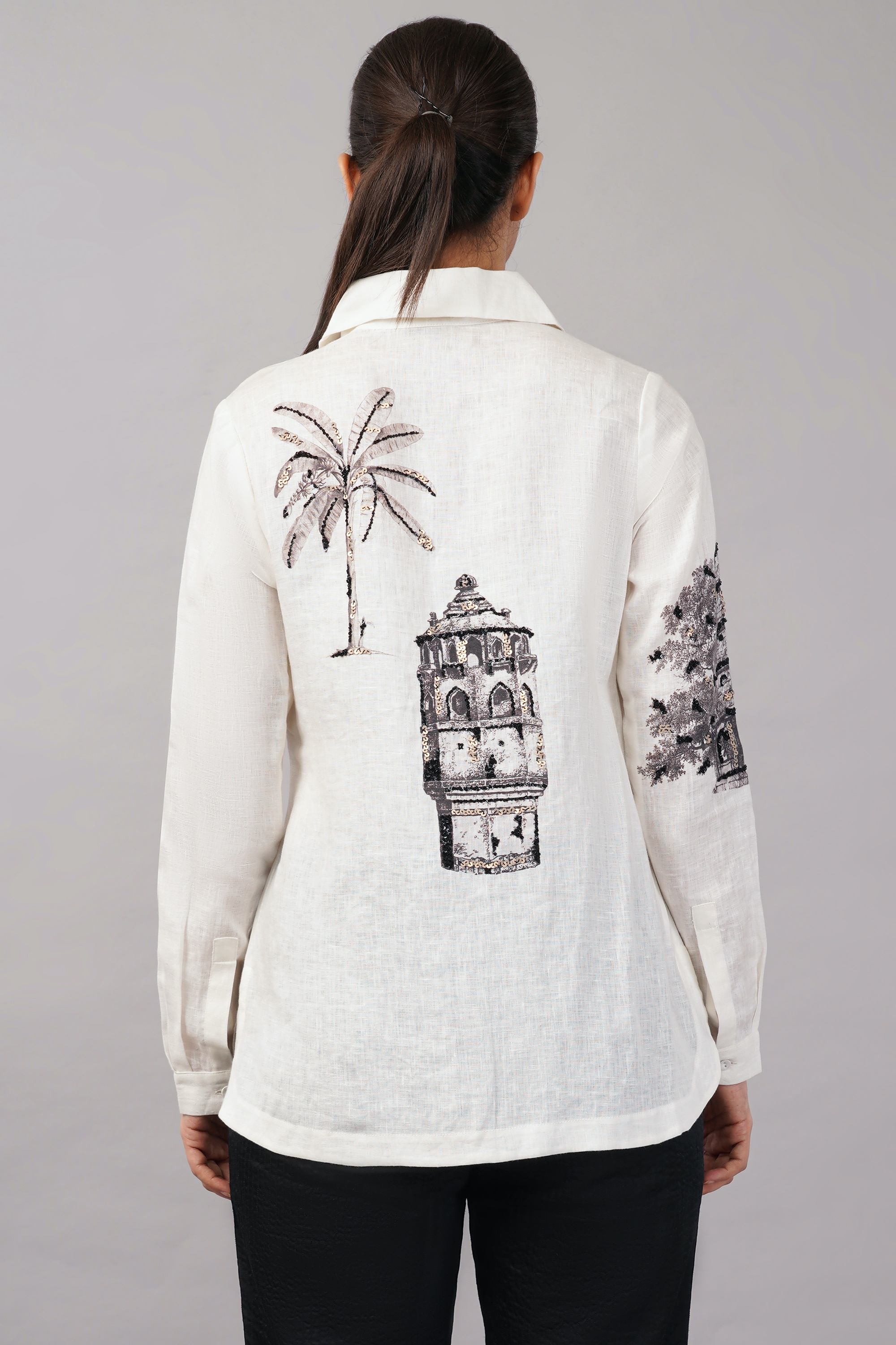 This limited edition piece has been made using a quirky placement print of monuments and miniature drawings and highlighting it with sequins.