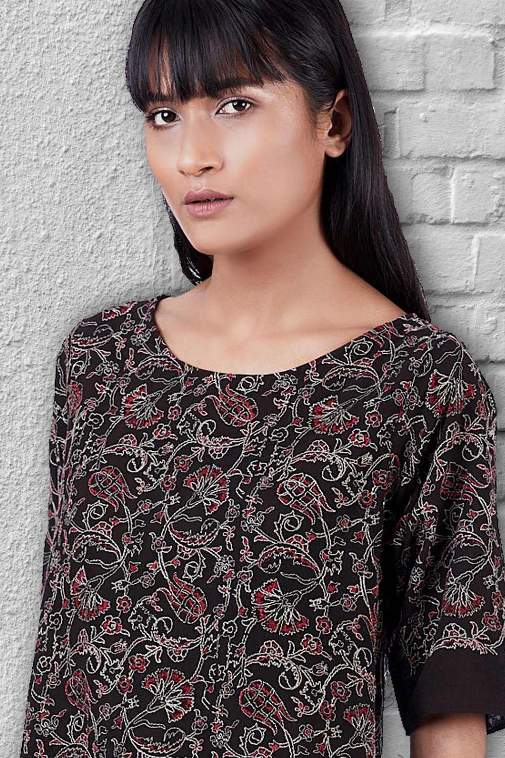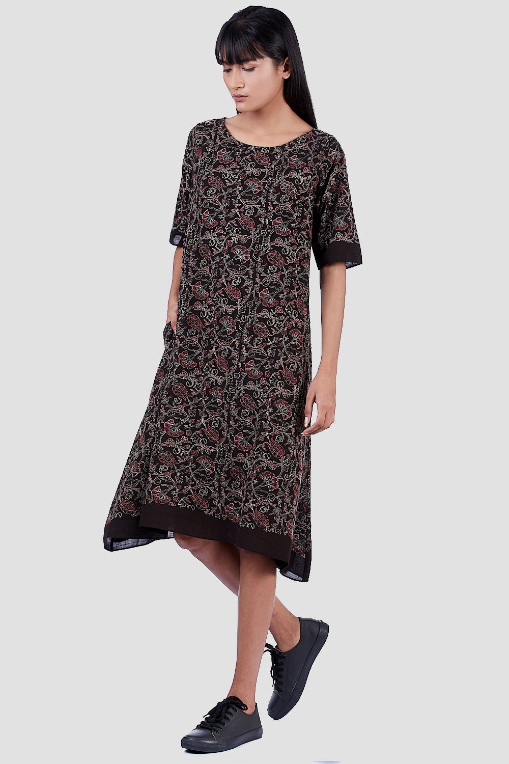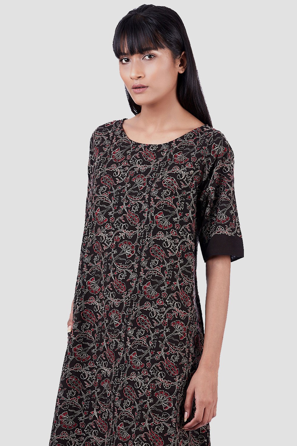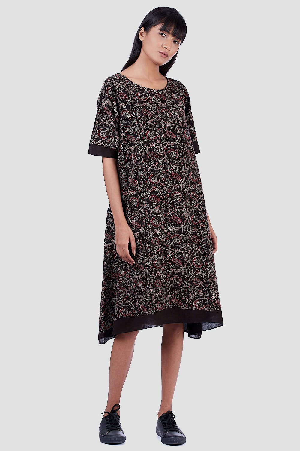 Regular Fit Kite Dress. Features All Over Kalamkari Embroidery. Garments Are Made From Fabric That Is Washed And Pre-Shrunk To Give A Superior Hand.