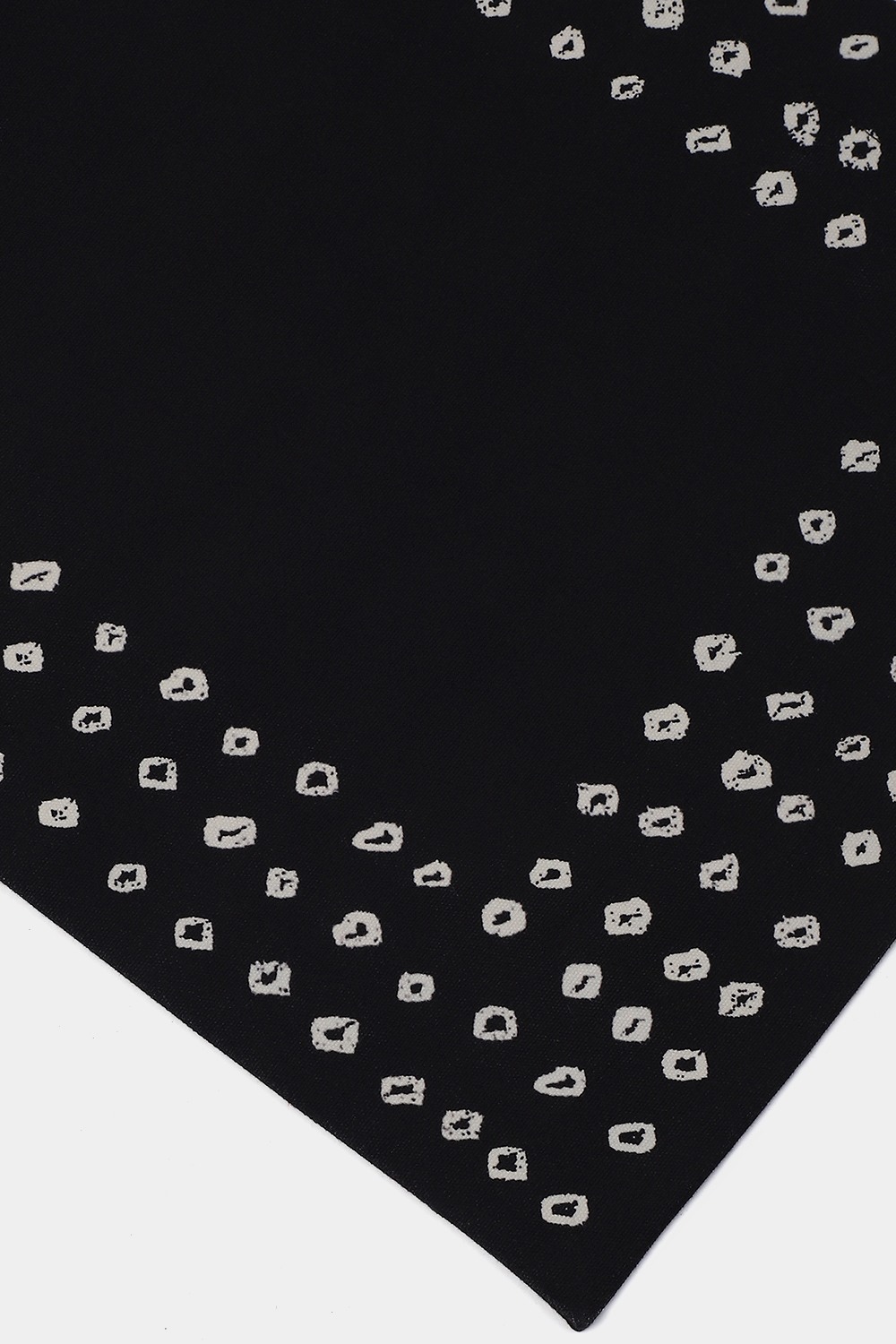 A cotton table runner marked with circular patterns in ivory on black.