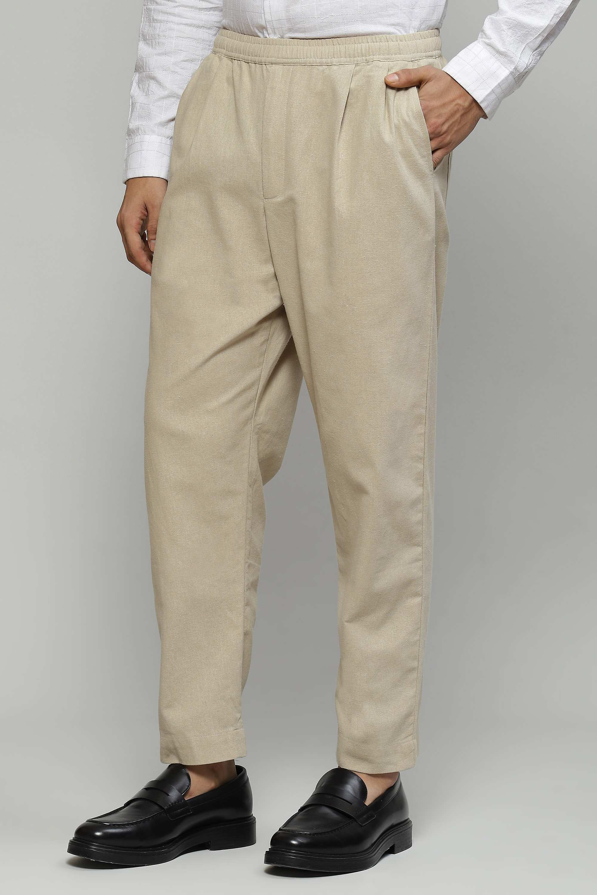 Basic beige trousers crafted in organic cotton Wear these with a crisp linen shirt