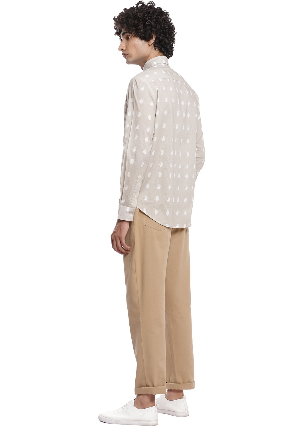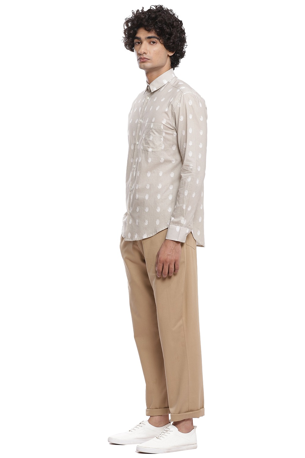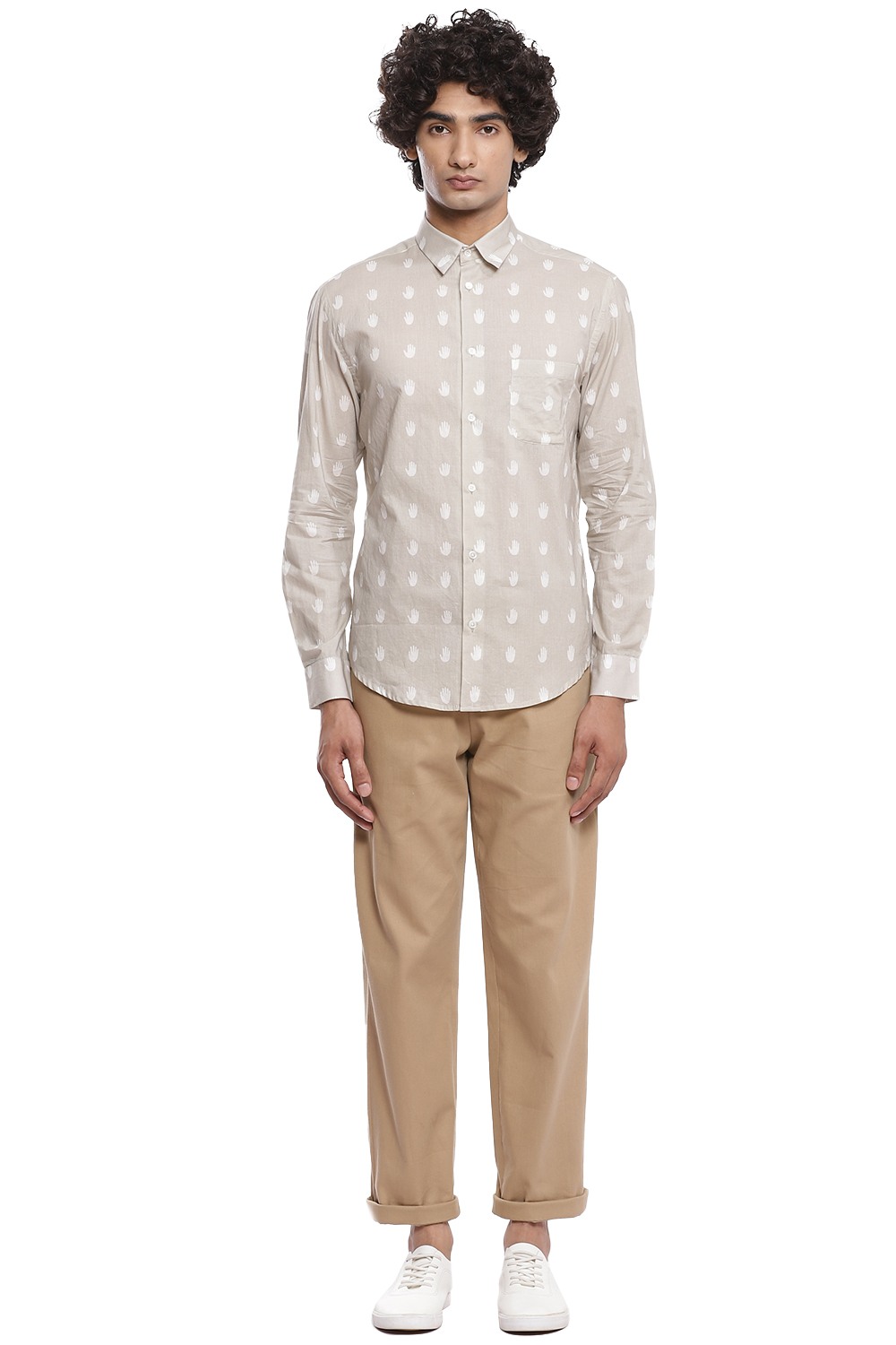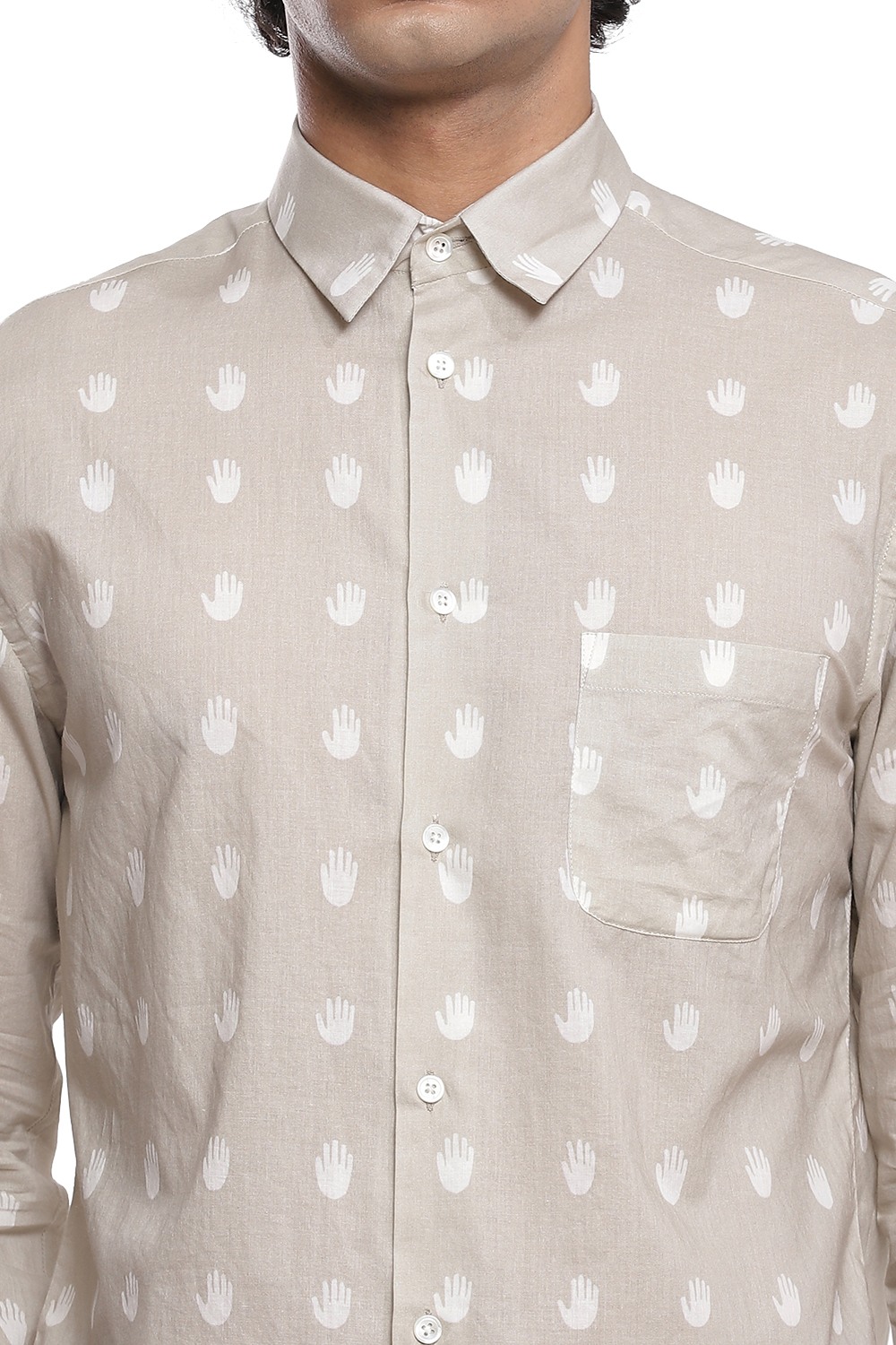 The perfect shirt with the hand as an allover printed motif, crafted from cotton cambric in ivory and beige. This shirt is cut for an easy and relaxed fit.