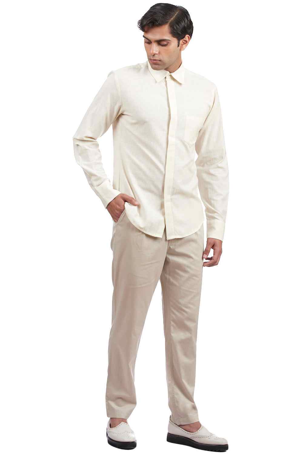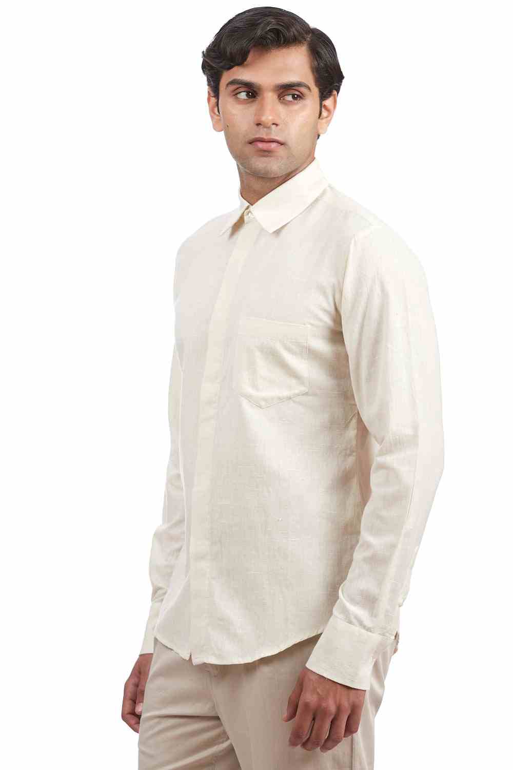Semi Formal Slim Fit Shirt. Crafted In Lightweight Handwoven Slubbed Bengal Cotton Fabric. Features Regular Shirt Collar And Concealed Button Placket With Our Signature Fit.