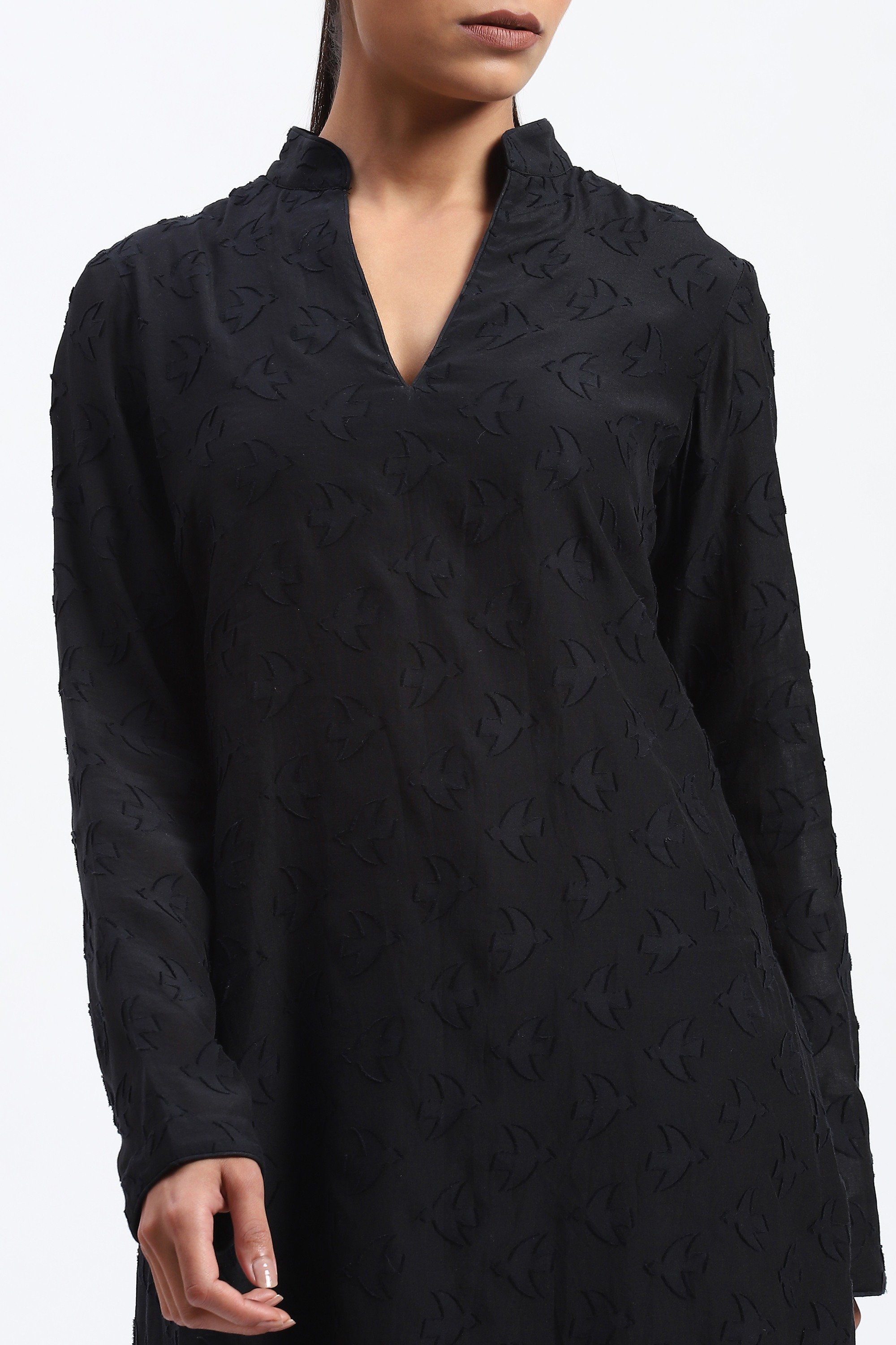 This limited edition piece has been made using a specially woven handwoven silk x cotton cutwork fabric with an all over abstract bird motifs inspired from tribal art.