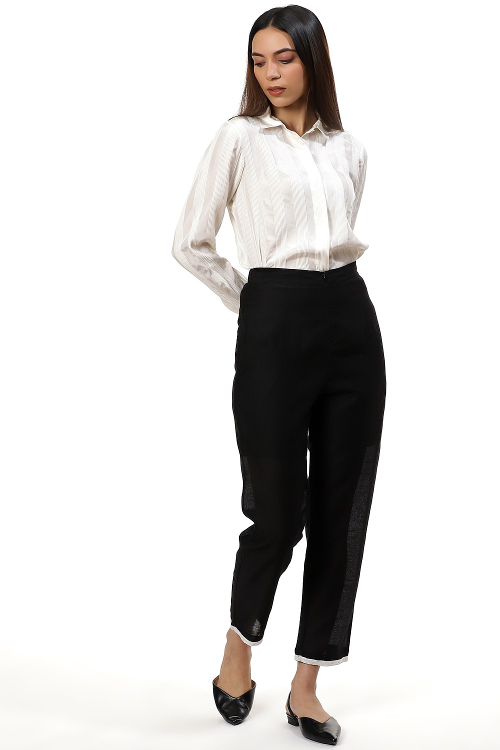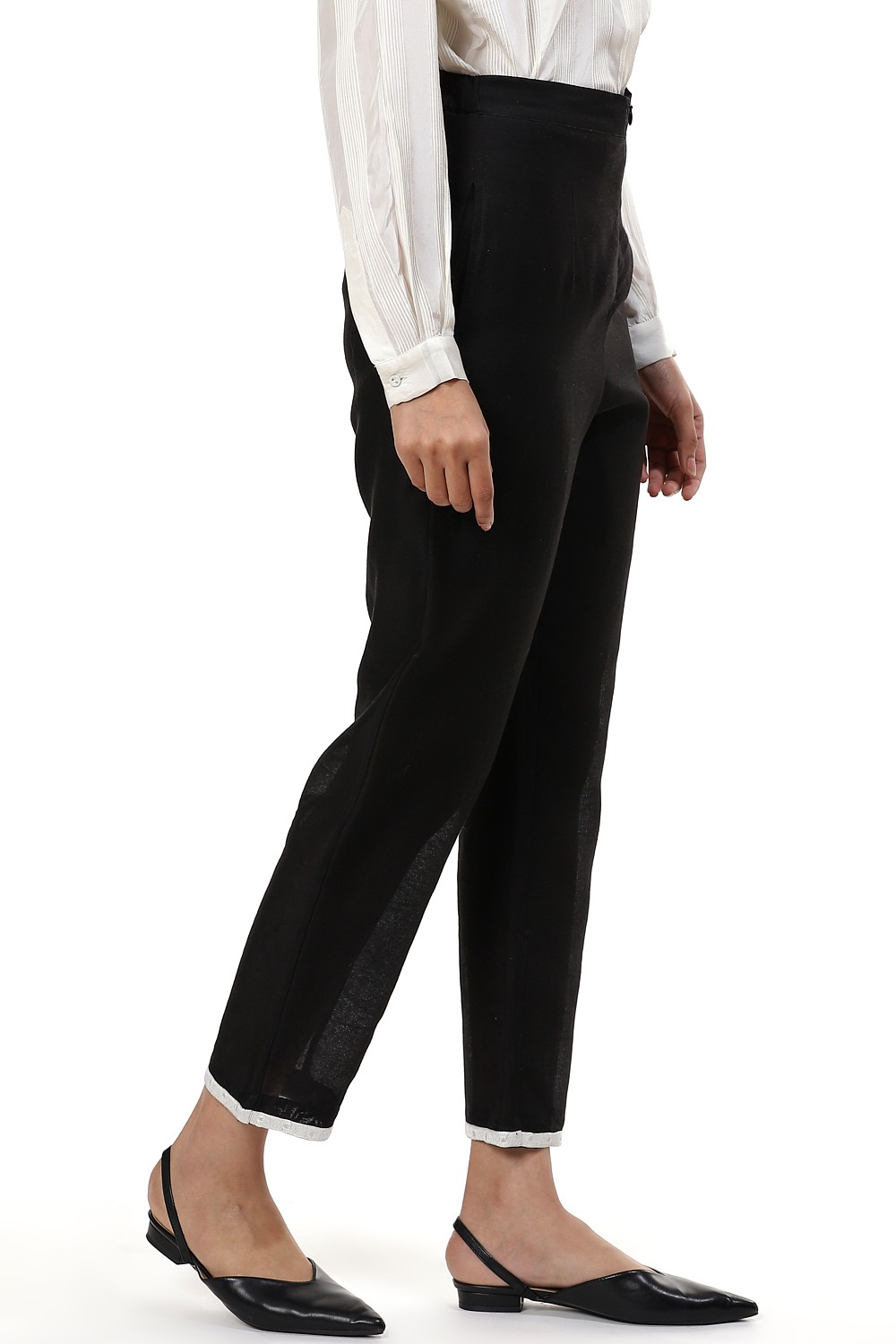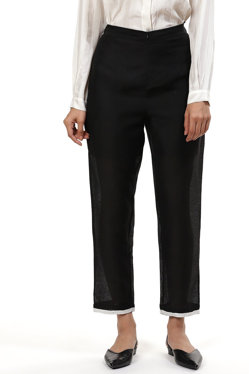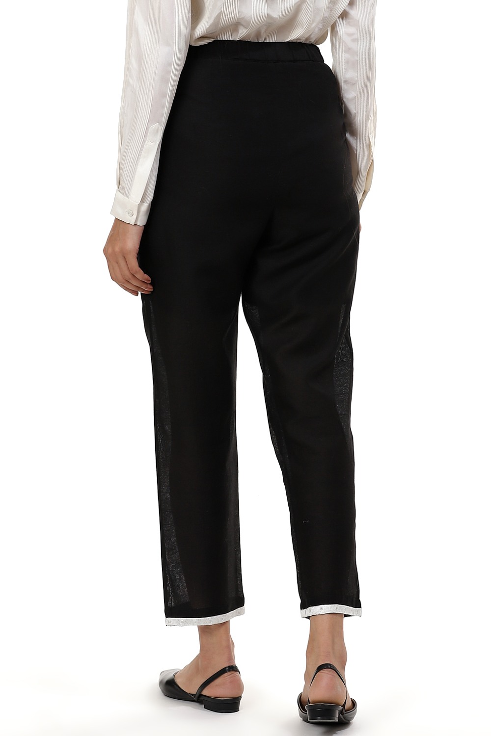 An easy and comfortable pair of straight leg pants, crafted from silk cotton fabric, with a narrow embroidered border on the hem. Wear yours with an oversized white shirt to lunch or a black shirt with strappy heels to a party.