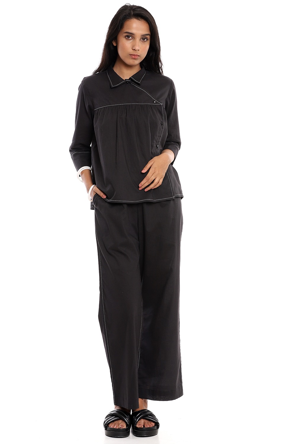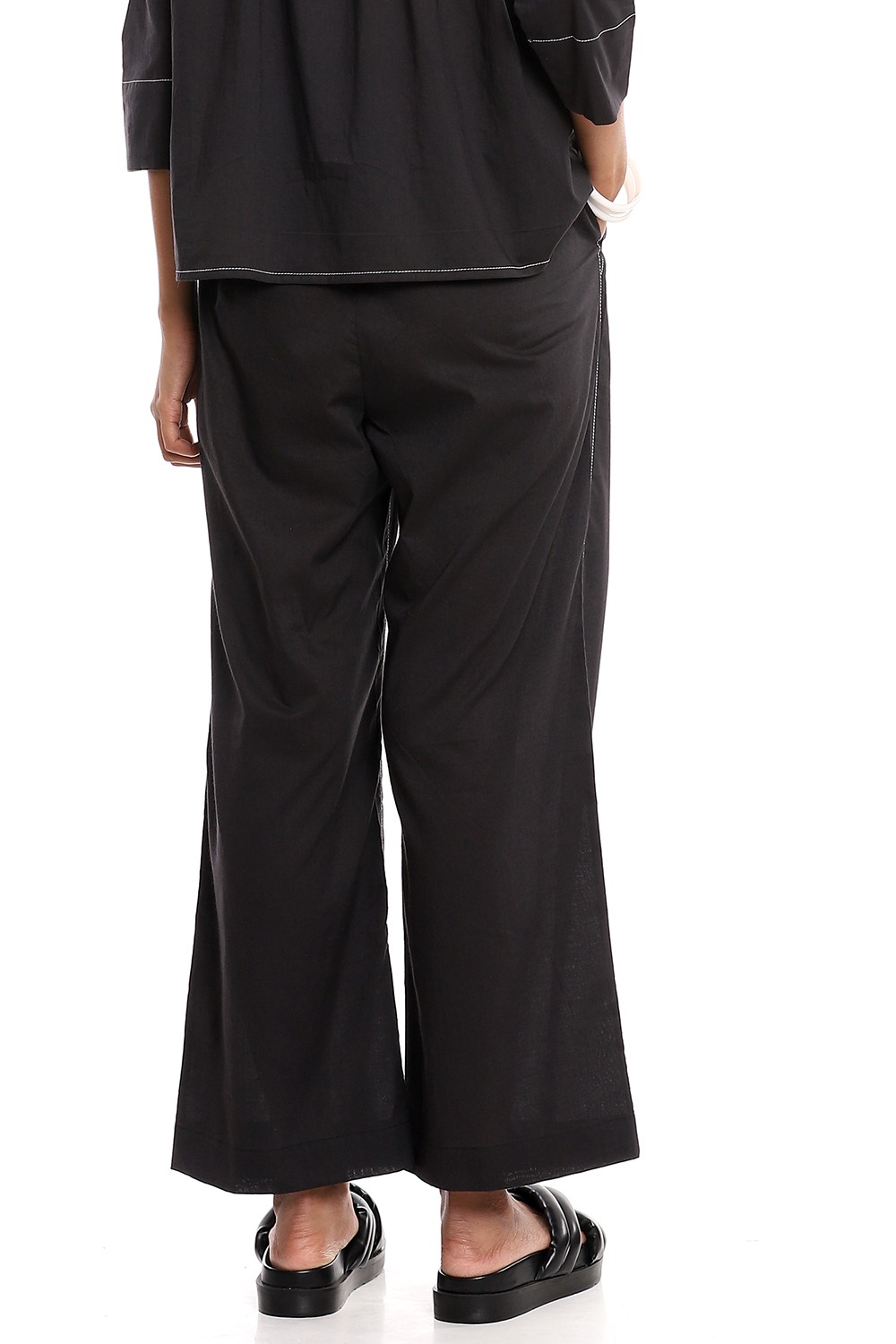 Black Cotton Wide Leg Pants