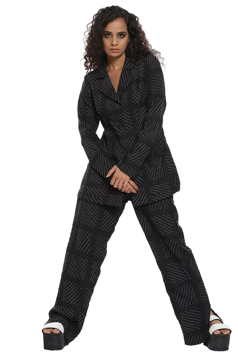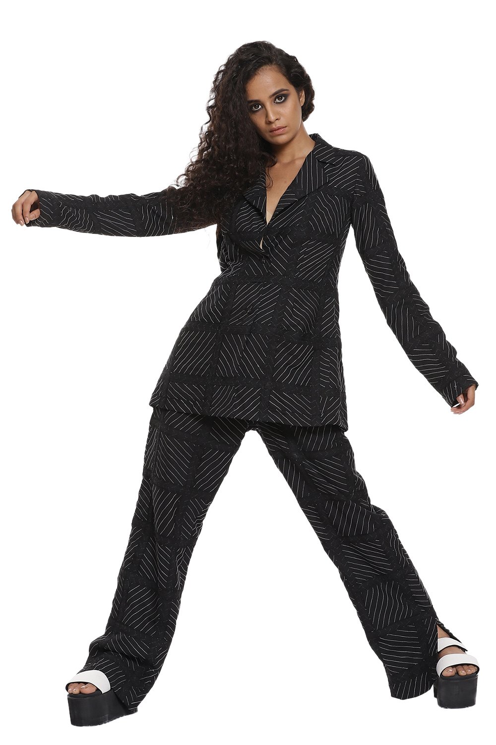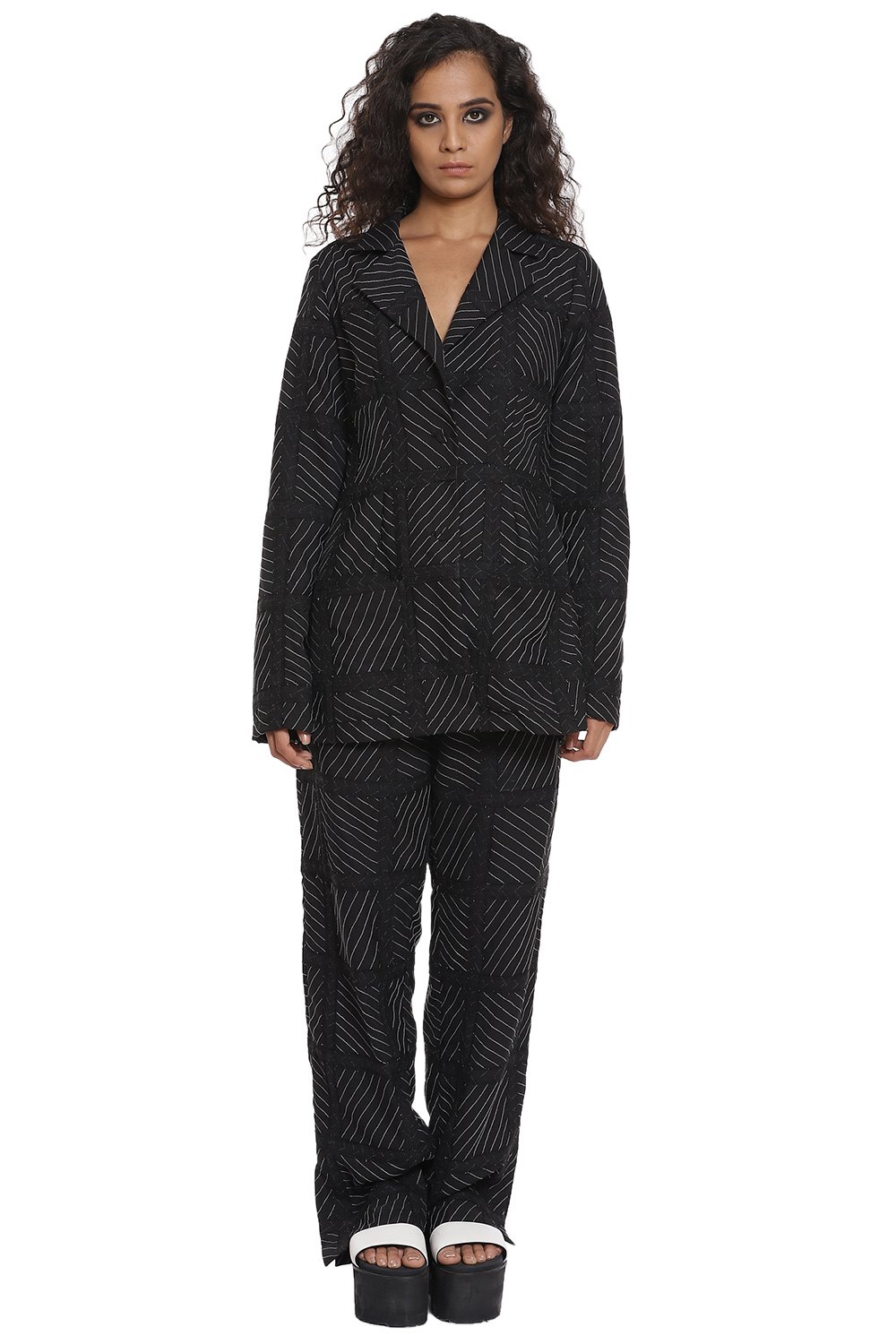 Black patchwork suit set