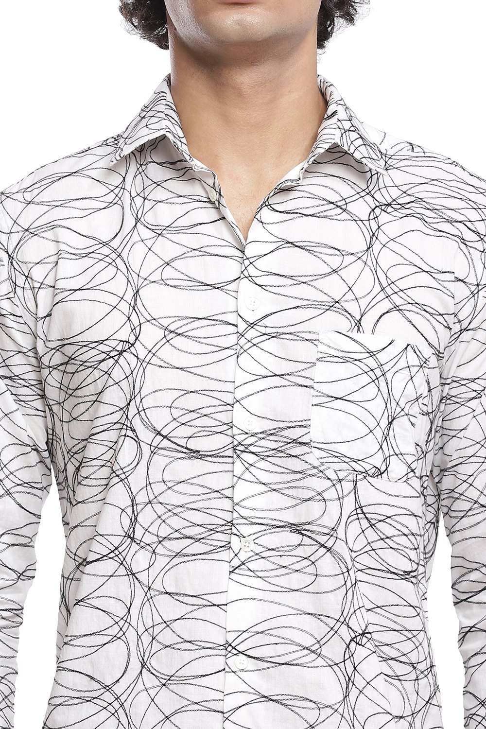 Squiggle Embroidered Cotton Shirt