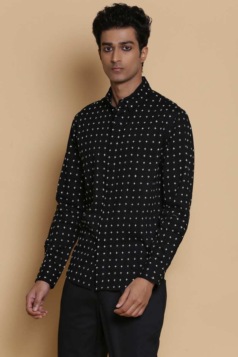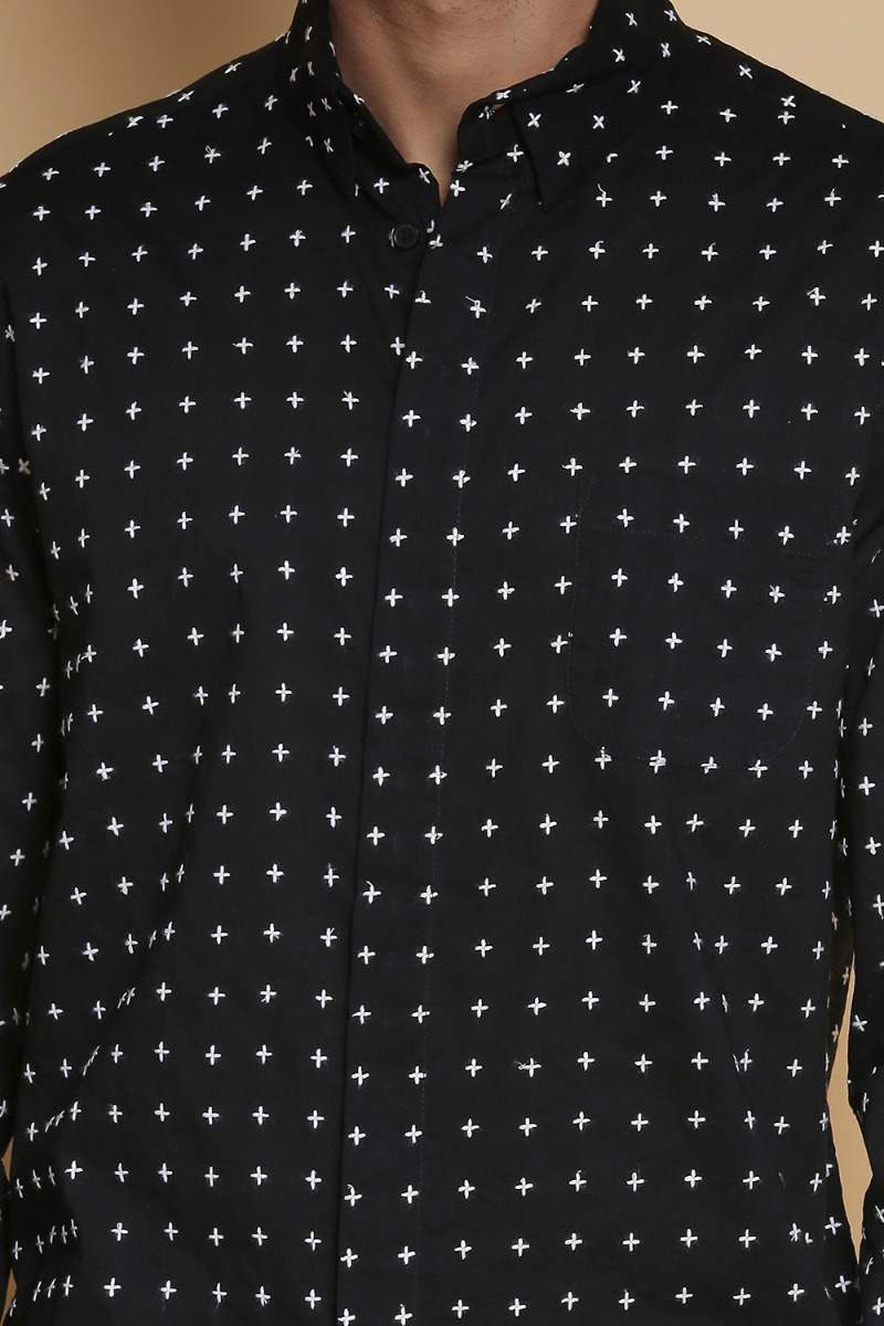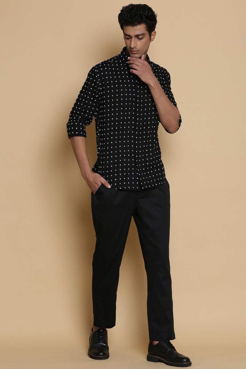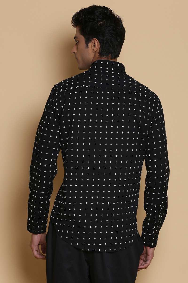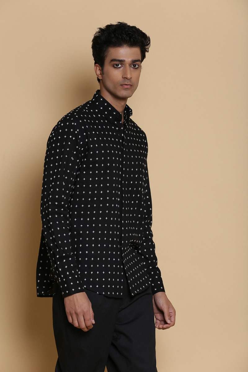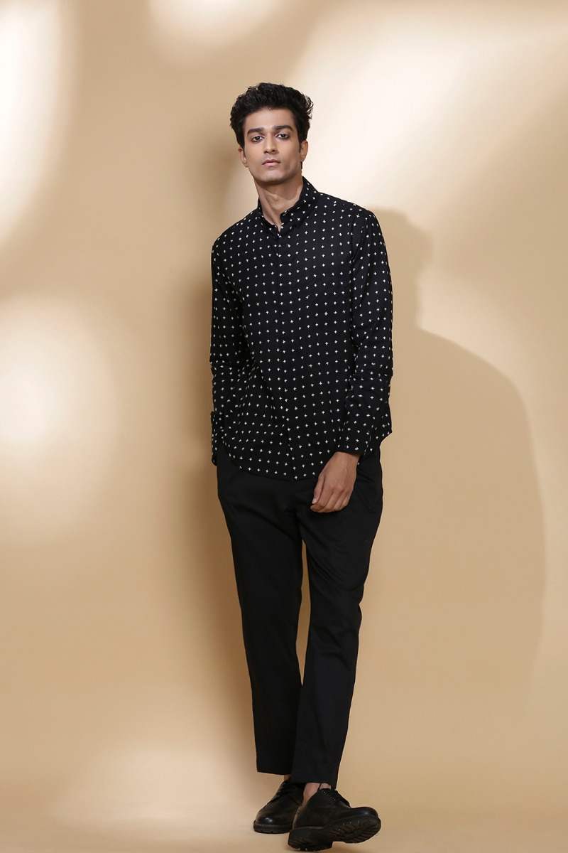 Black Star Stitch Embroidered Cotton Shirt
