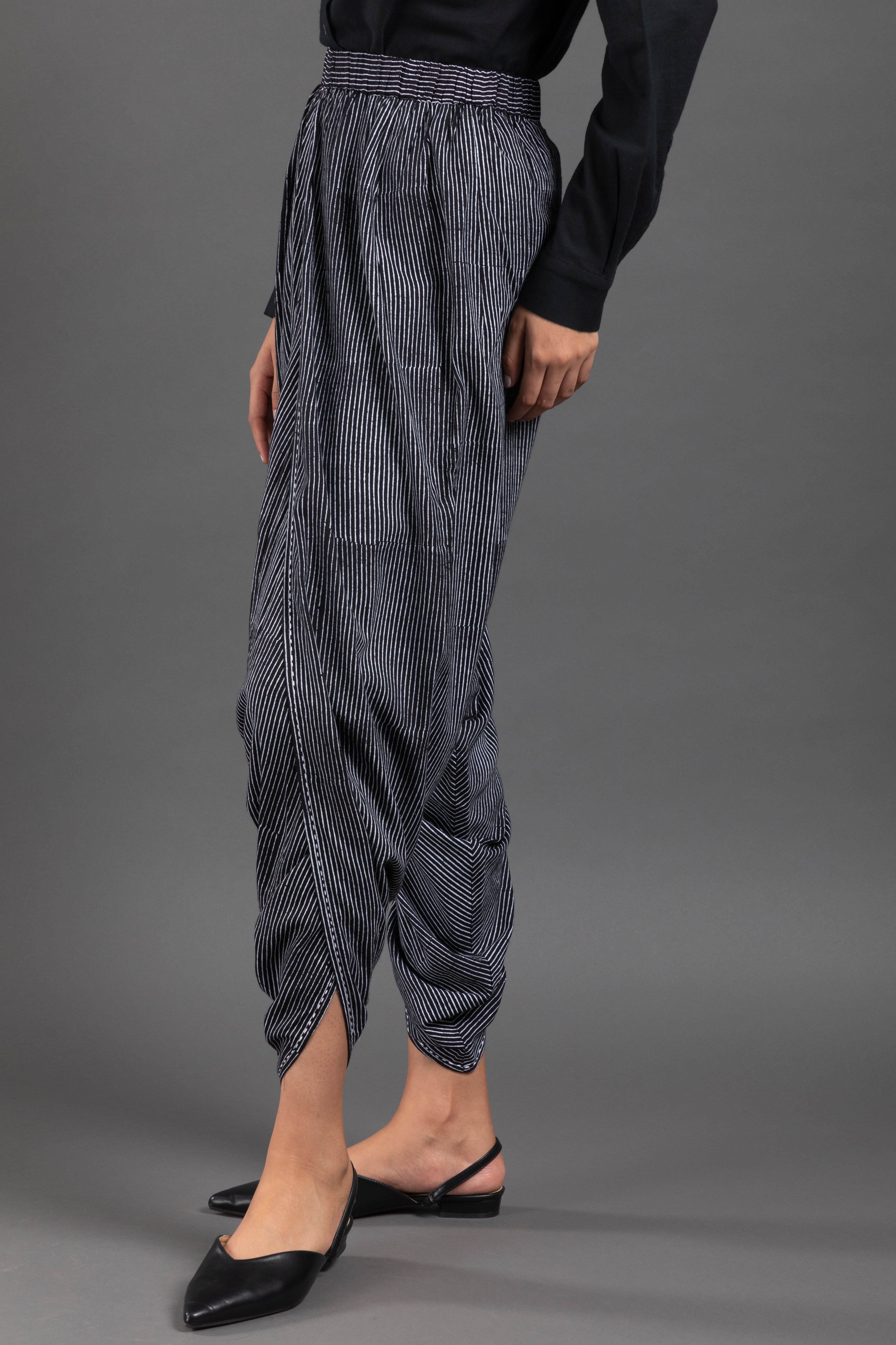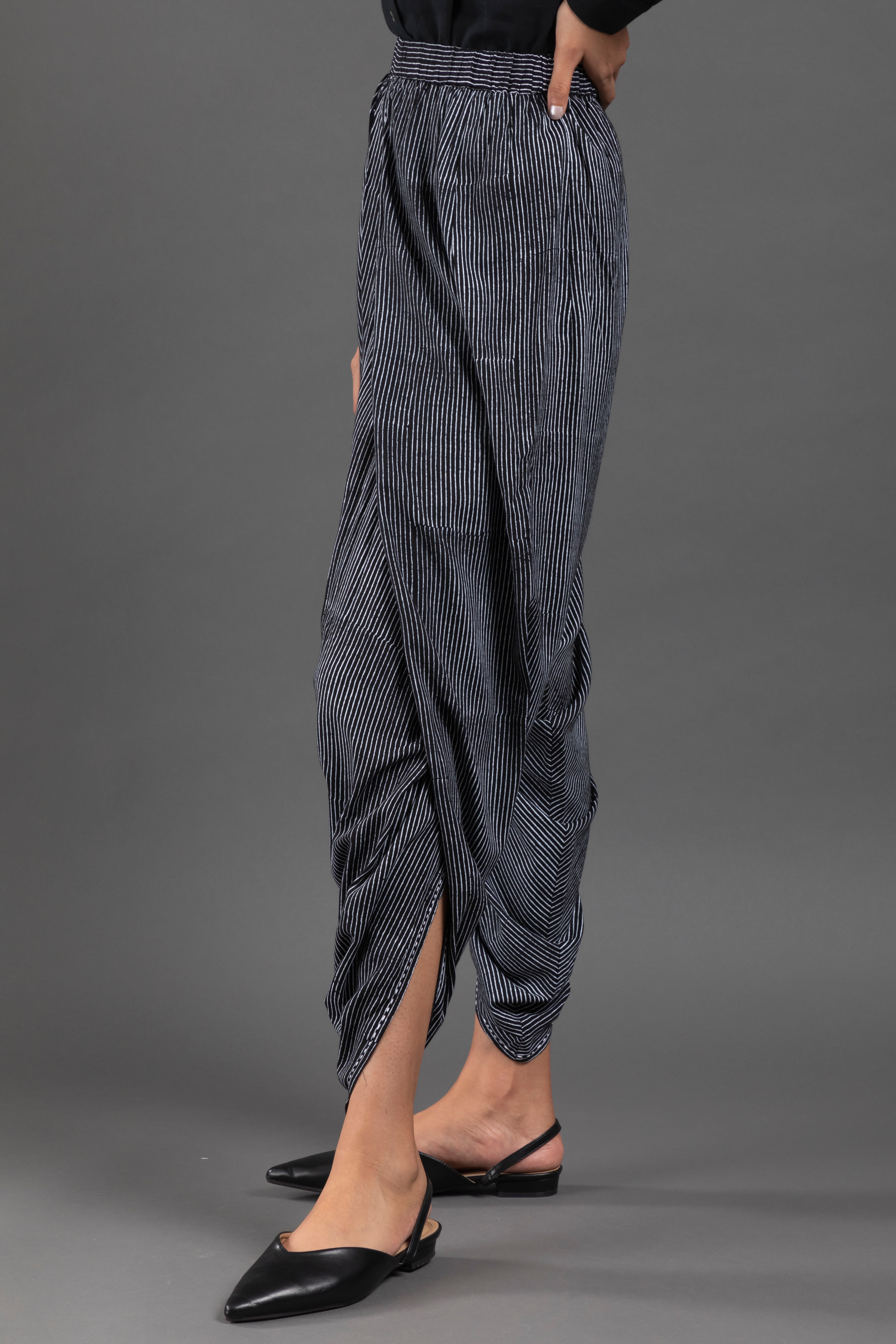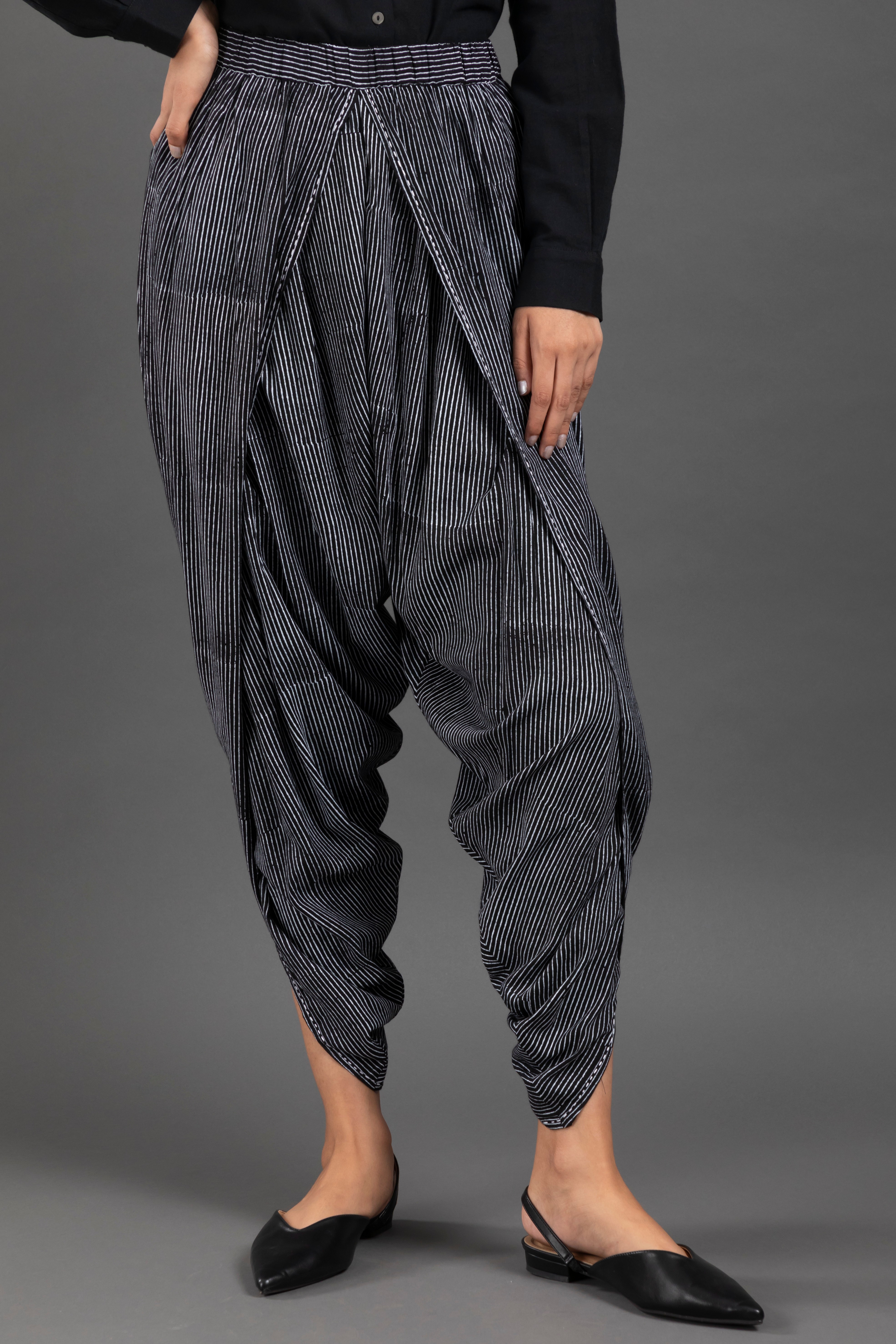 Regular-Fit Dhoti Pant. Stripe Block Print And With Hand Kantha Pant.