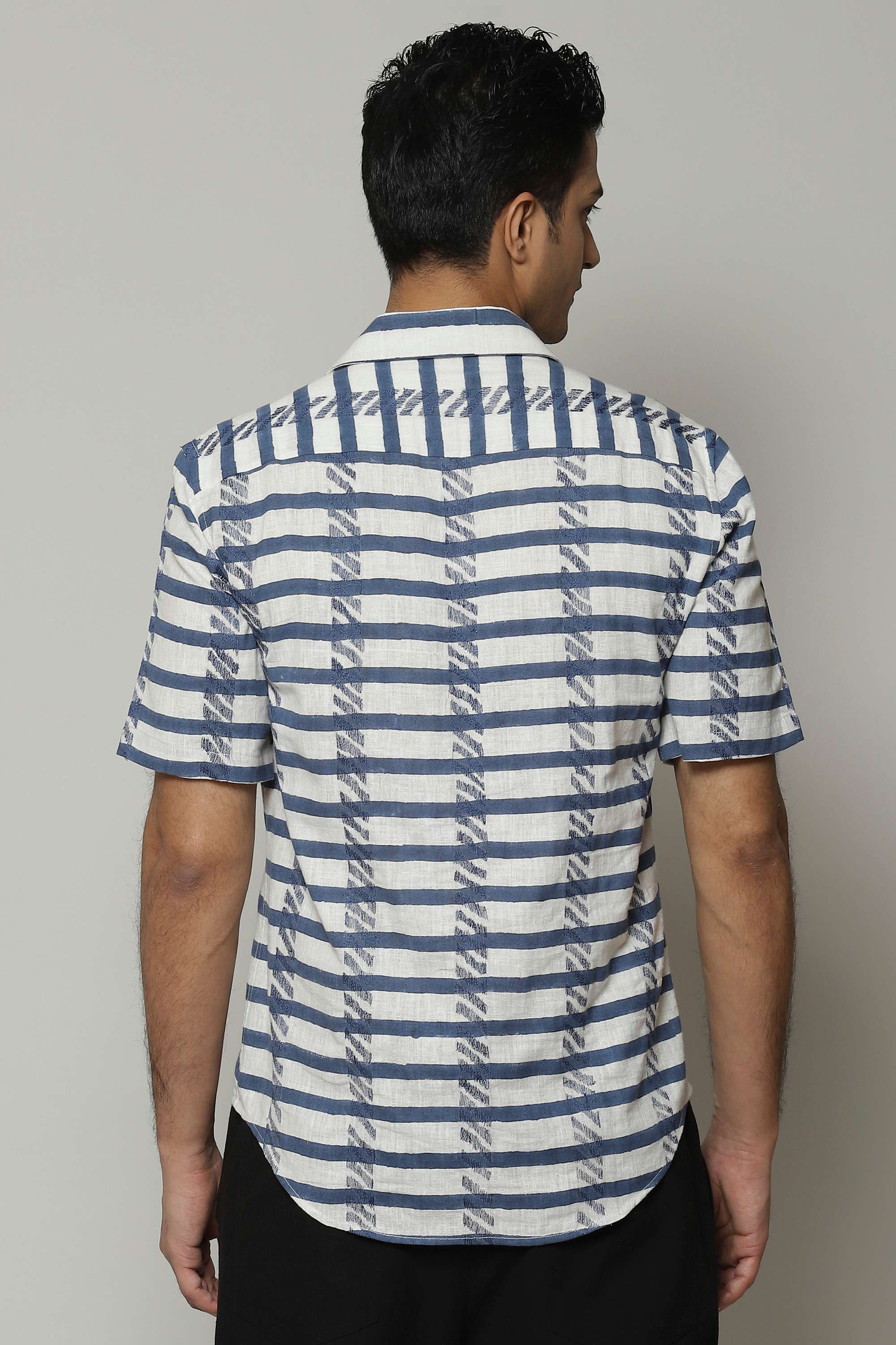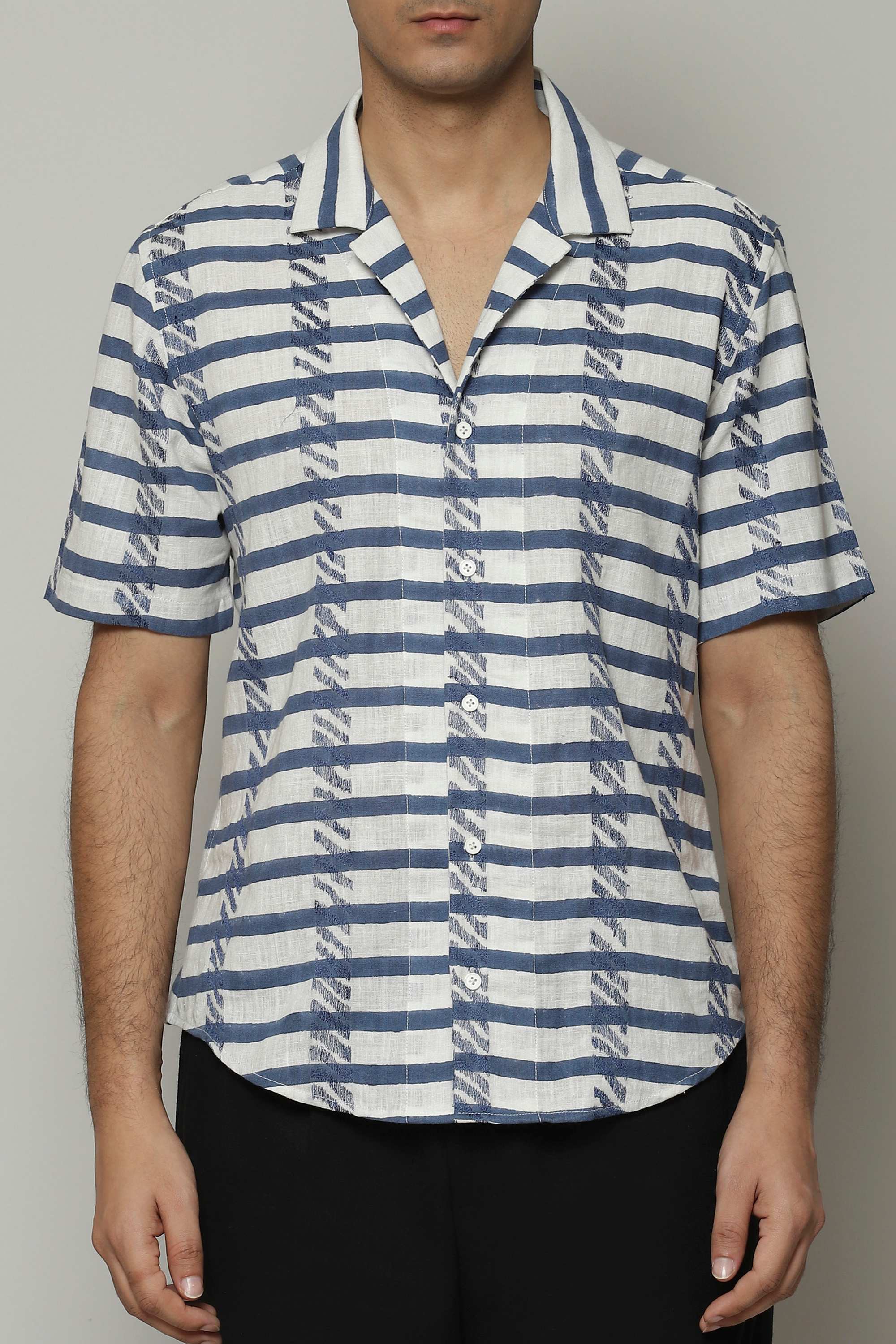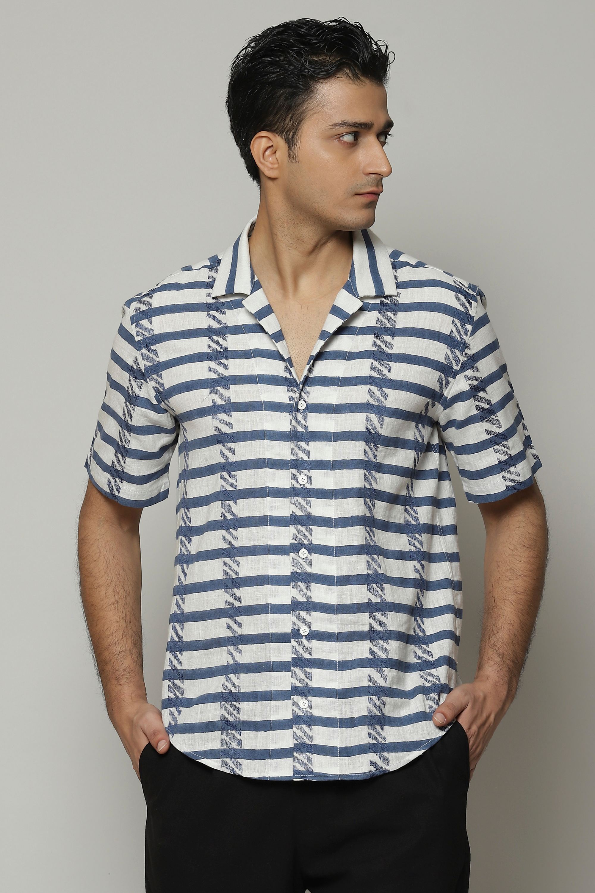 A classic cut shirt plays with bold, zebra patterns block-printed by hand. The embroidery is inspired by the pattern the weave creates. Crafted in 100% cotton, this shirt is equal parts breathable and durable. Perfect for a lazy brunch that folds into another urban adventure.