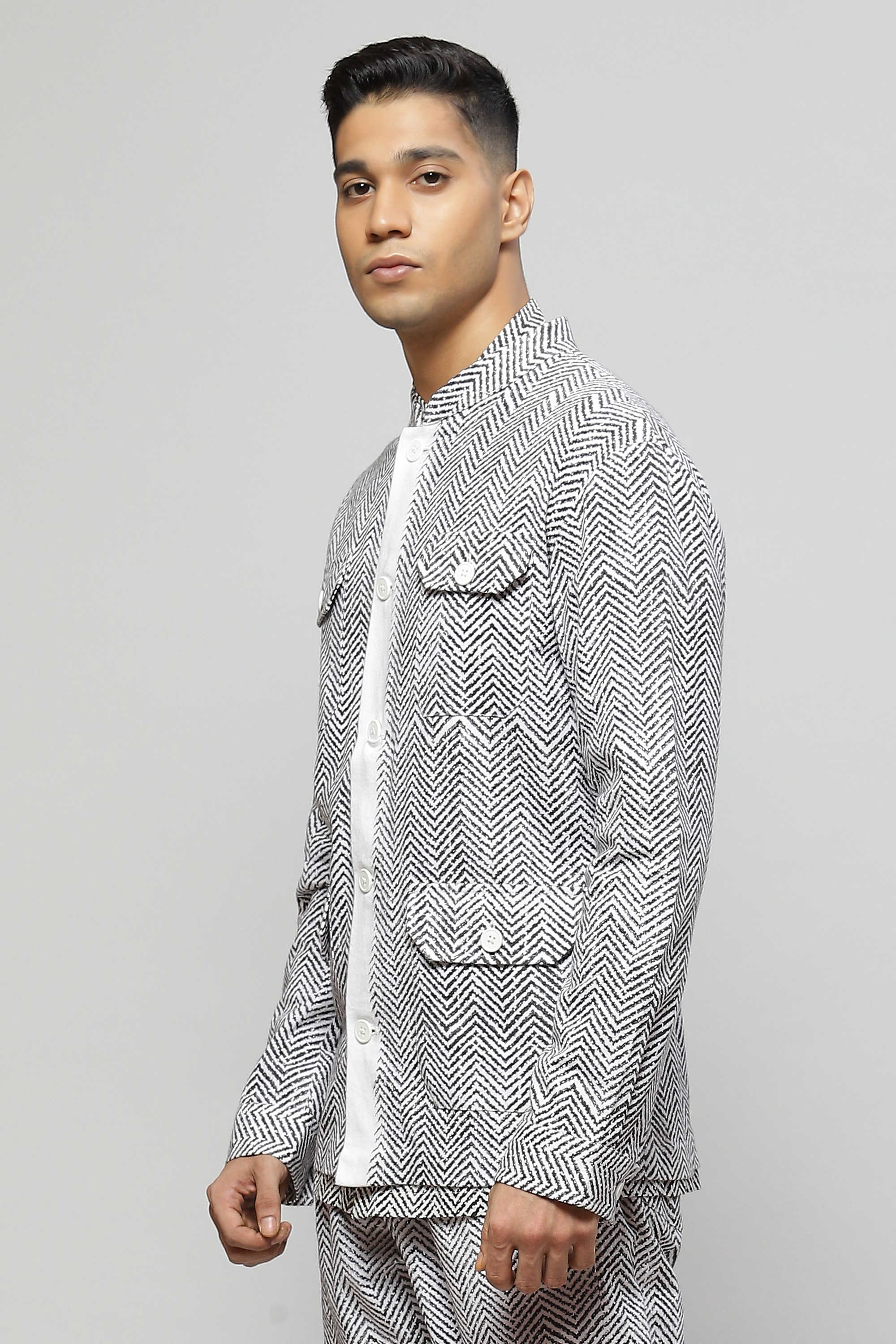 Block Printed Herringbone Jacket