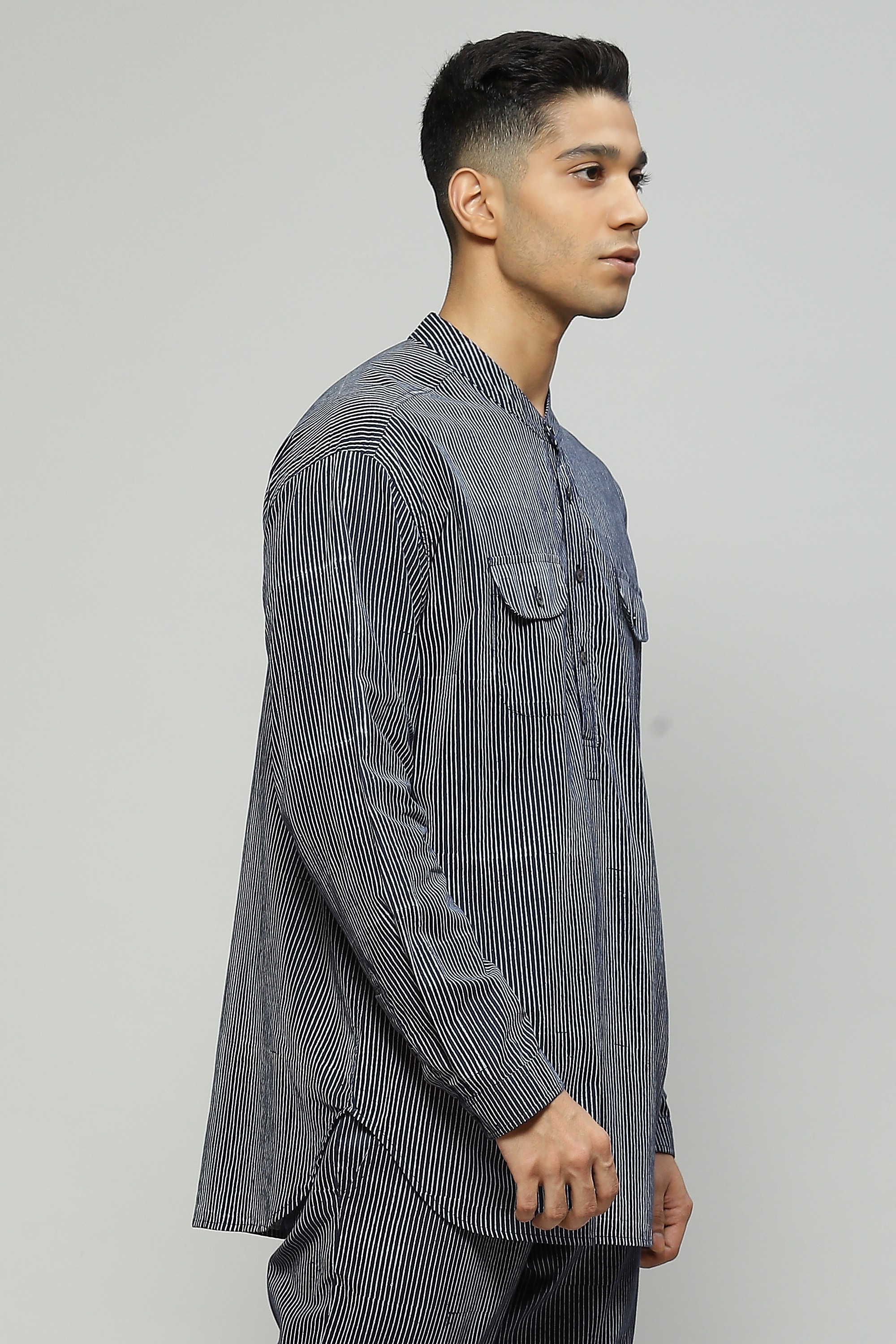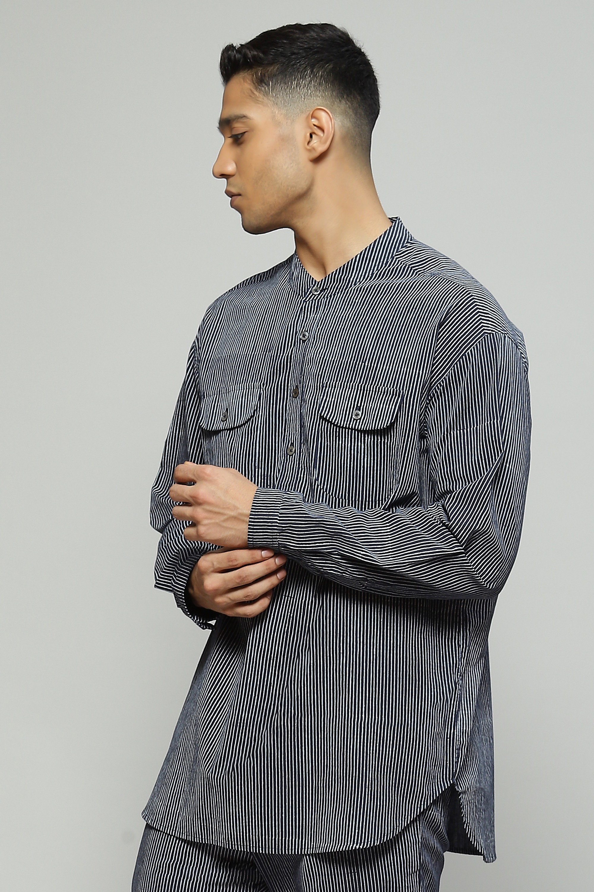 Crafted in cambric, the shirt-like silhouette makes for a modern option