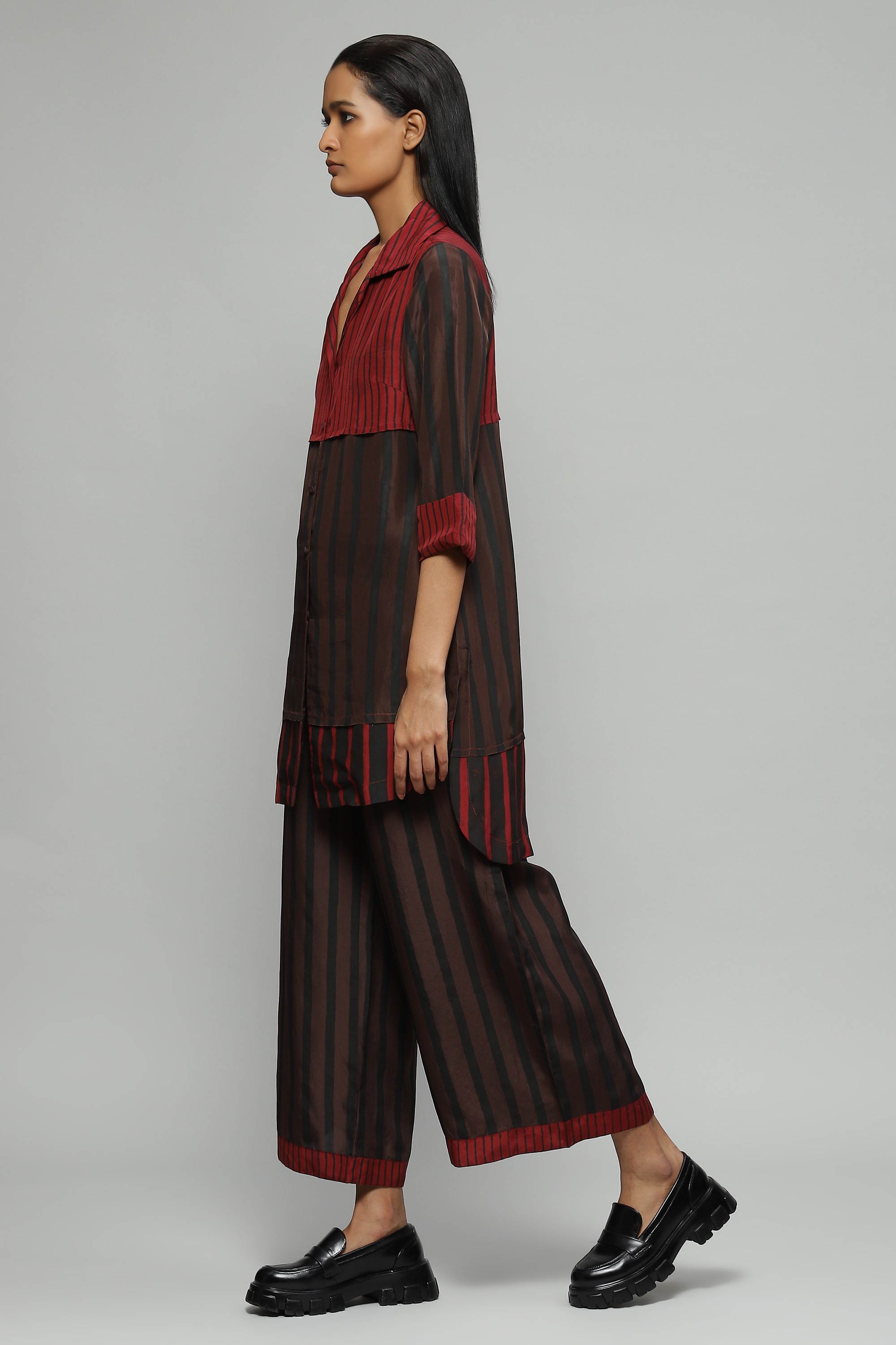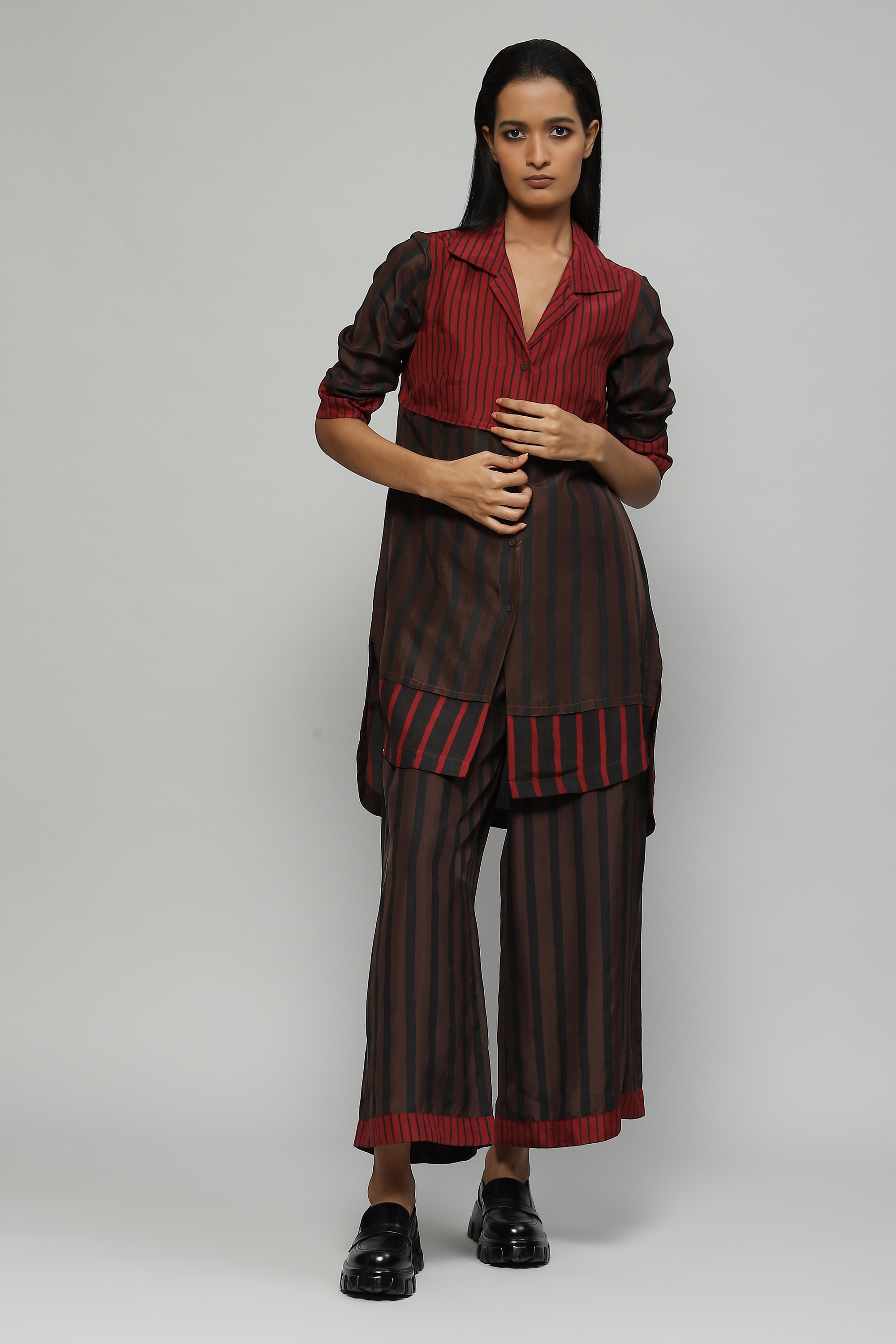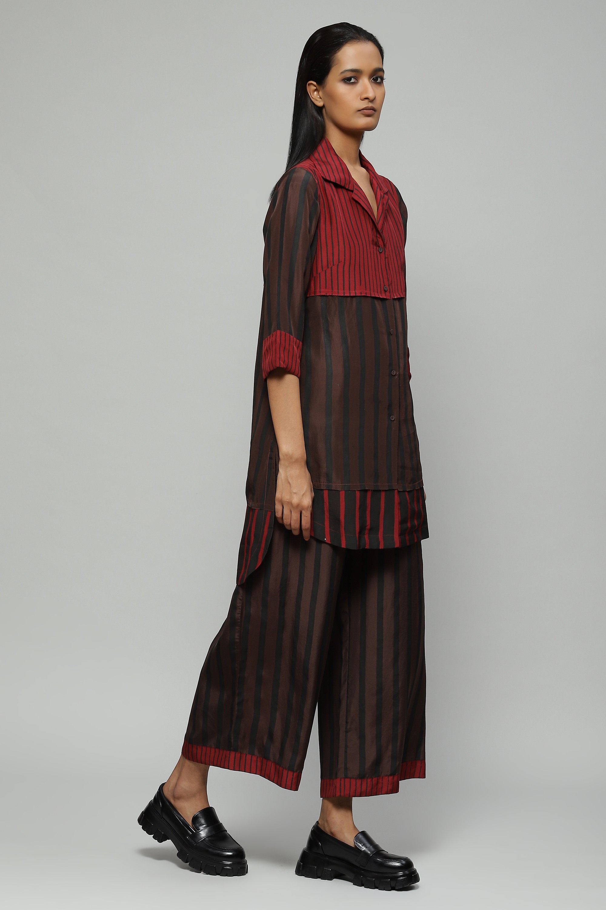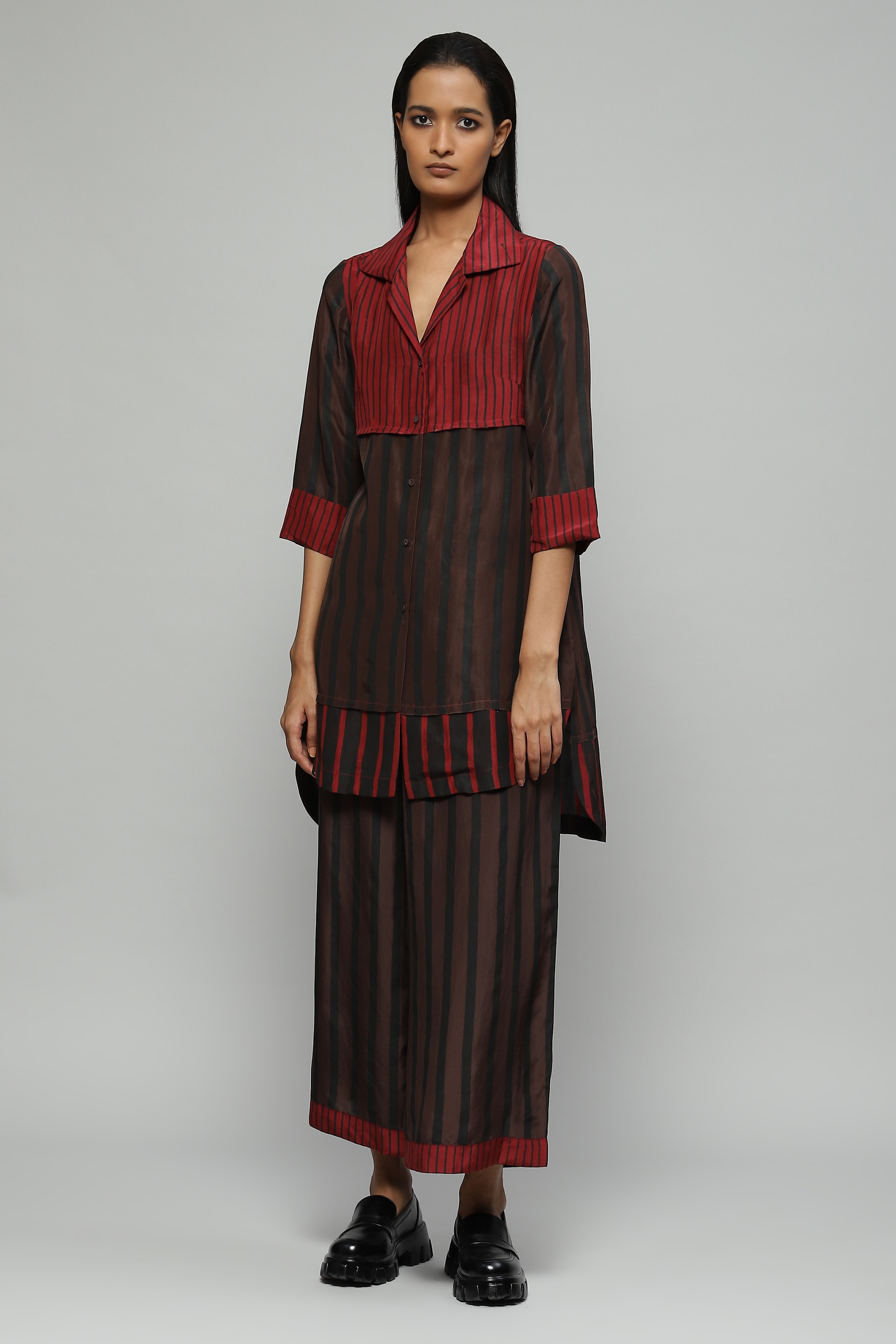The wonderful contrast of stripes and patchwork patterns crafted onto luxe silk exudes timelessness in design