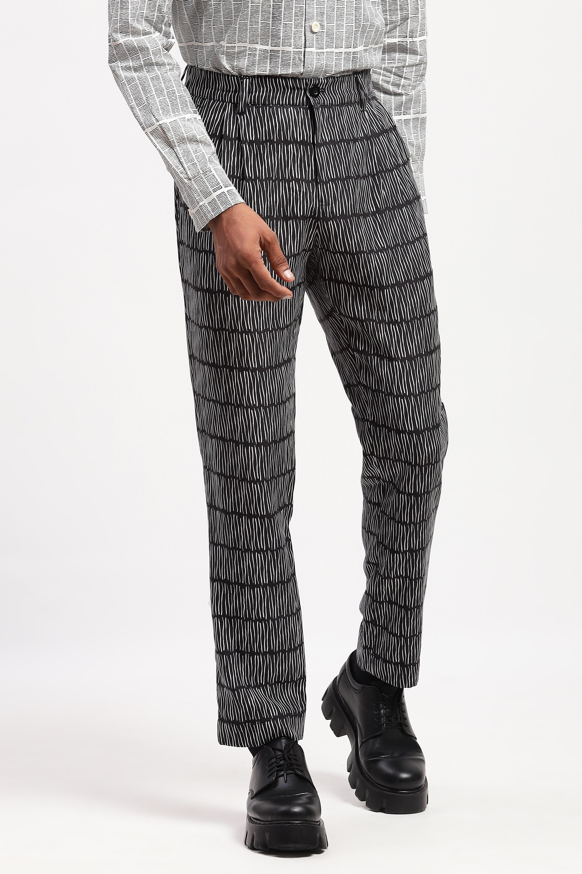 Crafted in viscose twill, this pair of black black trousers is printed with wanton scribbles.