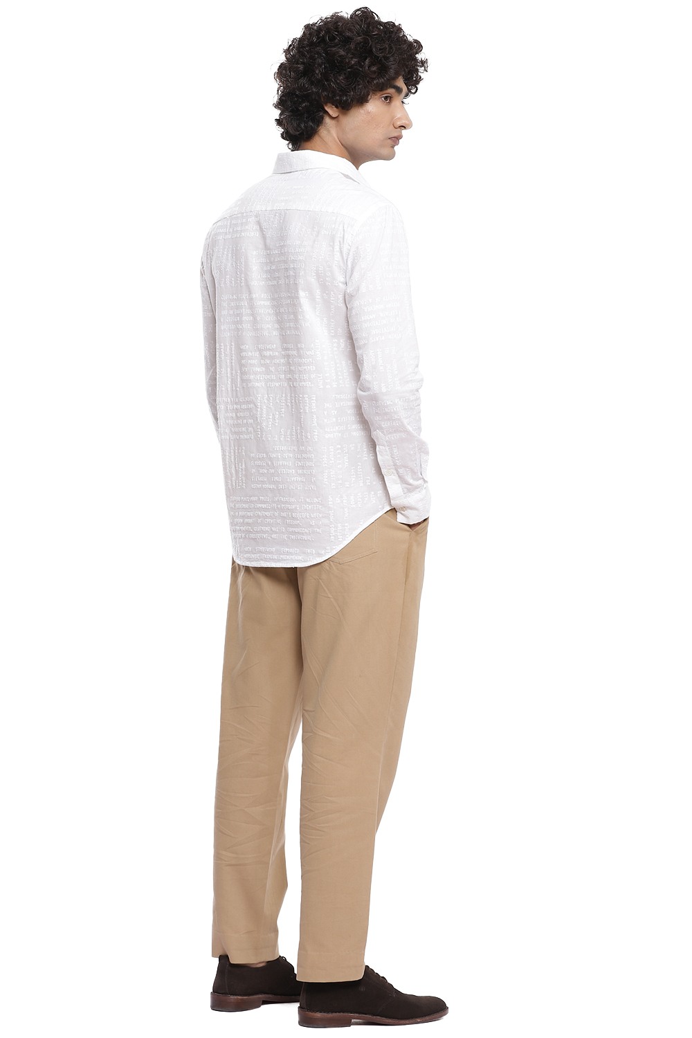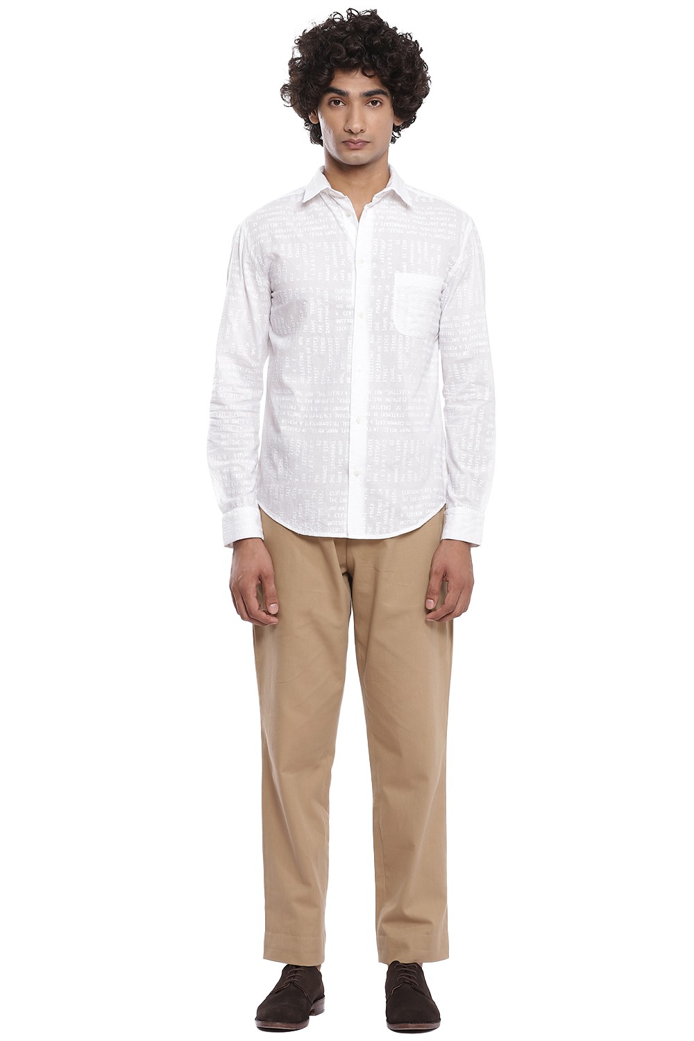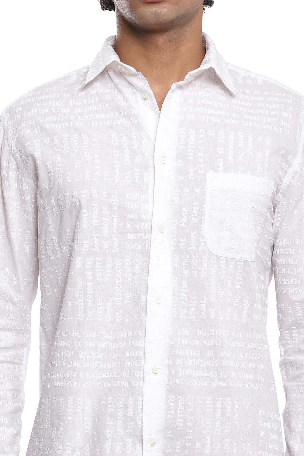 Typography embroidered shirt ivory on ivory, crafted on cotton cambric, cut for an easy and comfortable fit.