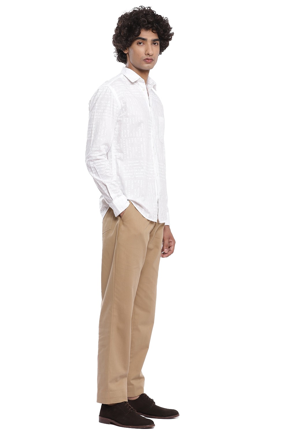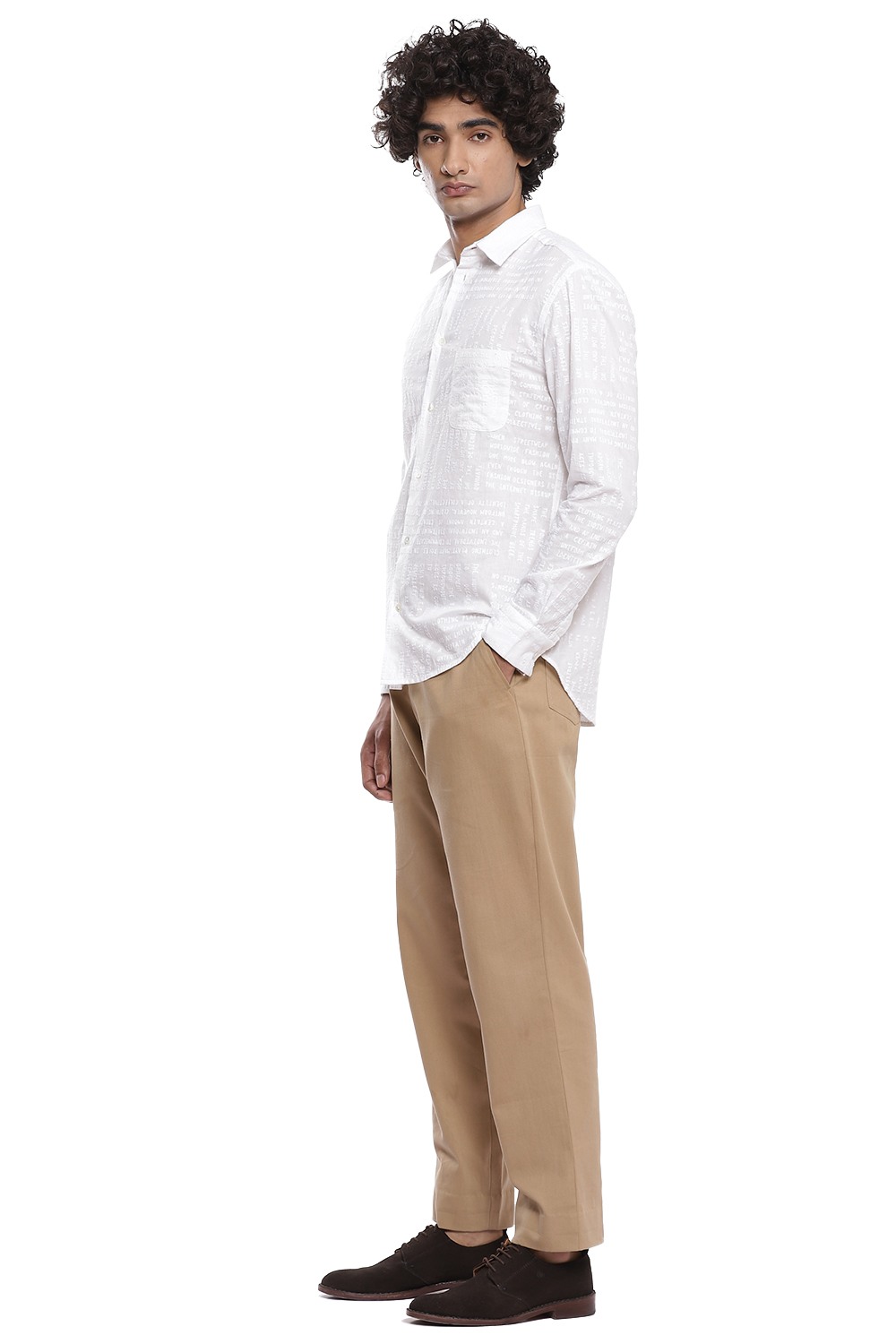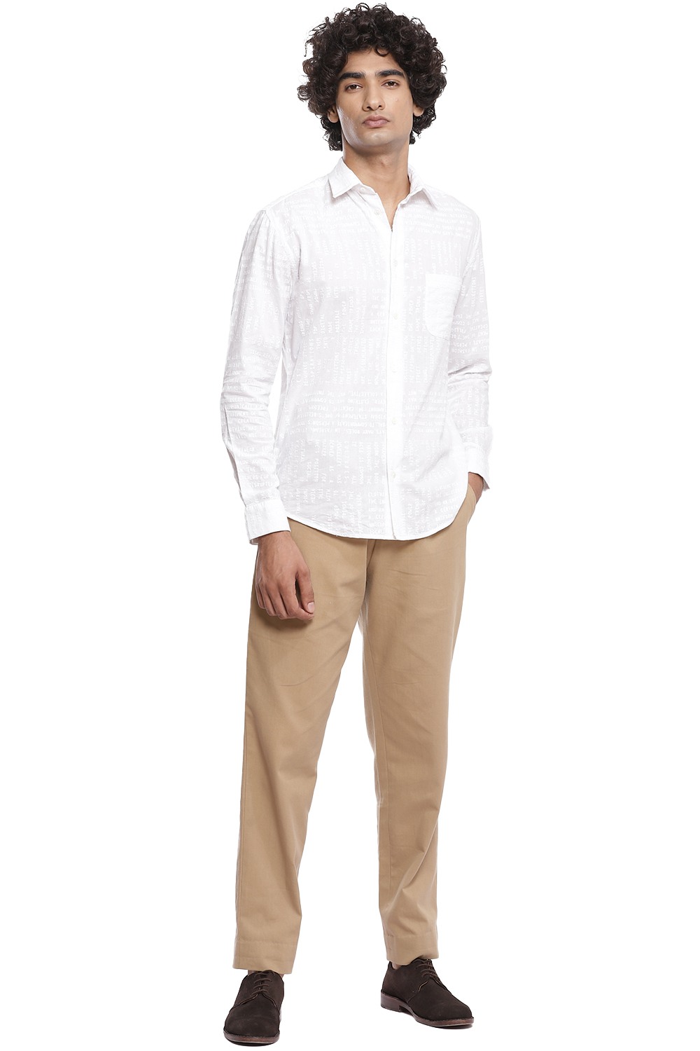 Typography embroidered shirt ivory on ivory, crafted on cotton cambric, cut for an easy and comfortable fit.