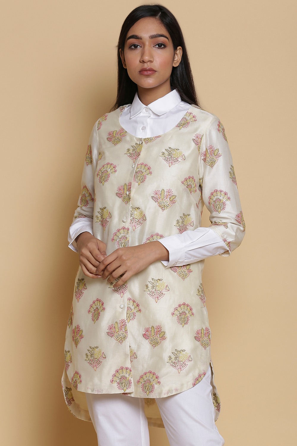 Buta Embroidered Cotton Silk Tara Shirt_x000D_