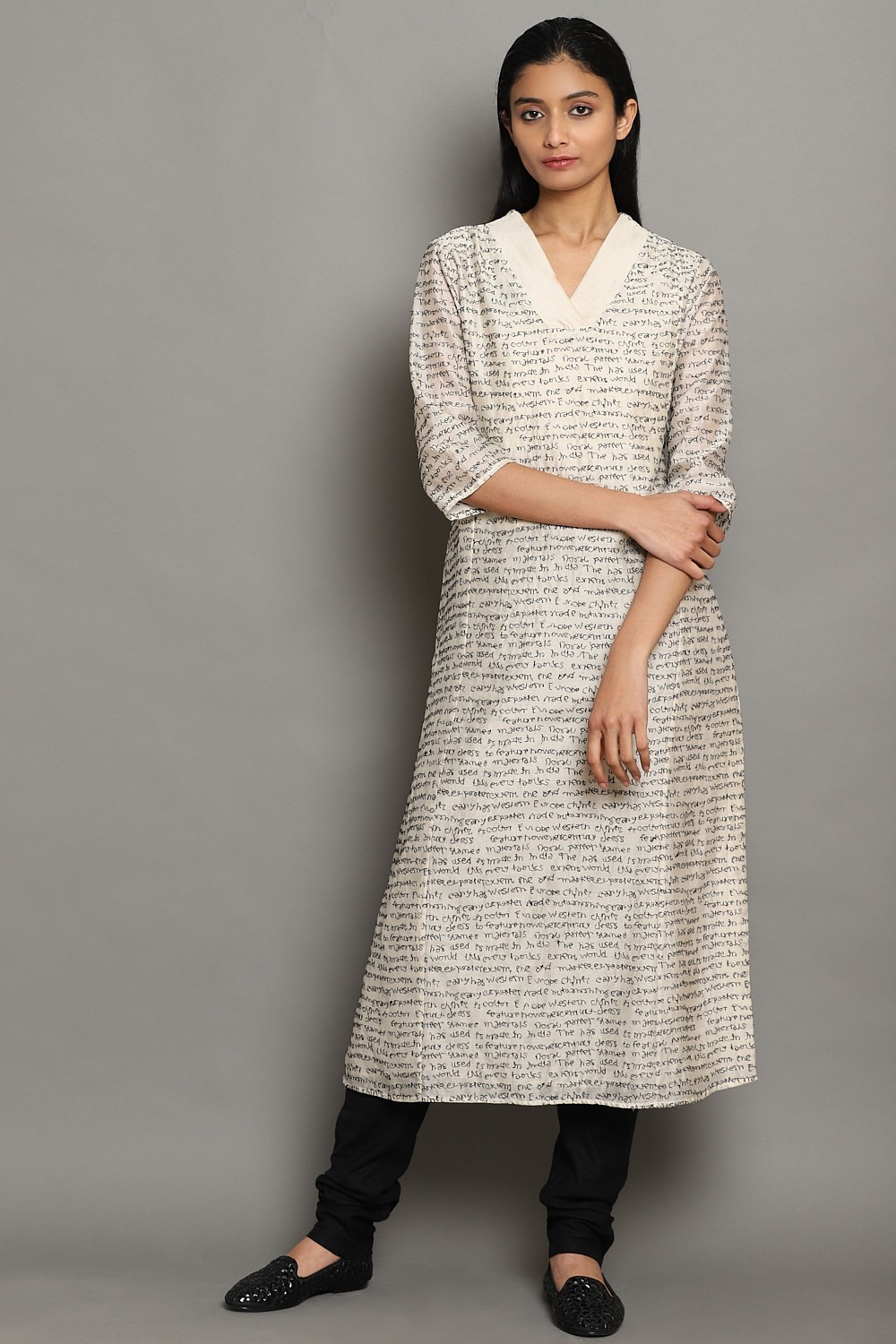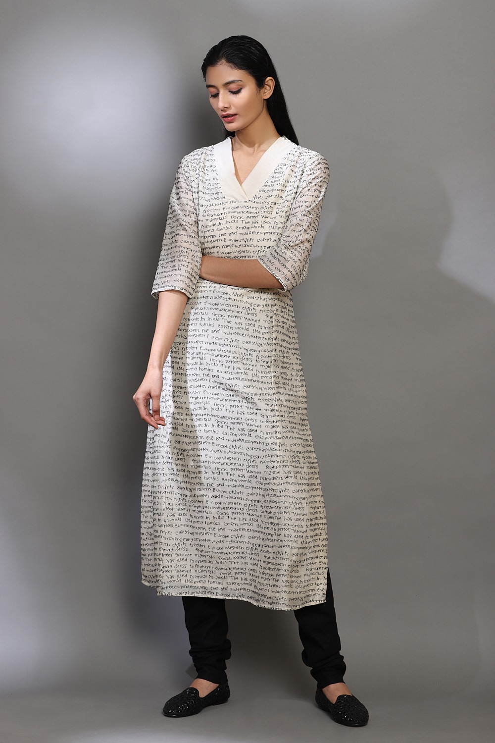 Home / Products / Kurtas / ABRAHAM AND THAKORE / Calligraphy Embroidered Kurta White & Black