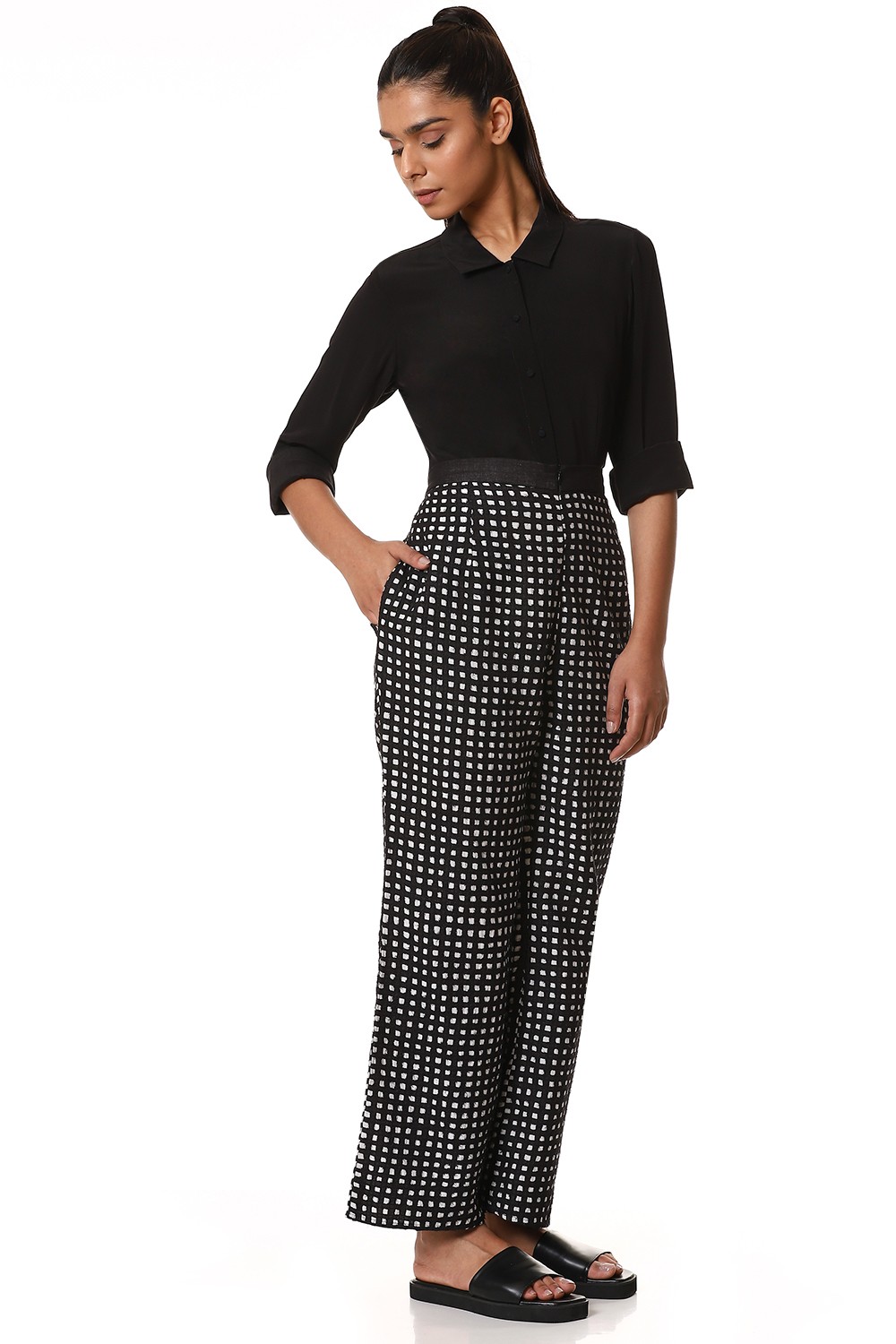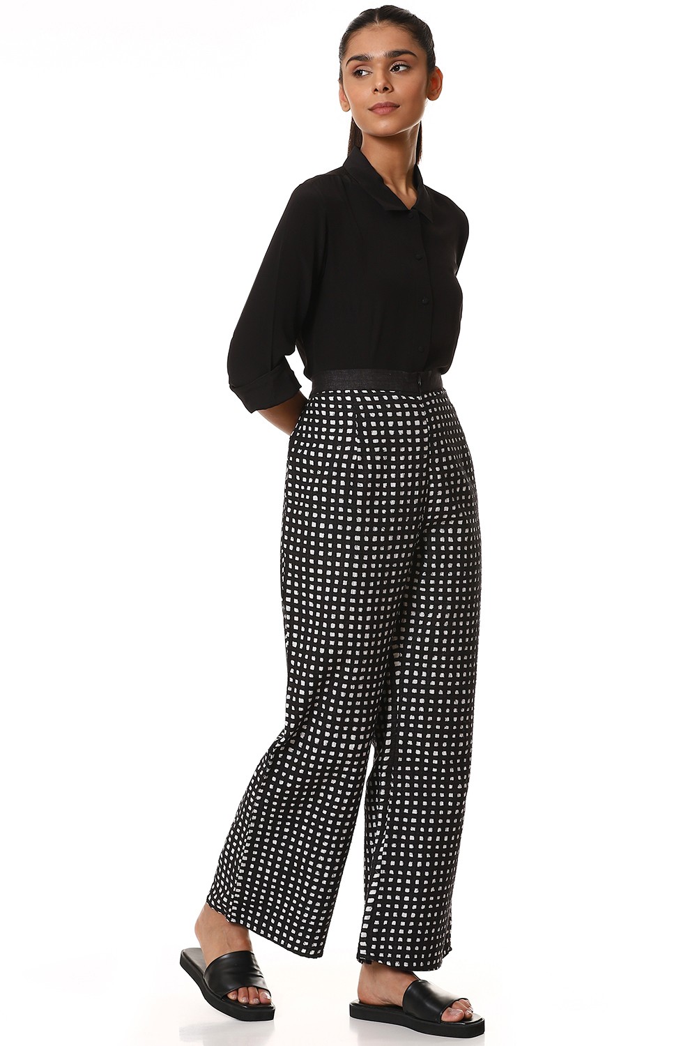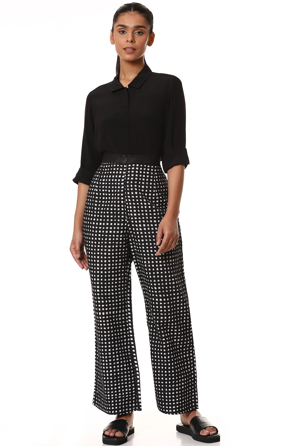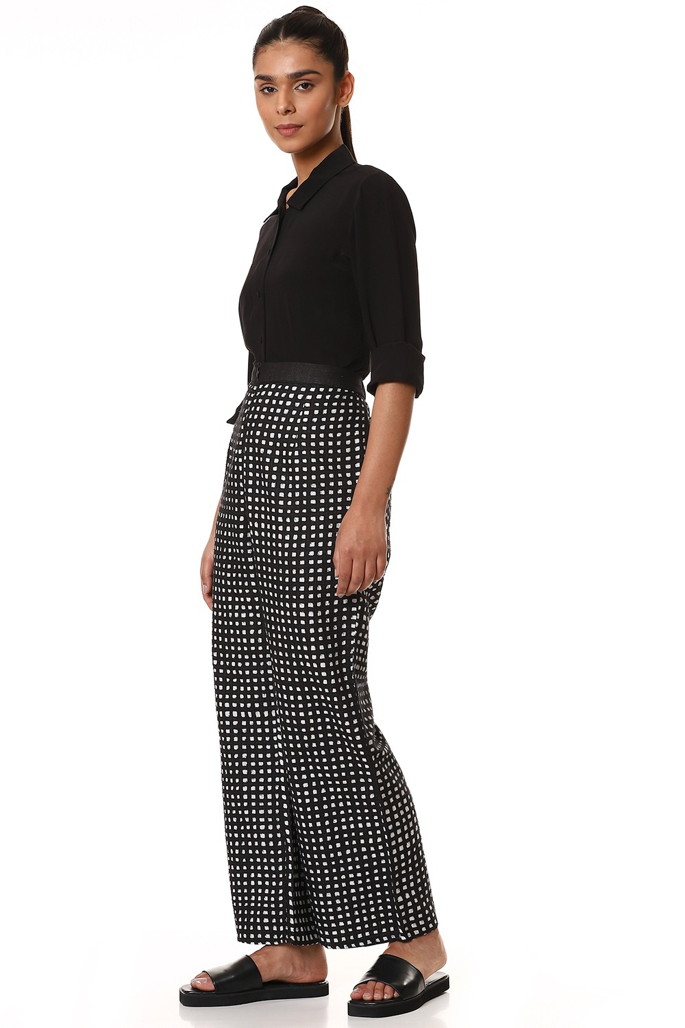 Regular Fit Straight Pants. Features Placement Negative Cutwork Checks, Adjustable Waistbands, Lightly Elasticated At The Back, With Additional Concealed Drawstrings In The Front For A Perfect Fit. More Styles In Check Cutwork Available See Also Check Cutwork Scarf.