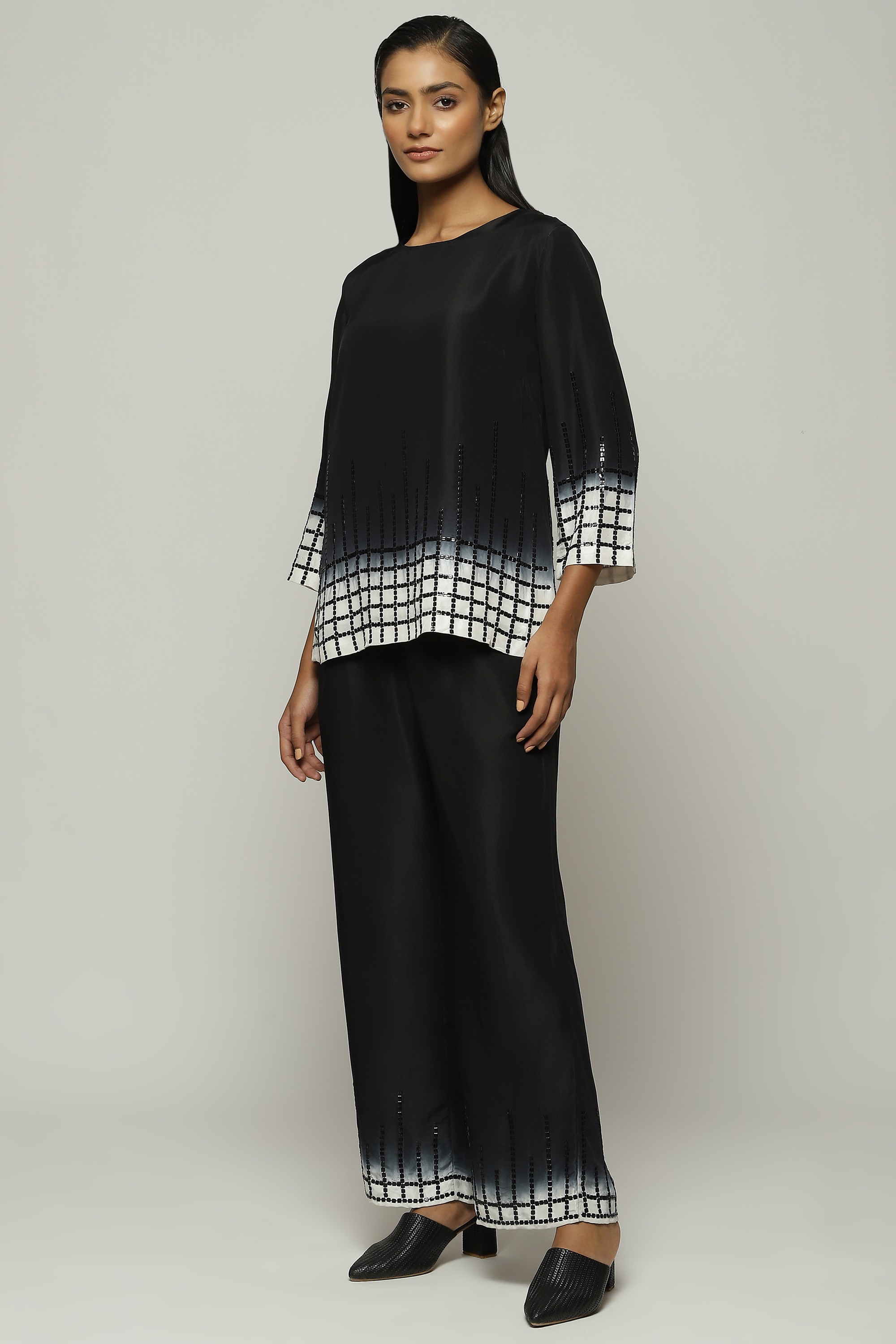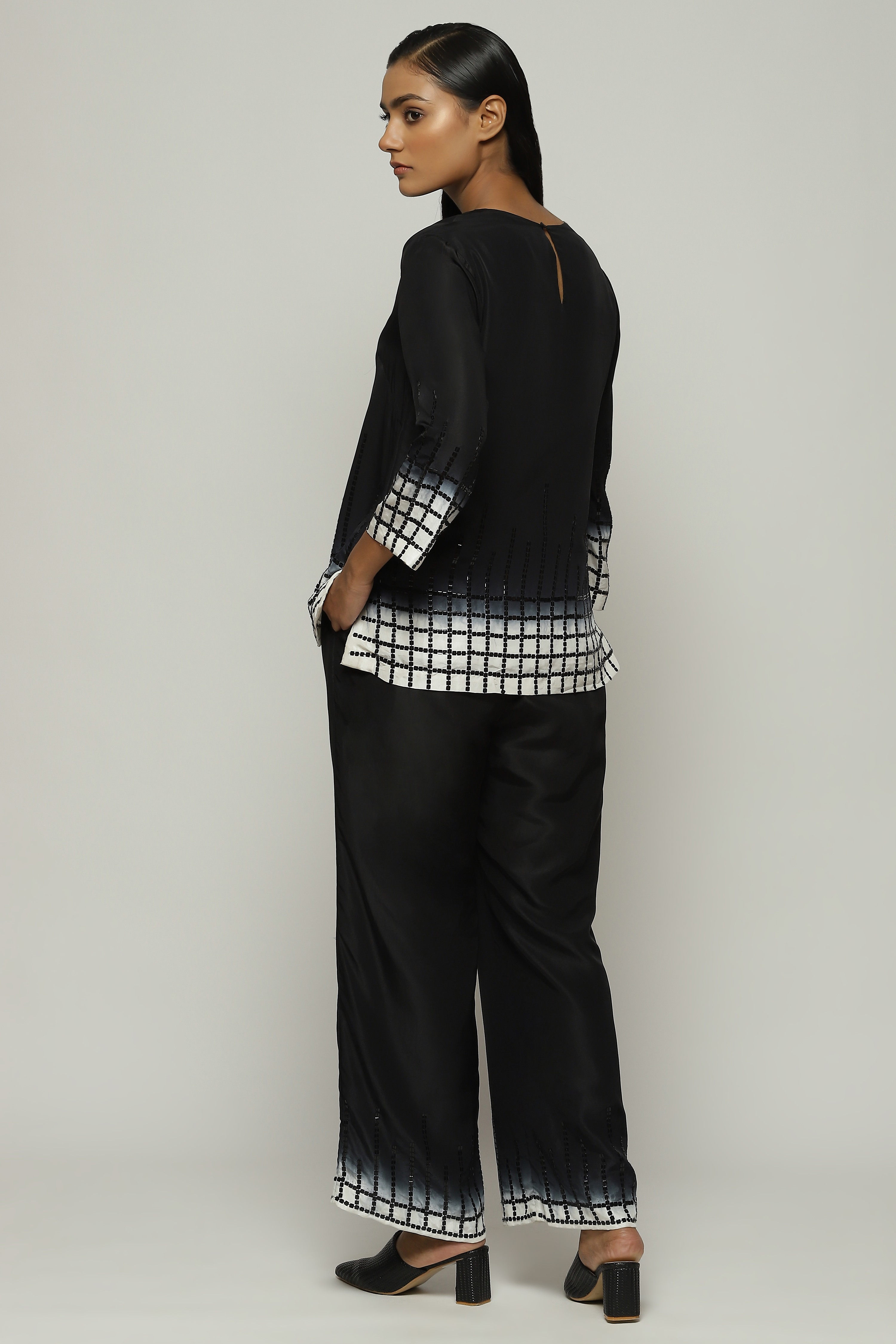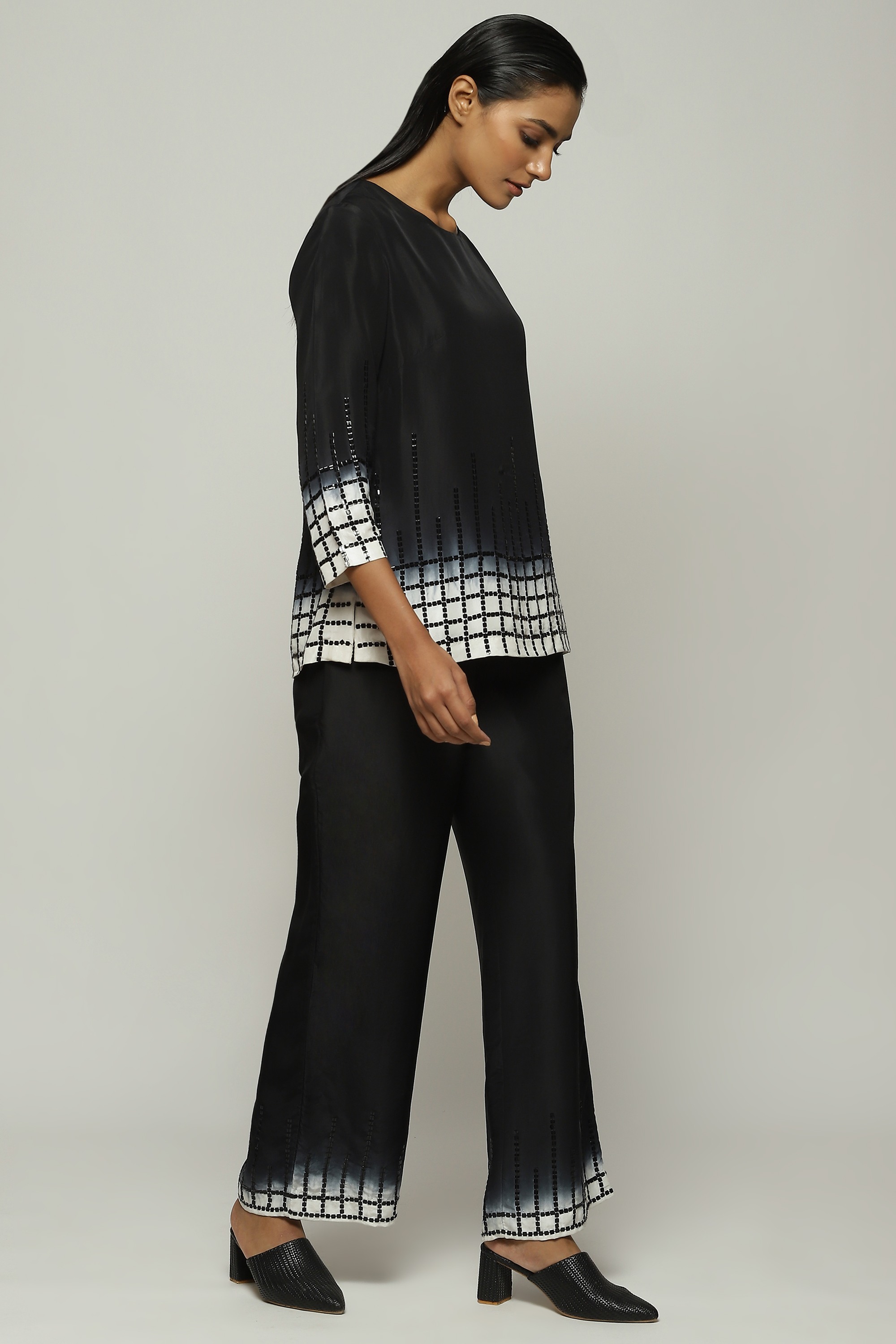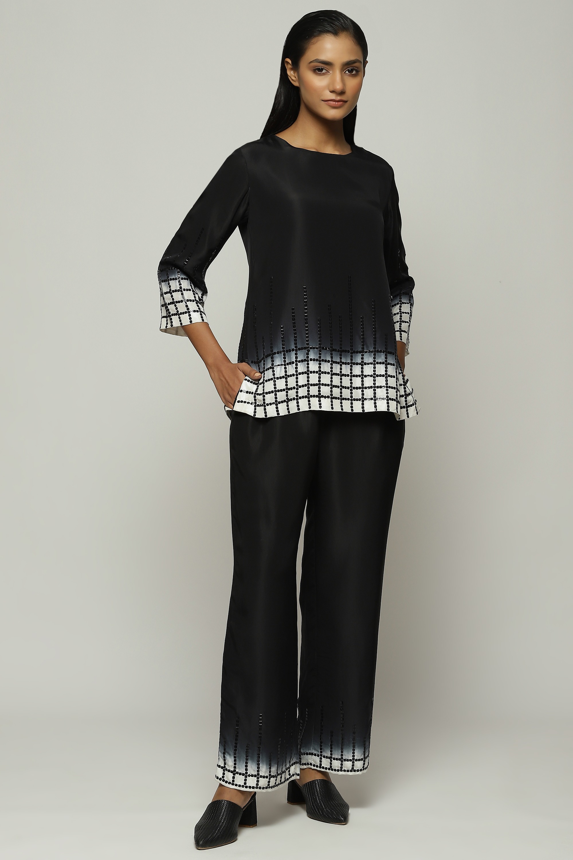 Crafted from luscious Habutai, this piece features the ancient technique of hand adda embroidery.