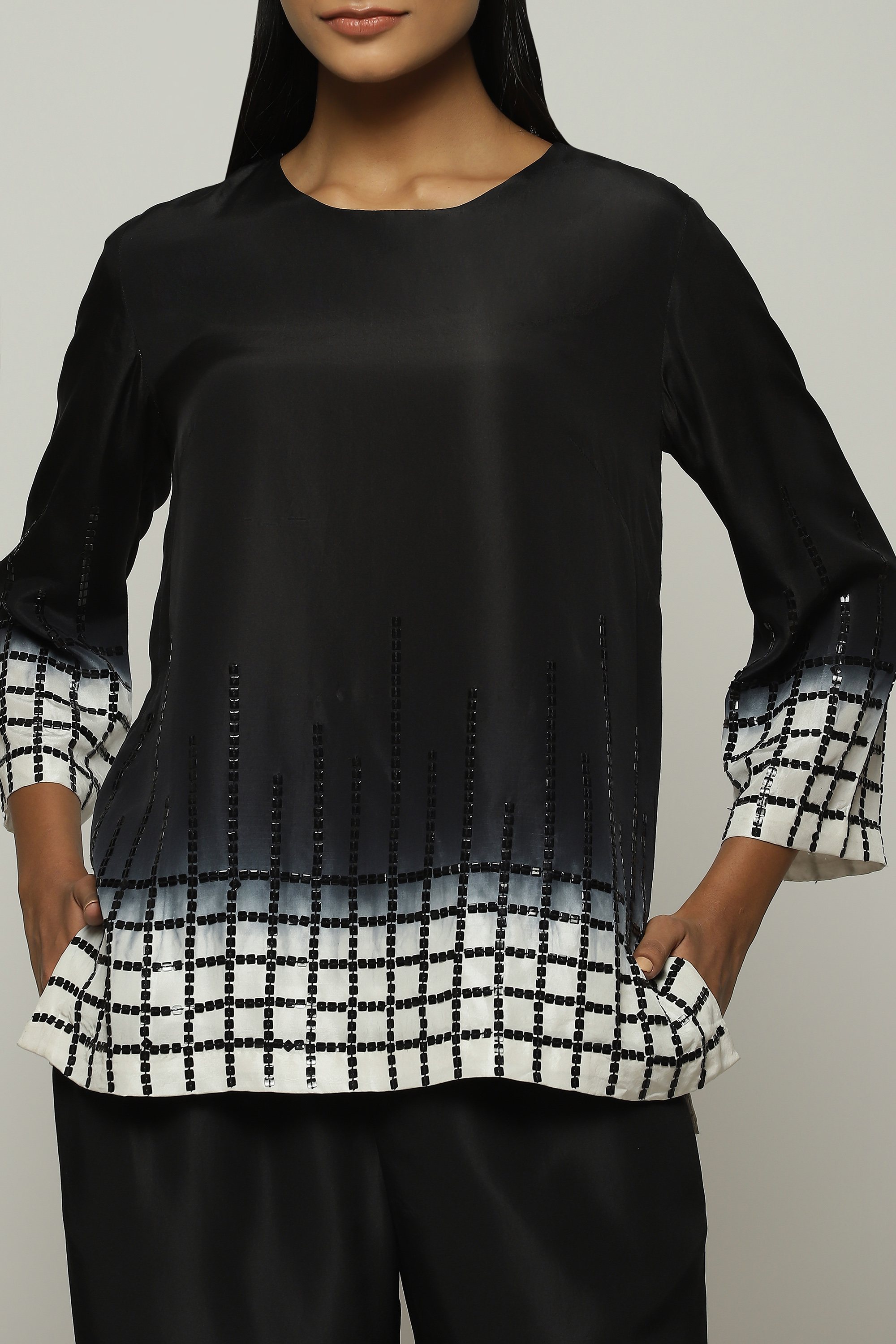 An ombre-dyed silk tunic, embroidered with square sequins.