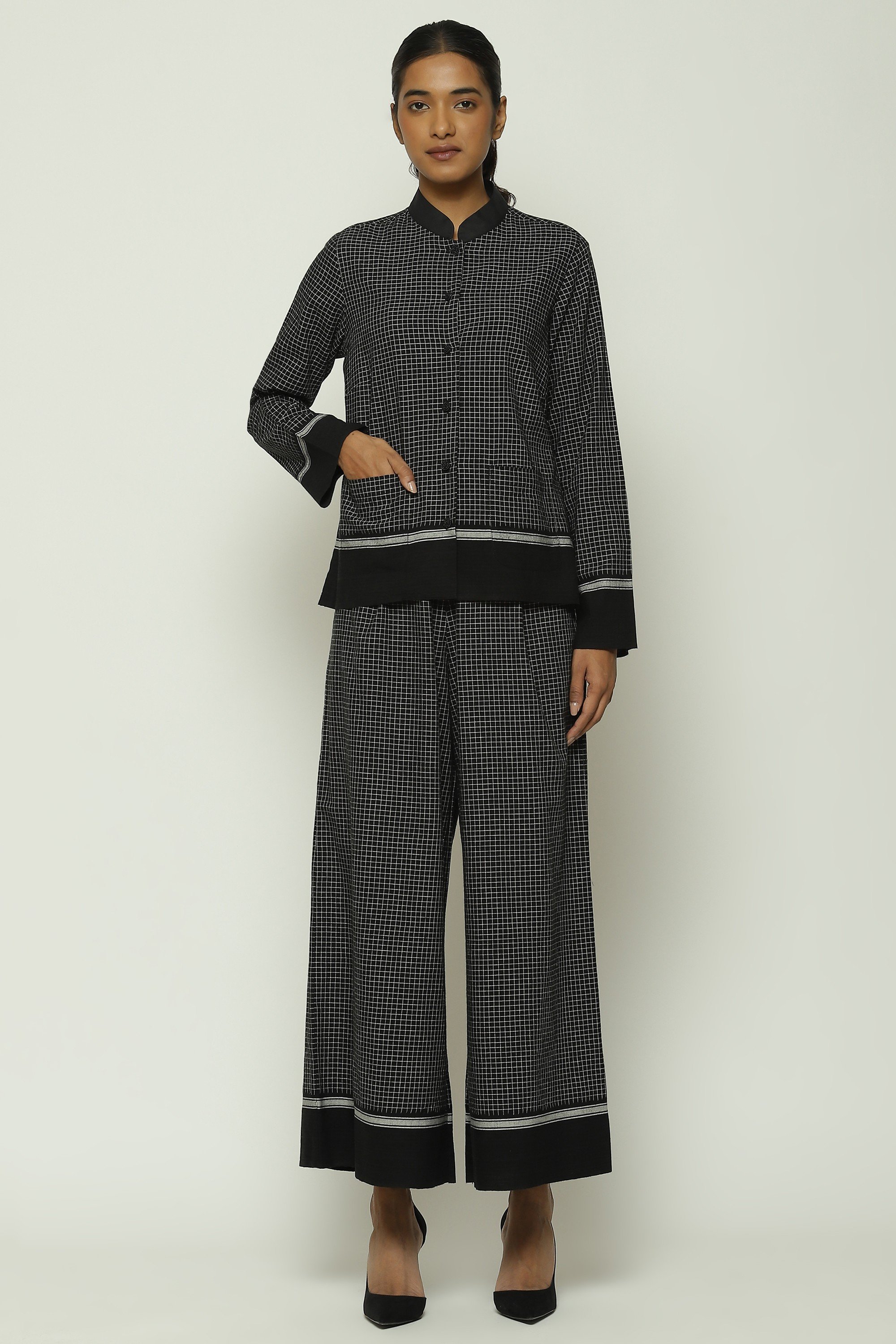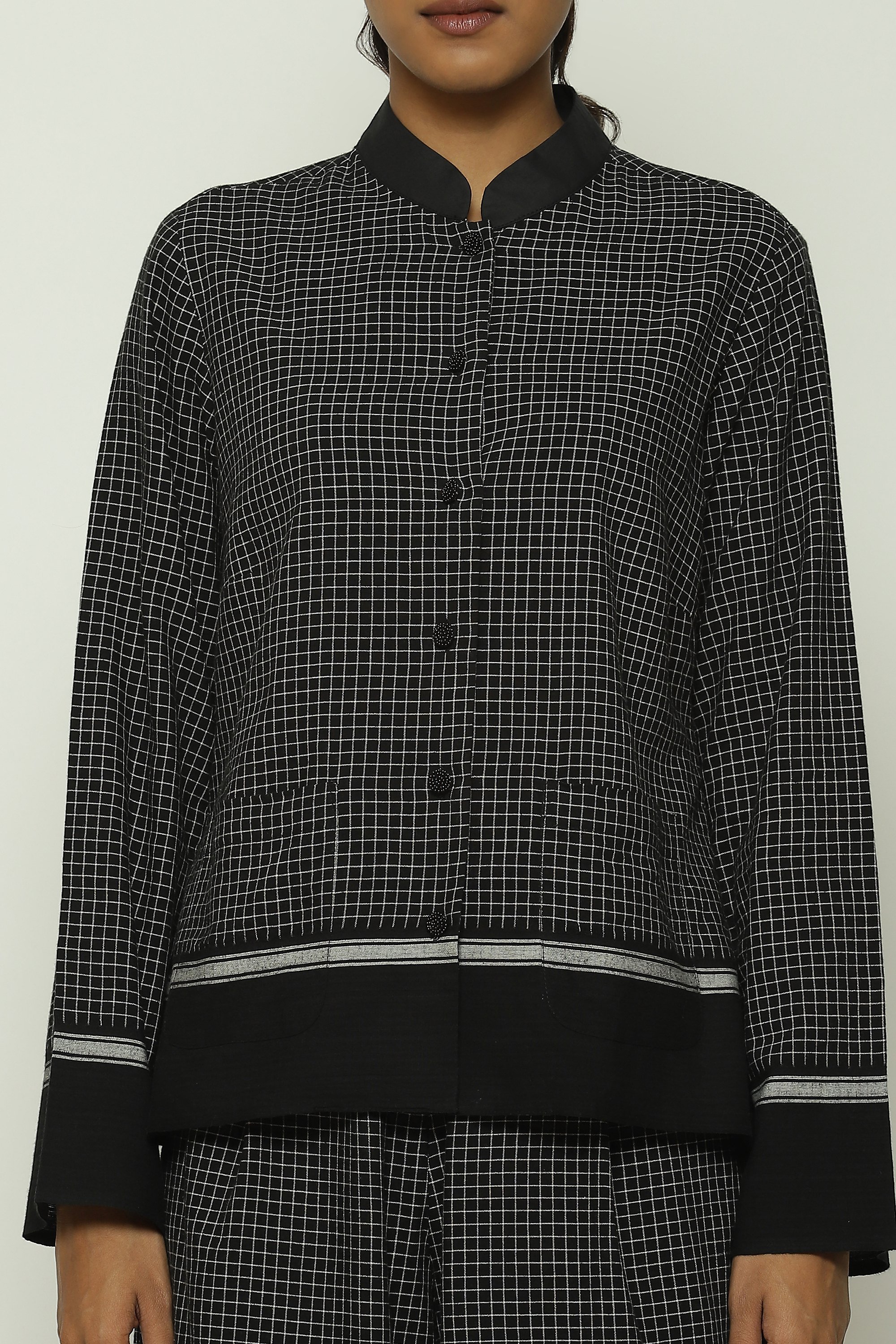 Part of Body Language — a collection that seeks to capture the intricacies of human connection in fabric — this creation is handwoven from cotton. Its lightly checkered pattern draws inspiration from the artisans of Chettinad.