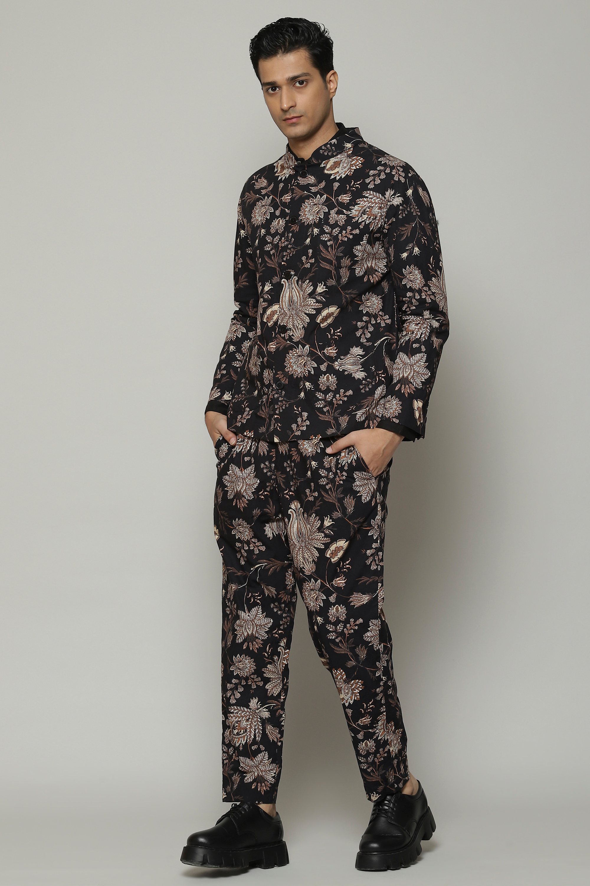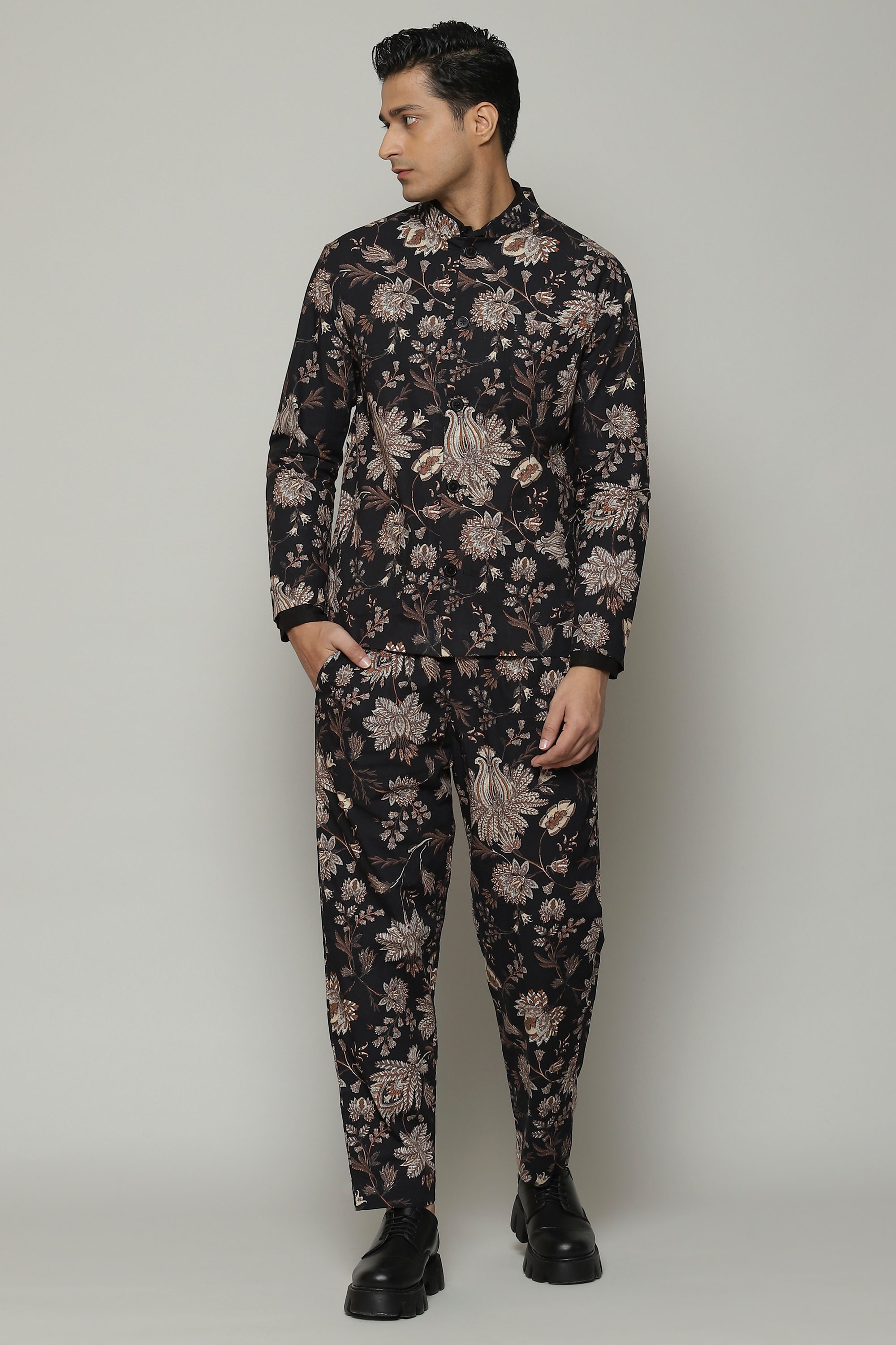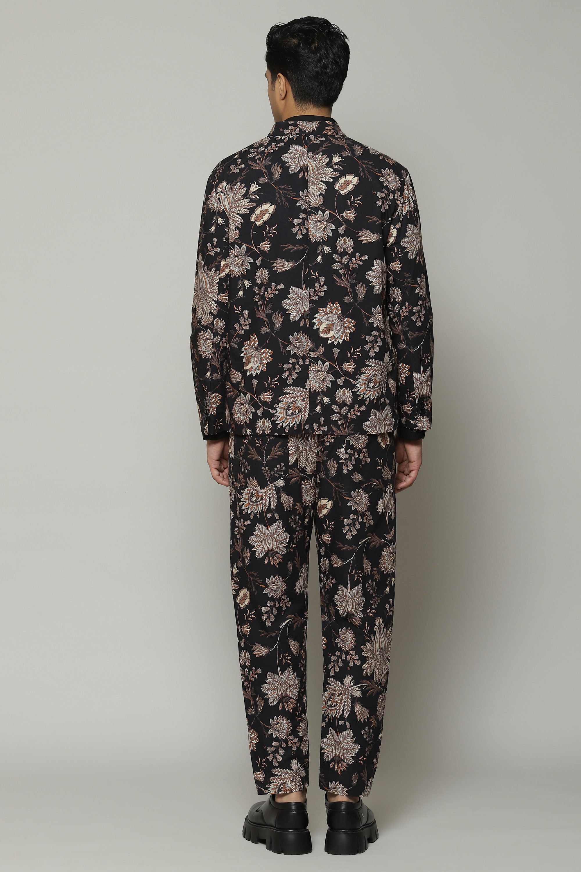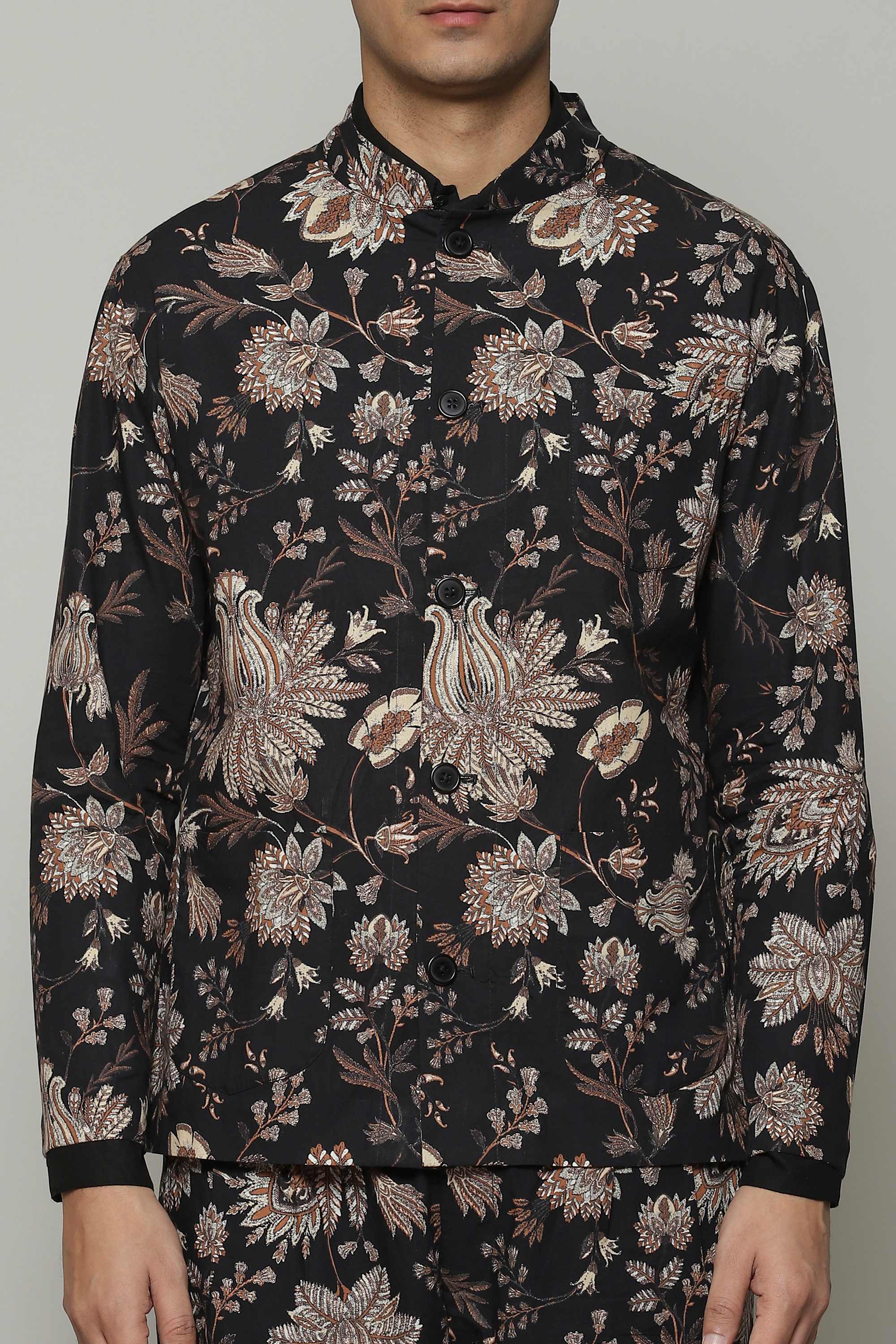 A floral jacket in the hues of a midsummer's night. Printed Chintz motifs adorn lightweight poplin. Keeps you comfortable from dusk to dawn. Ideal for garden lovers.